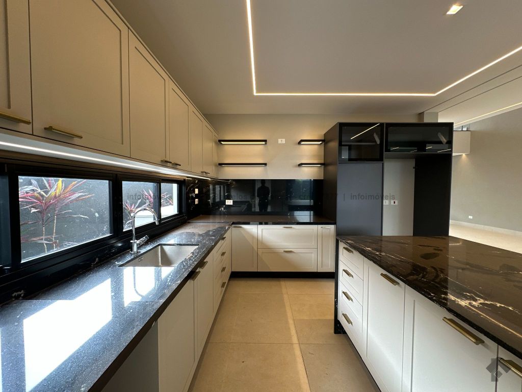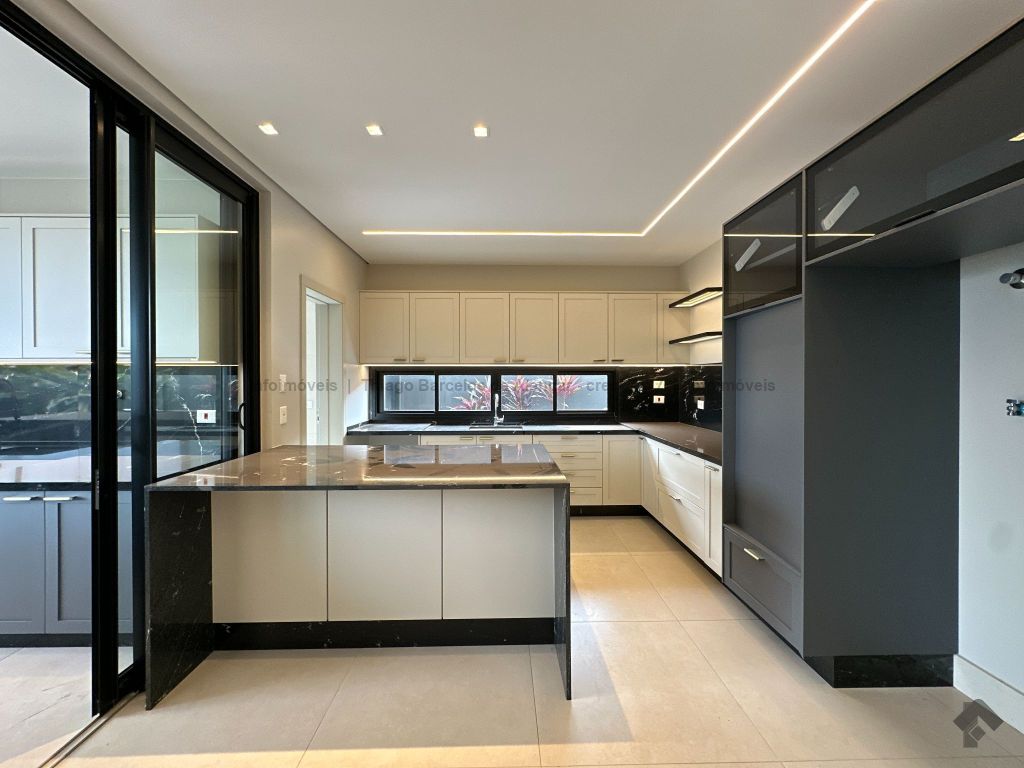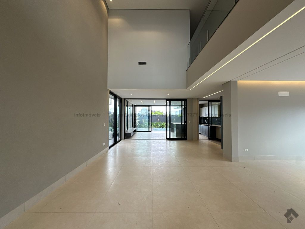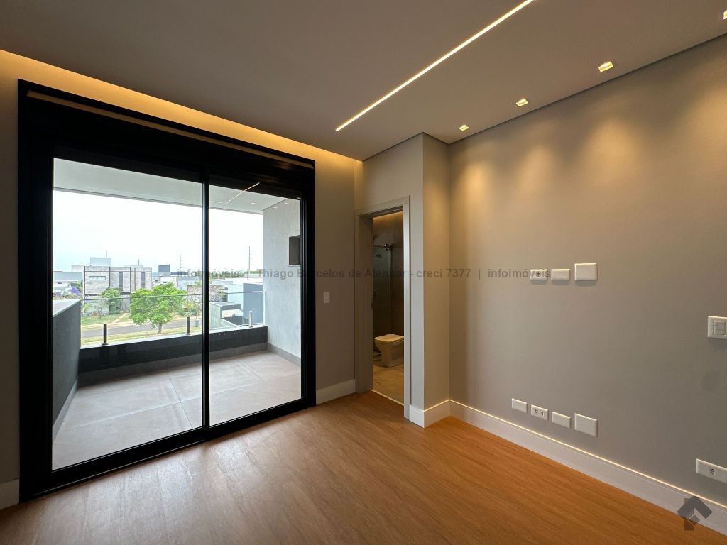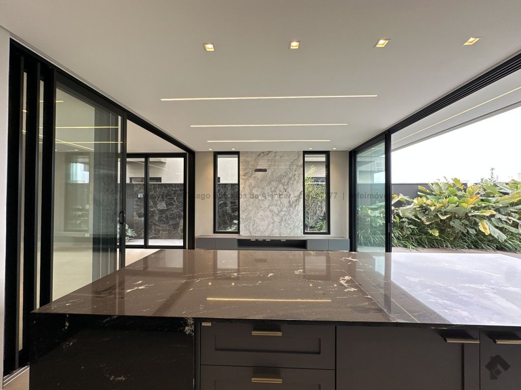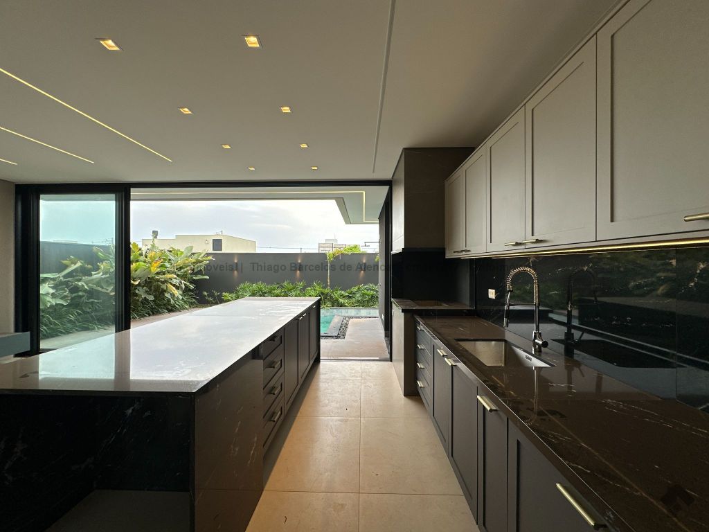 Sobrado de alto padrão com living amplo e integrado, lavabo, home cinema e cozinha planejada. A área gourmet, separada por esquadrias de alumínio, oferece praticidade e elegância, integrada à piscina com hidromassagem e prainha. Conta com banheiro de apoio, lavanderia, despensa e armário vertical de gás. No piso superior, duas suítes com sacada e uma suíte master com hidromassagem, cubas e chuveiros duplos, além de sacada privativa. Possui garagem coberta para dois carros e infraestrutura completa com aquecimento solar e ambientes climatizados.
