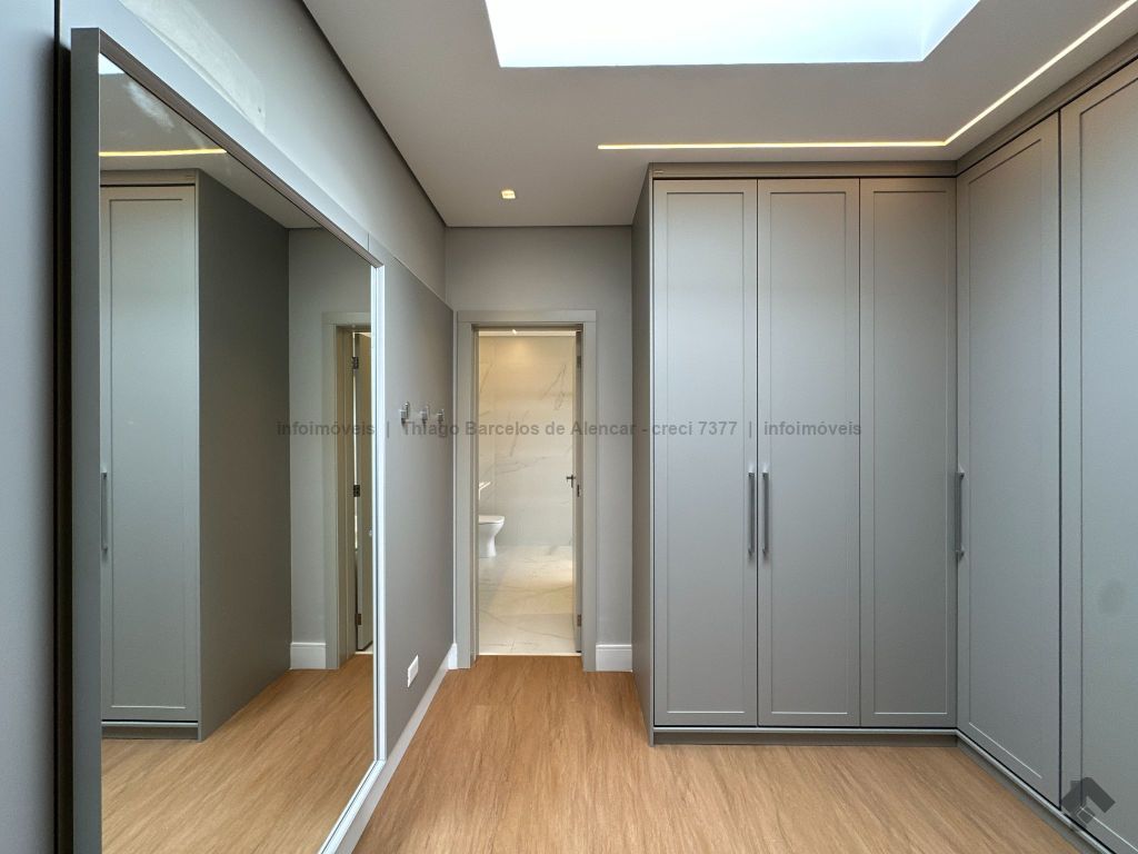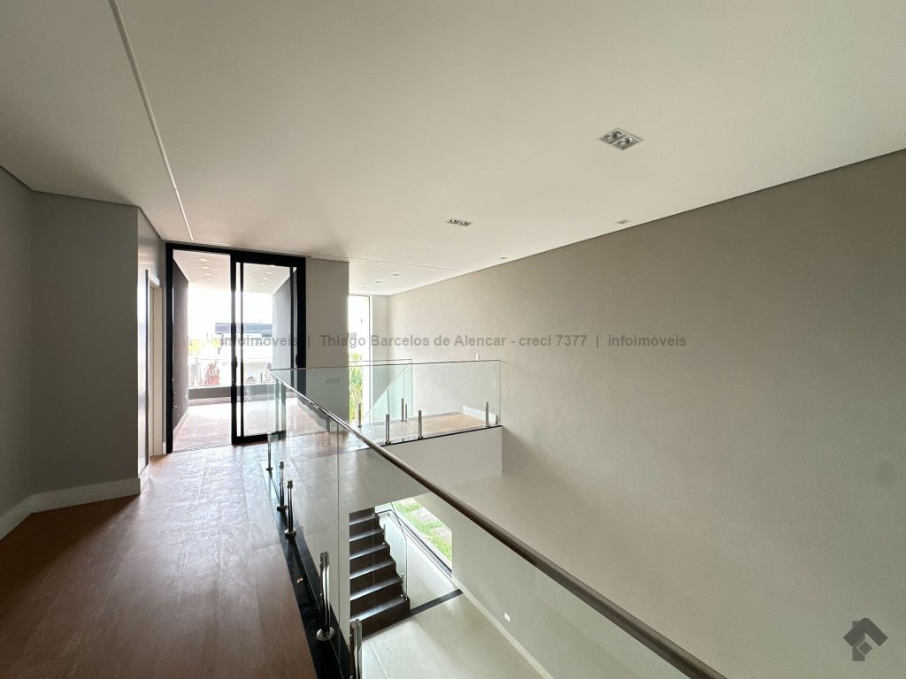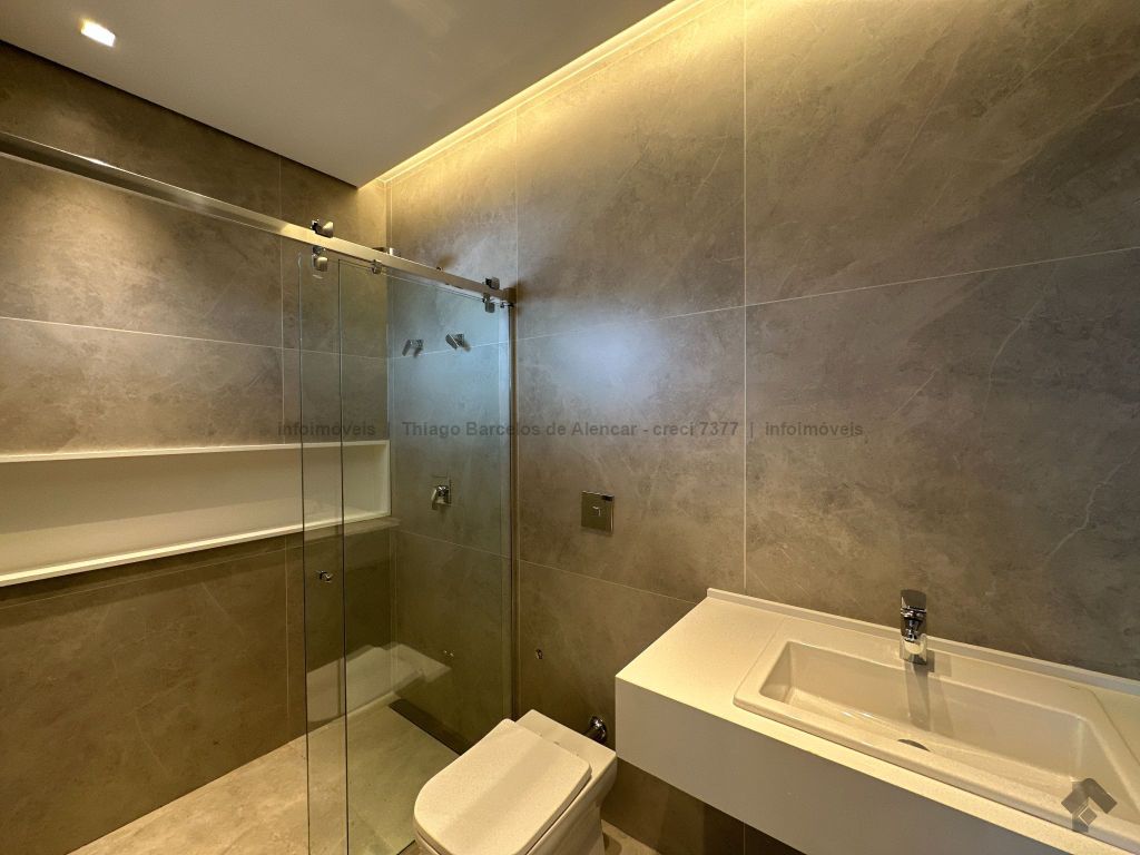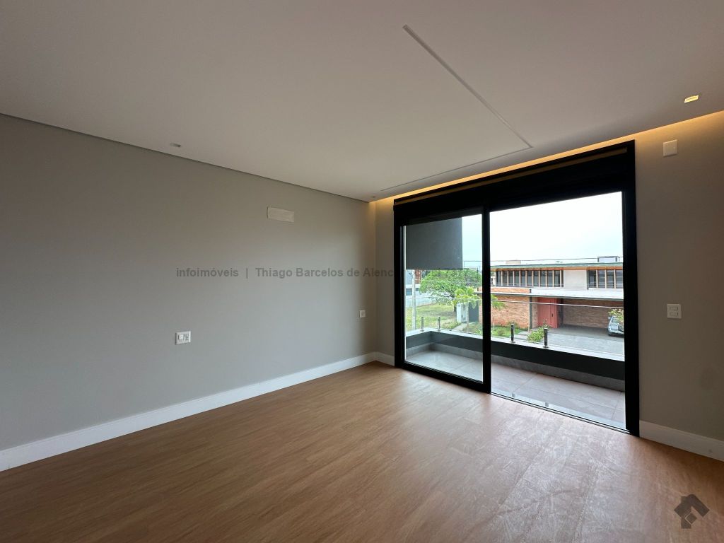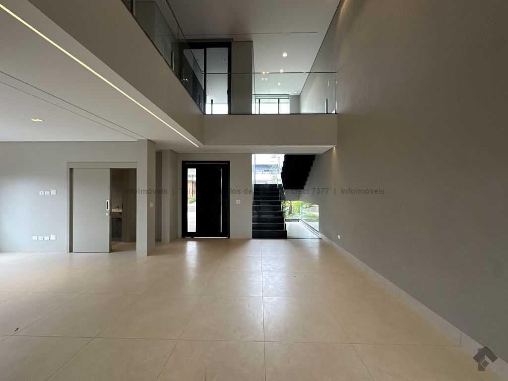 Sobrado de alto padrão com living amplo e integrado, lavabo, home cinema e cozinha planejada. A área gourmet, separada por esquadrias de alumínio, oferece praticidade e elegância, integrada à piscina com hidromassagem e prainha. Conta com banheiro de apoio, lavanderia, despensa e armário vertical de gás. No piso superior, duas suítes com sacada e uma suíte master com hidromassagem, cubas e chuveiros duplos, além de sacada privativa. Possui garagem coberta para dois carros e infraestrutura completa com aquecimento solar e ambientes climatizados.
