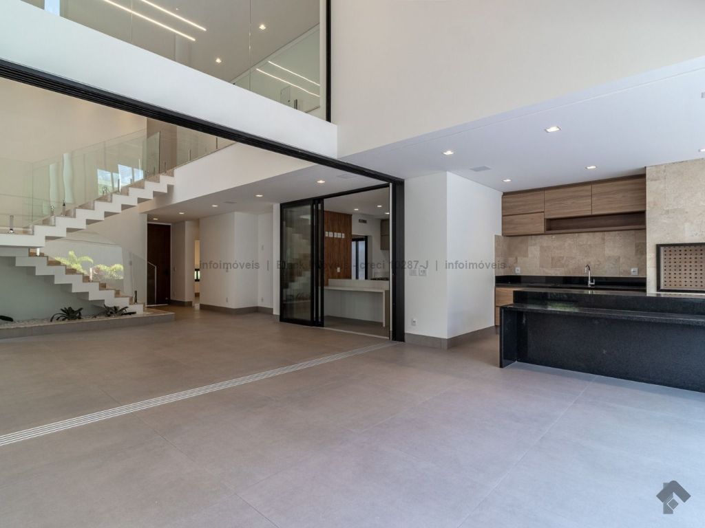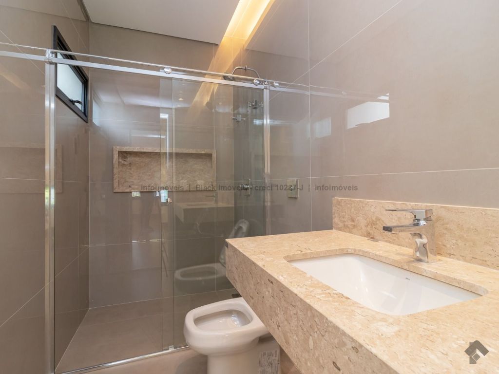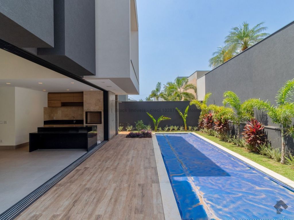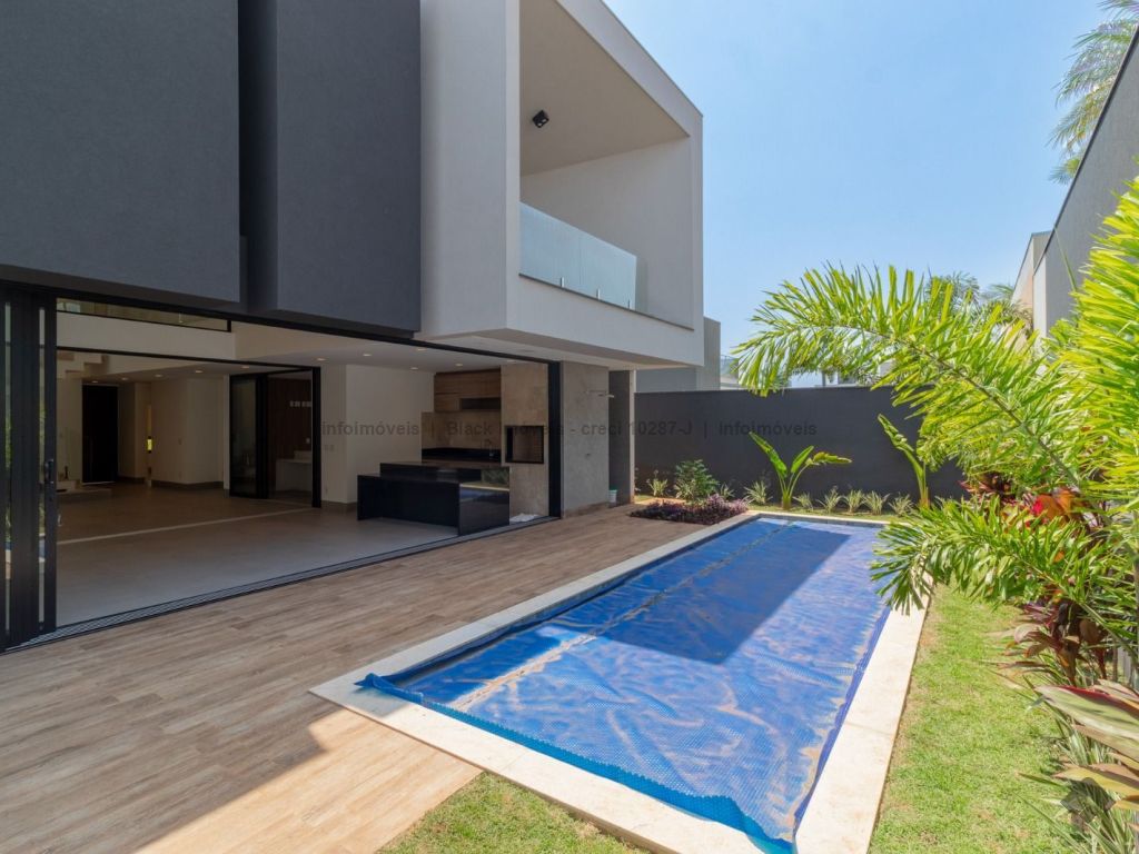 Sobrado novo, de altíssimo padrão, completo de armários, living amplo, com pé de direito alto e integrado com área gourmet, cozinha separada, 04 suítes sendo uma no piso inferior e uma máster com closet e hidro, área gourmet com churrasqueira e banheiro, piscina com hidro e prainha.