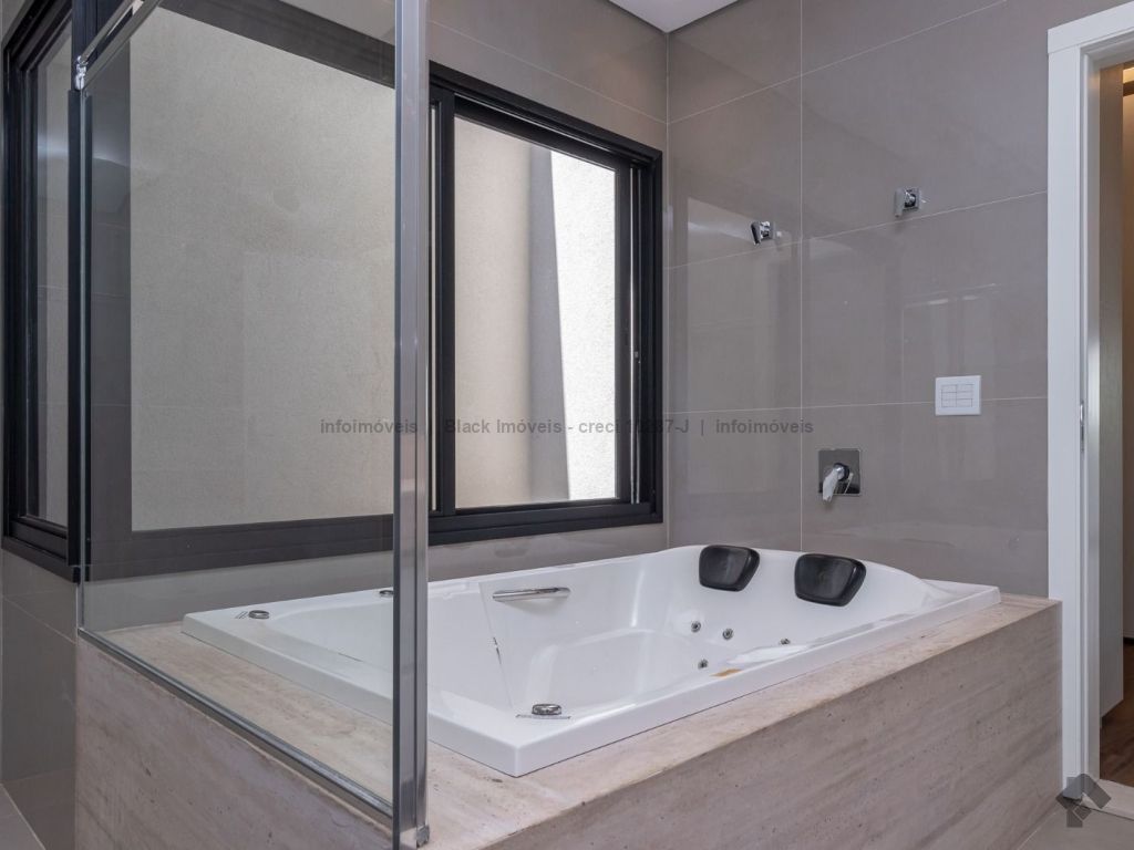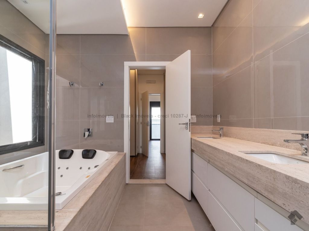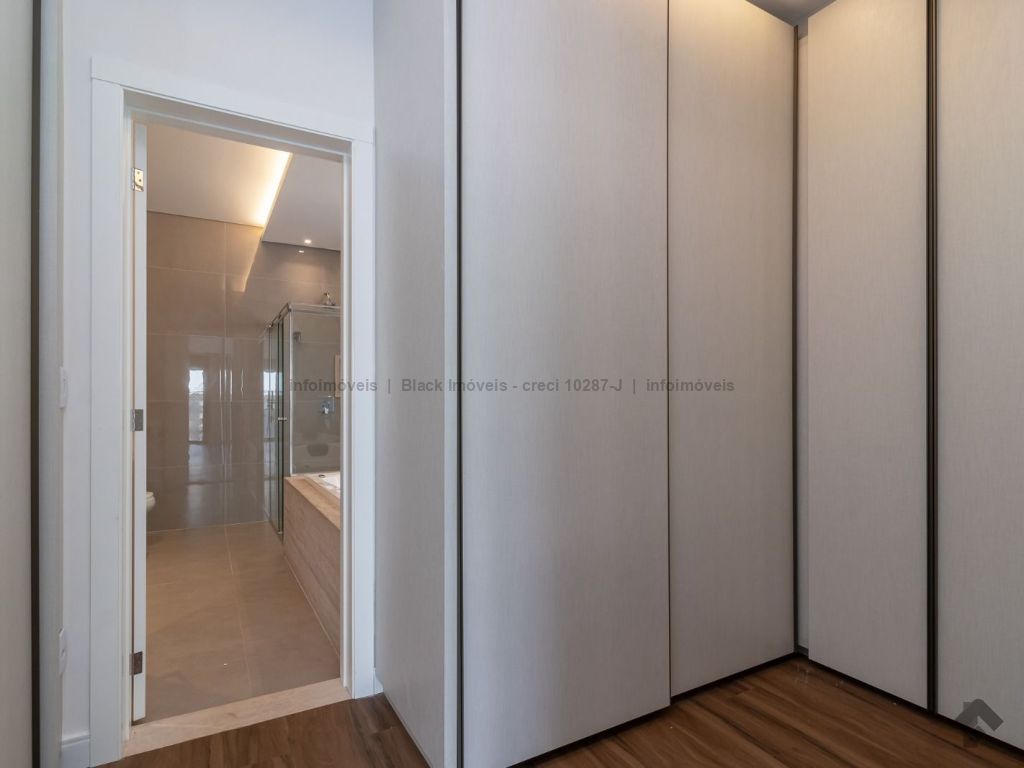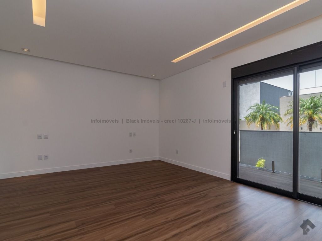 Sobrado novo, de altíssimo padrão, completo de armários, living amplo, com pé de direito alto e integrado com área gourmet, cozinha separada, 04 suítes sendo uma no piso inferior e uma máster com closet e hidro, área gourmet com churrasqueira e banheiro, piscina com hidro e prainha.