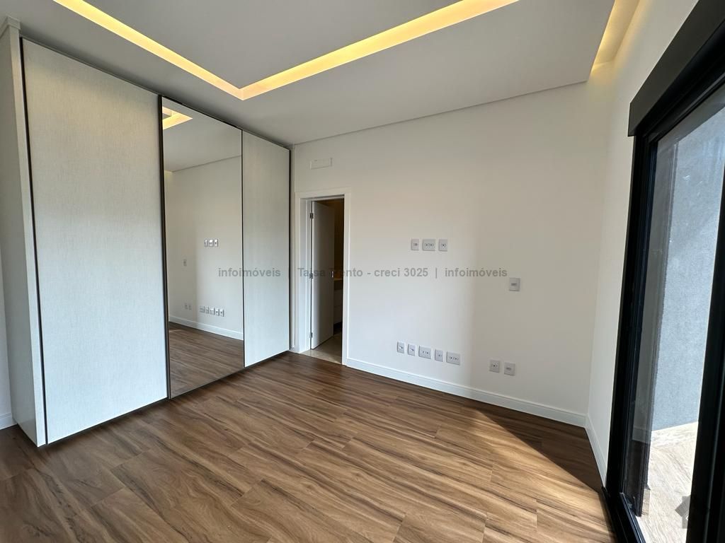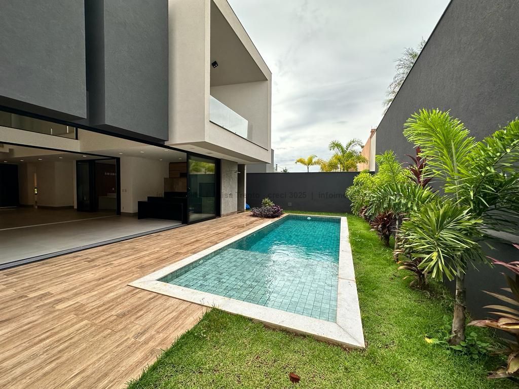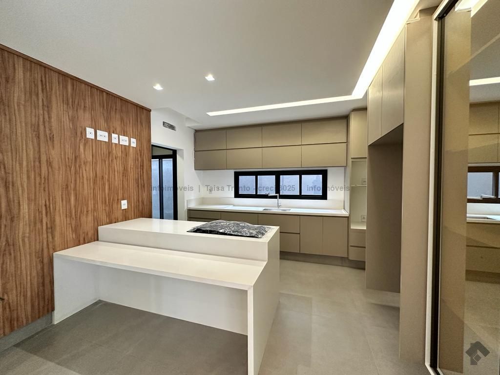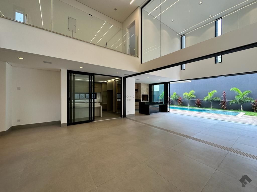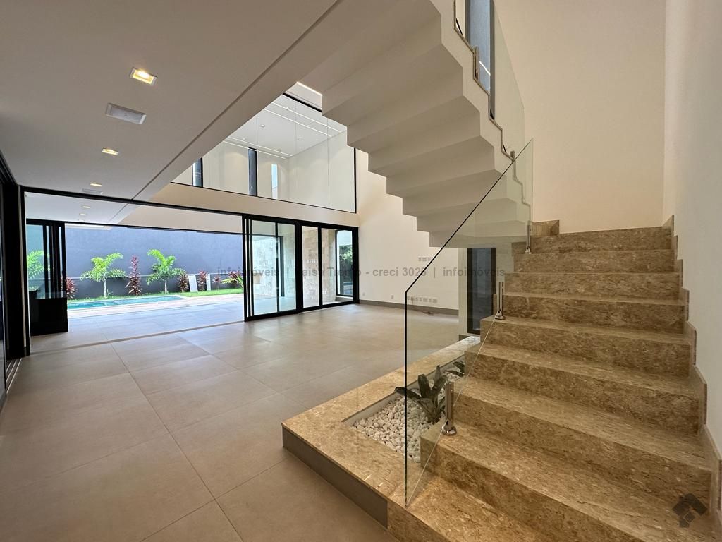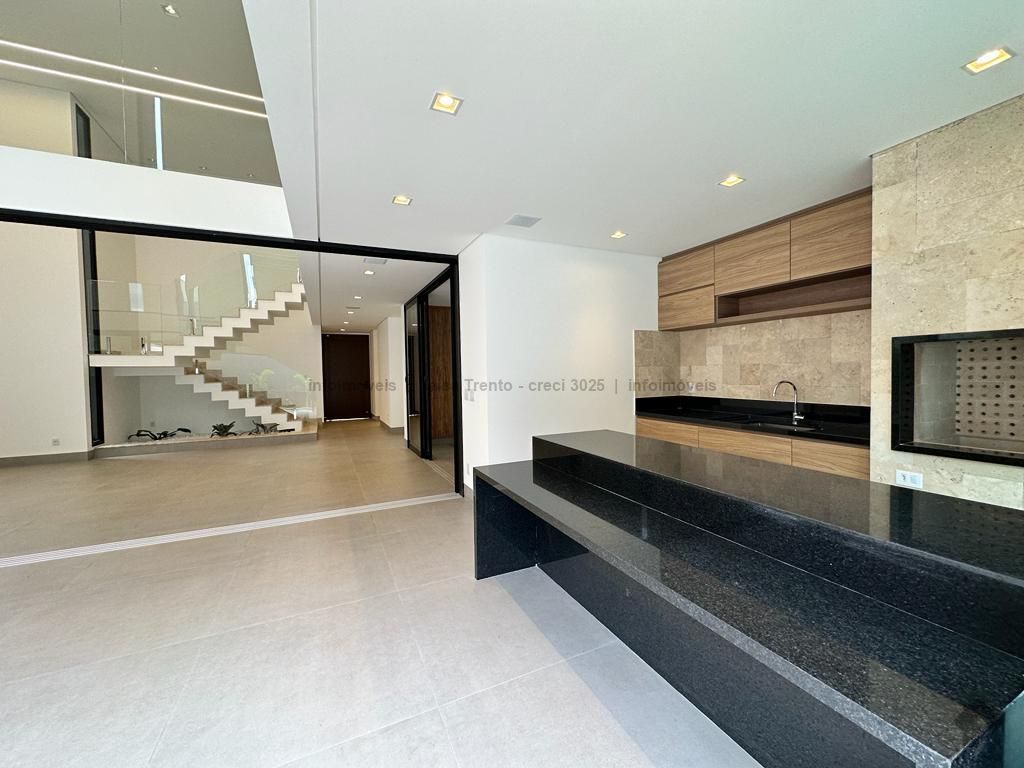 Sobrado rico em armários. Conta com 04 suítes, sendo duas com sacada e uma delas máster com closet e banheira. A cozinha integrada com a sala de estar e gourmet foram projetadas para que a família pudesse explorar ao máximo a vista da piscina. A propriedade dispõe de uma suíte no piso térreo que pode ser um home theater ou um escritório. Possui aquecimento solar nos wcs, cozinha e gourmet e um lindo paisagismo. O sobrado também dispõe de pré instalações de câmeras, energia fotovoltaica.