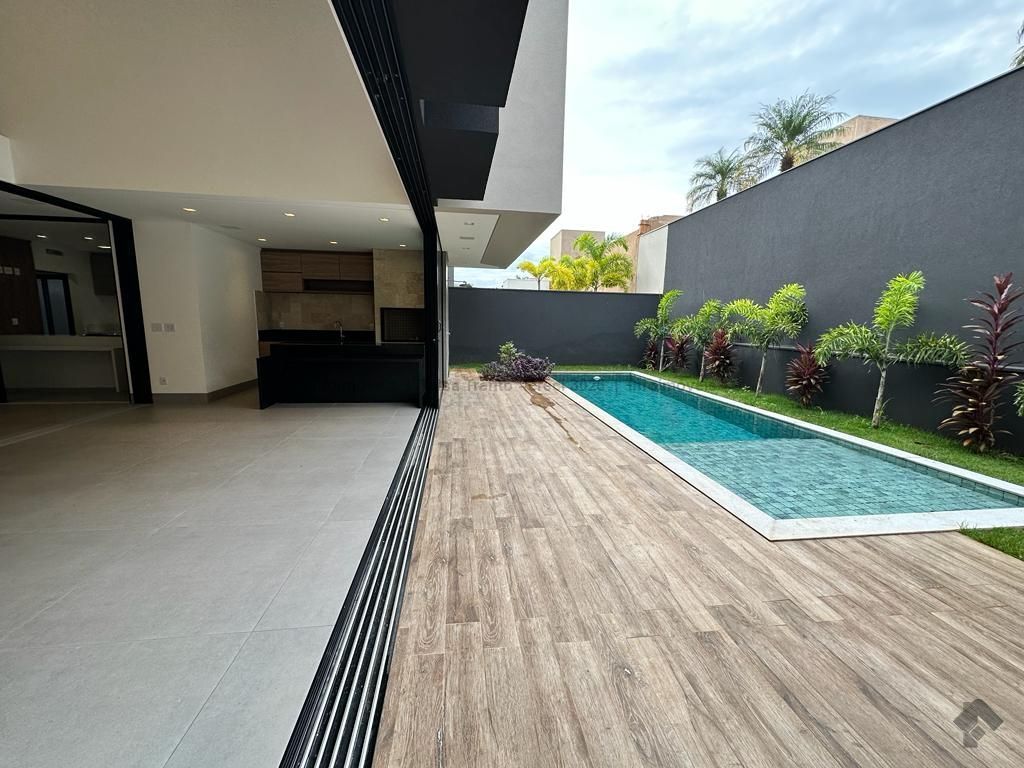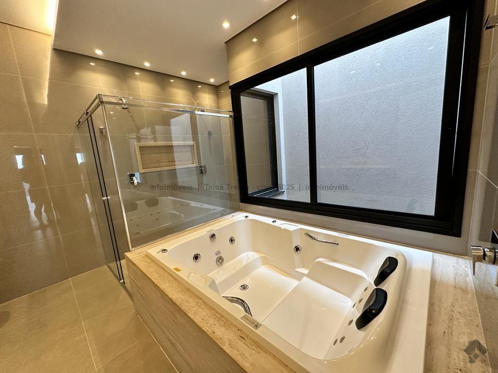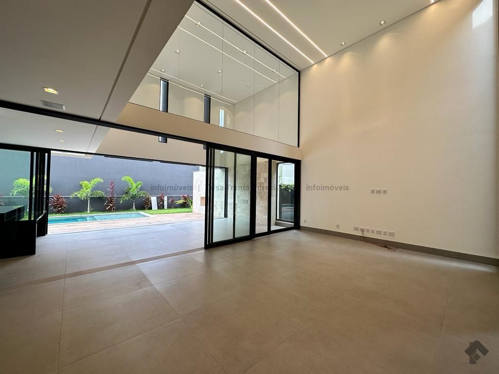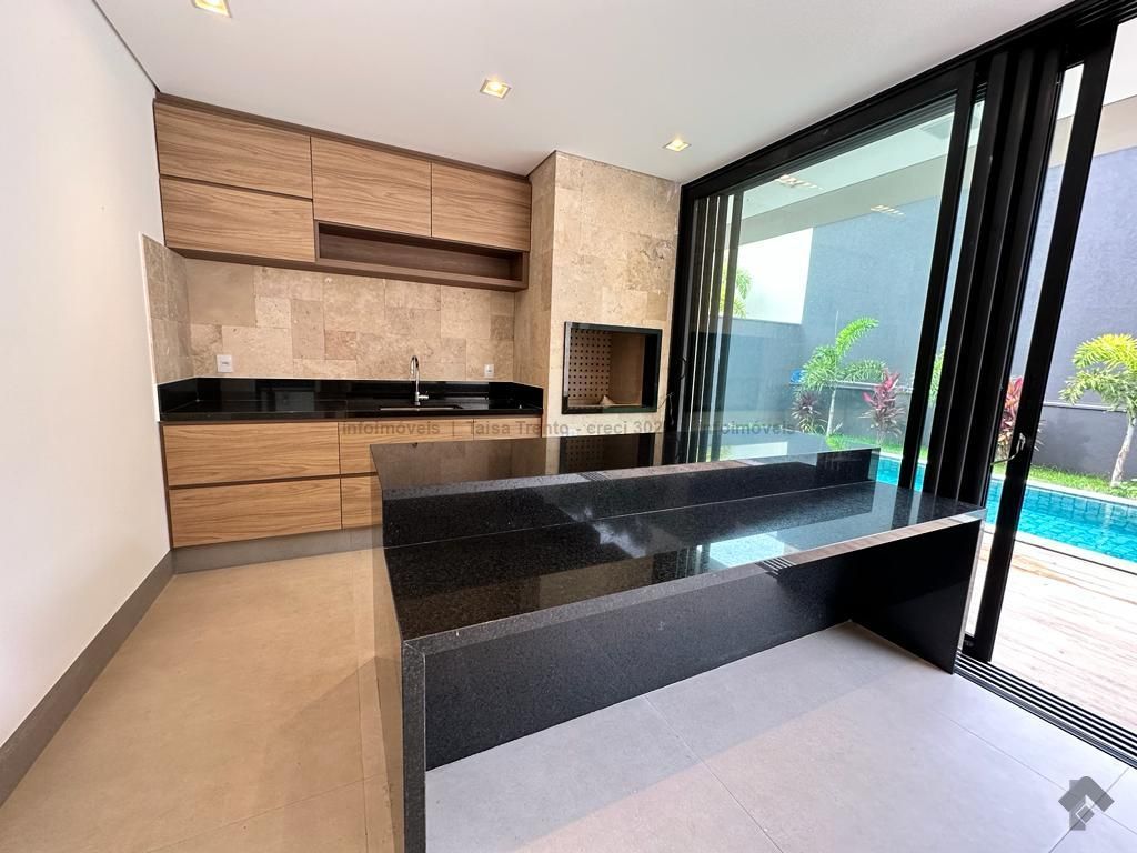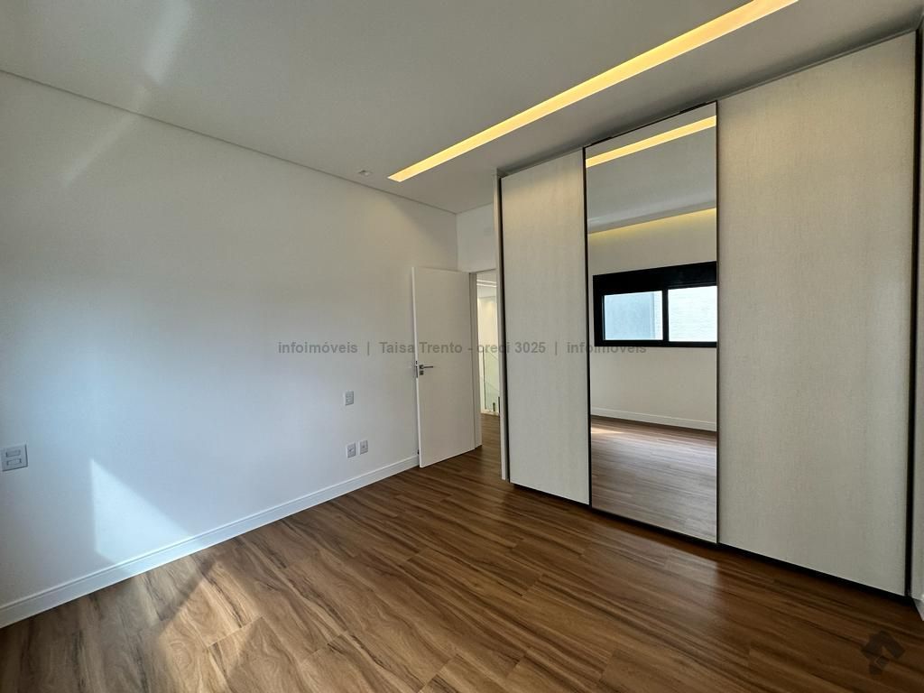 Sobrado rico em armários. Conta com 04 suítes, sendo duas com sacada e uma delas máster com closet e banheira. A cozinha integrada com a sala de estar e gourmet foram projetadas para que a família pudesse explorar ao máximo a vista da piscina. A propriedade dispõe de uma suíte no piso térreo que pode ser um home theater ou um escritório. Possui aquecimento solar nos wcs, cozinha e gourmet e um lindo paisagismo. O sobrado também dispõe de pré instalações de câmeras, energia fotovoltaica.