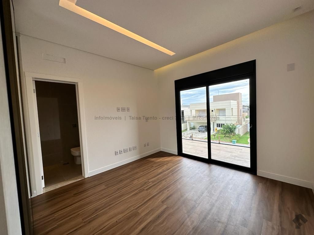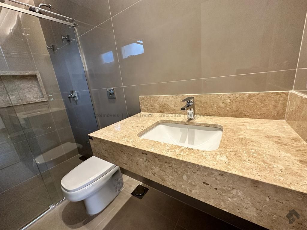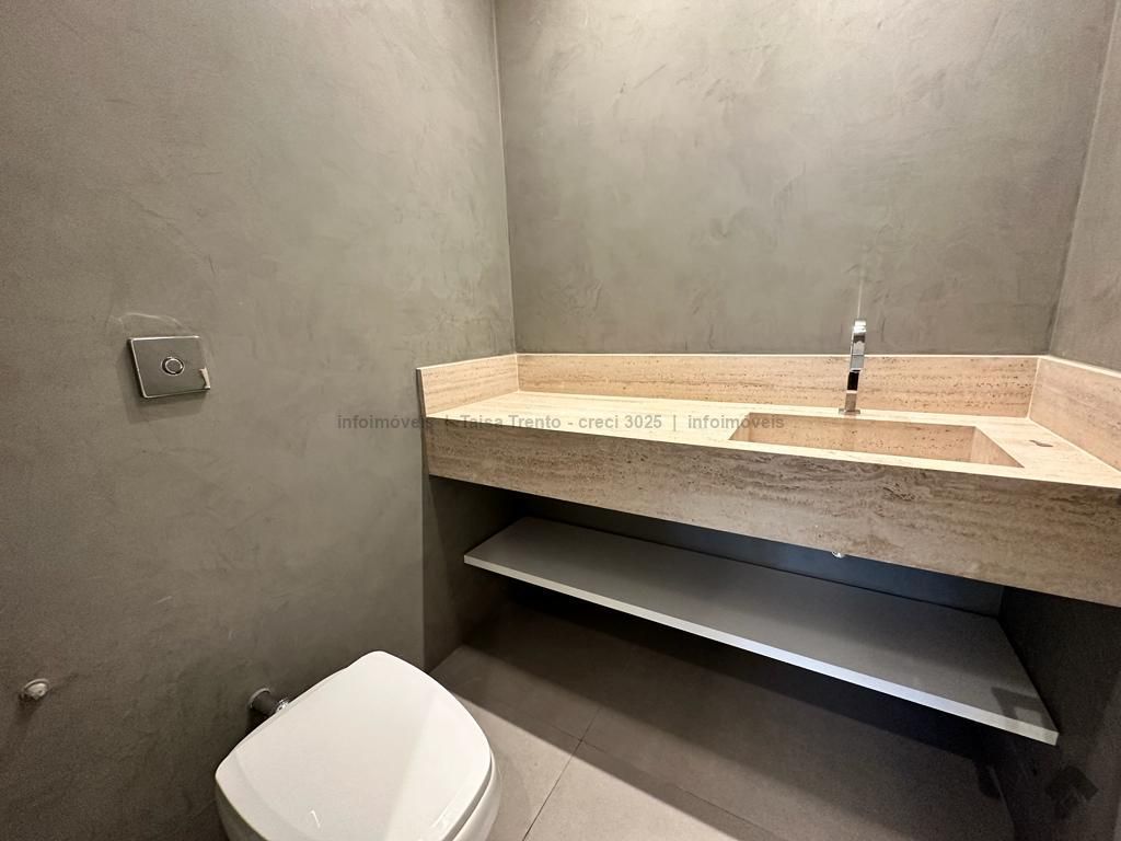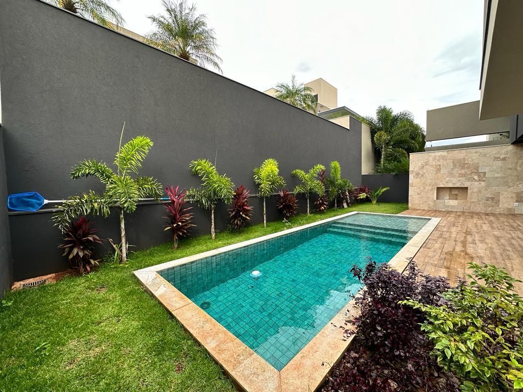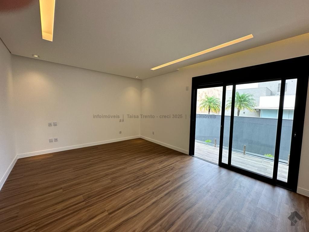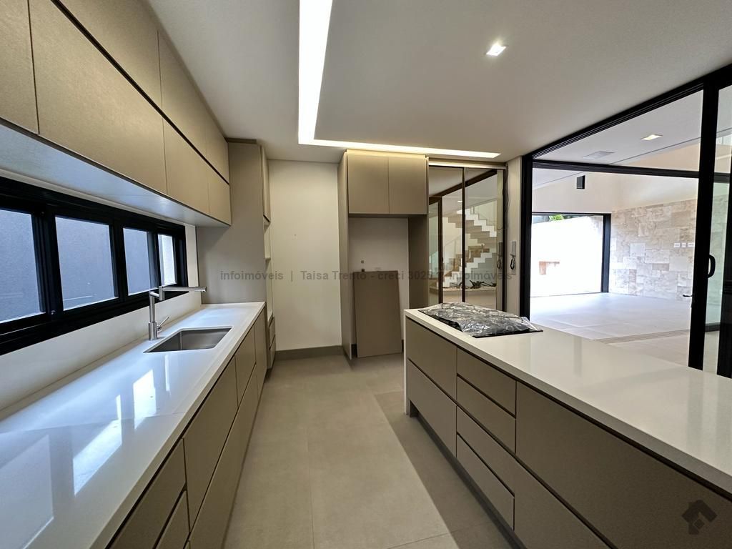 Sobrado rico em armários. Conta com 04 suítes, sendo duas com sacada e uma delas máster com closet e banheira. A cozinha integrada com a sala de estar e gourmet foram projetadas para que a família pudesse explorar ao máximo a vista da piscina. A propriedade dispõe de uma suíte no piso térreo que pode ser um home theater ou um escritório. Possui aquecimento solar nos wcs, cozinha e gourmet e um lindo paisagismo. O sobrado também dispõe de pré instalações de câmeras, energia fotovoltaica.