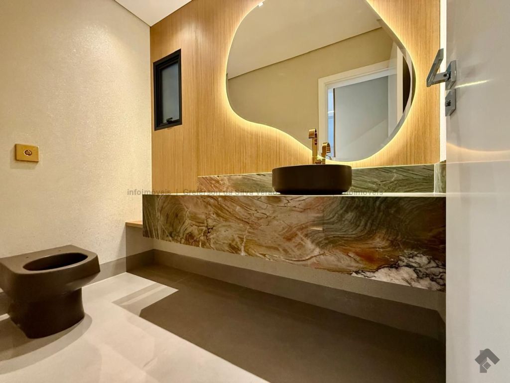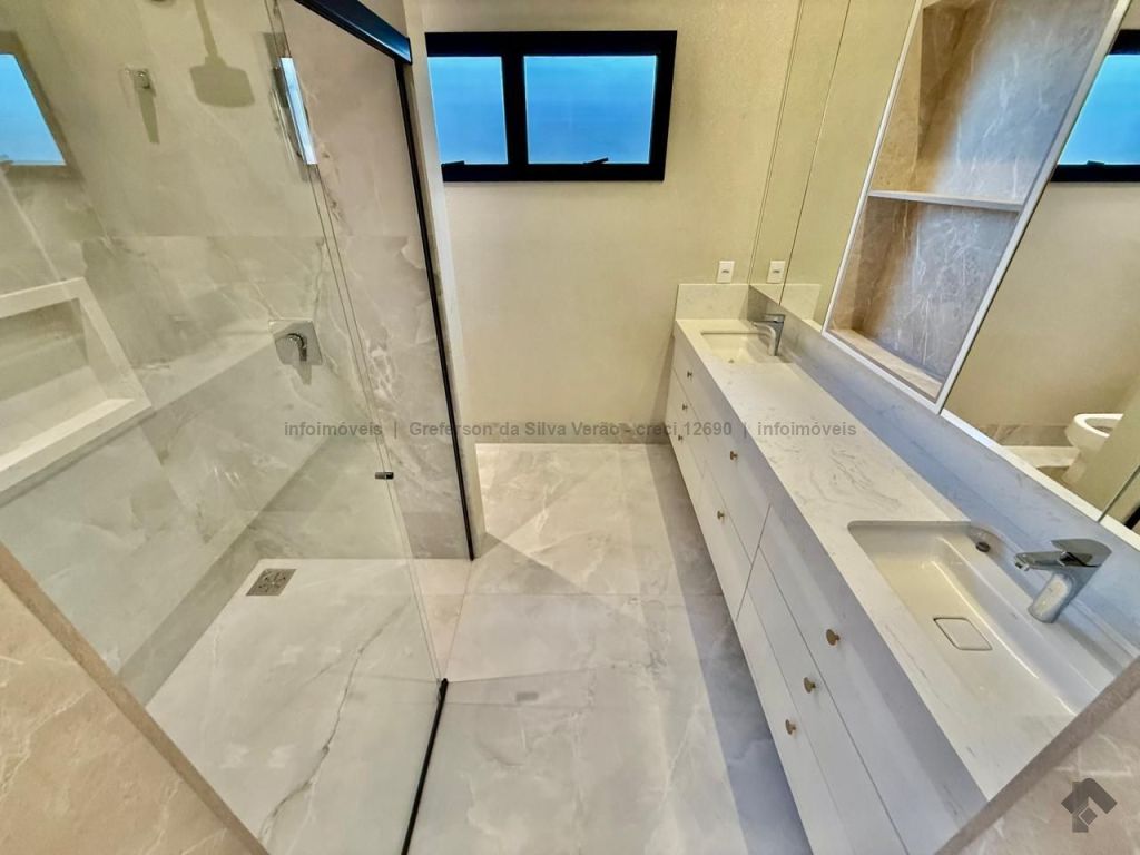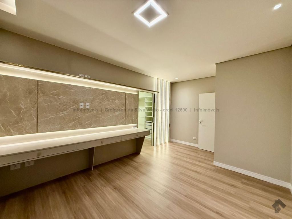 Sobrado de altíssimo padrão no Alphaville I, rico em armários. Se você busca conforto, sofisticação e praticidade em um só lugar, esse sobrado é a escolha perfeita. Área total de 424,91 m² e área construída de 354,21 m². Diferenciais incluem quatro suítes, uma no térreo com planejados, elevador, quatro vagas de garagem, sala ampla para dois ambientes, cozinha planejada, área de serviço com planejados, banheiro de empregado, depósito externo, área gourmet totalmente planejada, piscina aquecida e paisagismo projetado. Piso superior: ampla sacada, uma suíte com sacada e closet planejado, duas suítes com closet planejado, suíte master com amplo closet, banheiro com pia dupla e chuveiro.