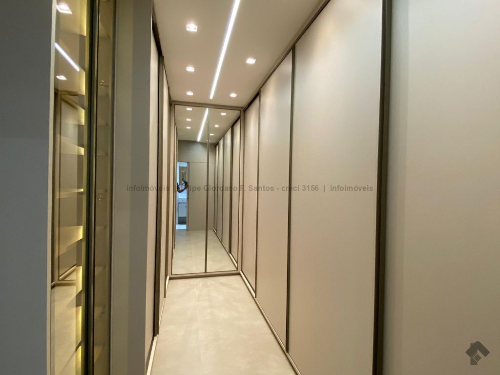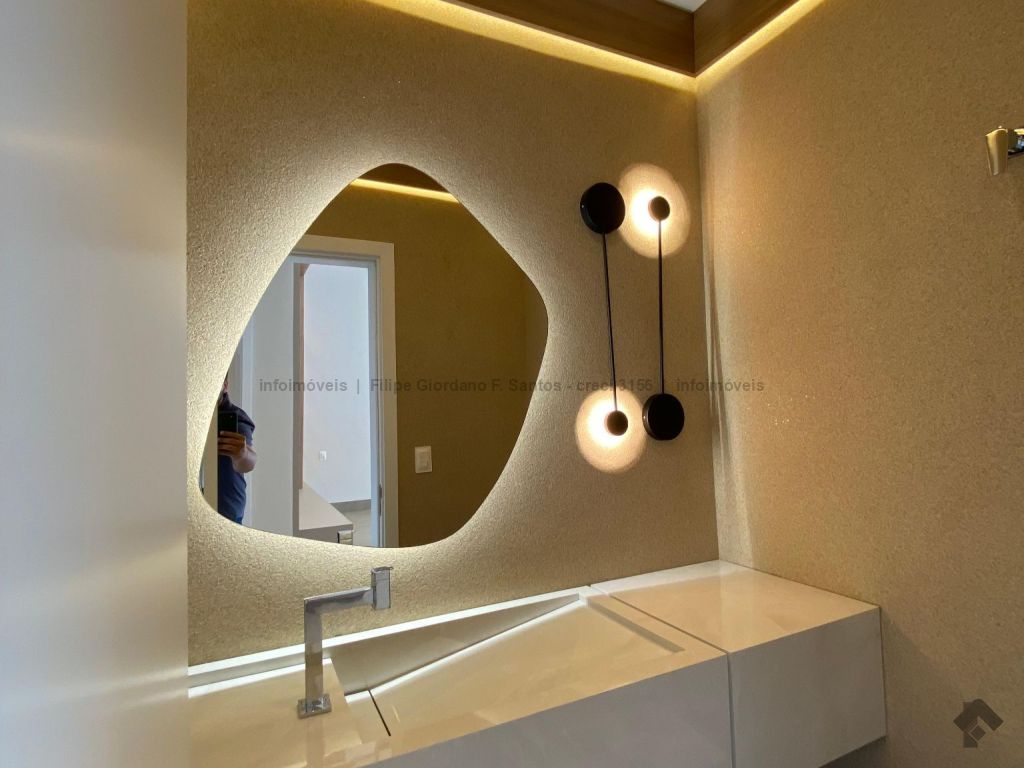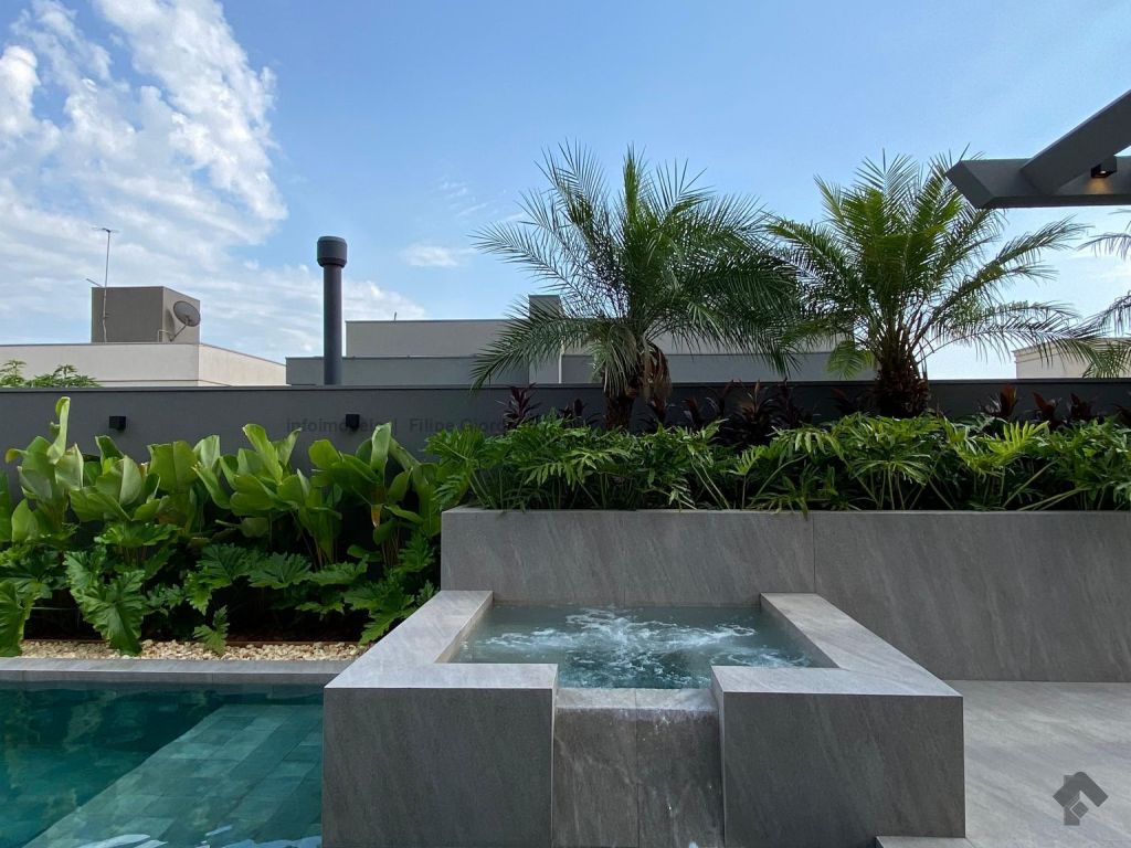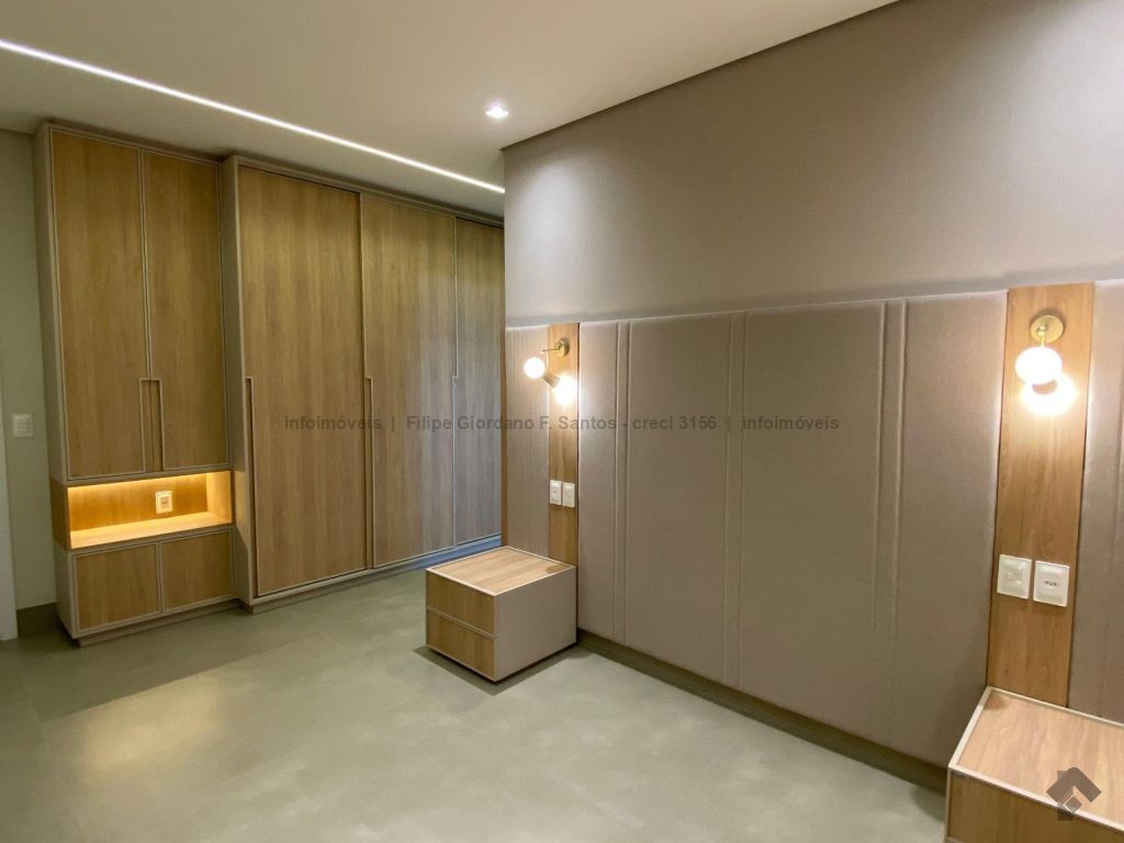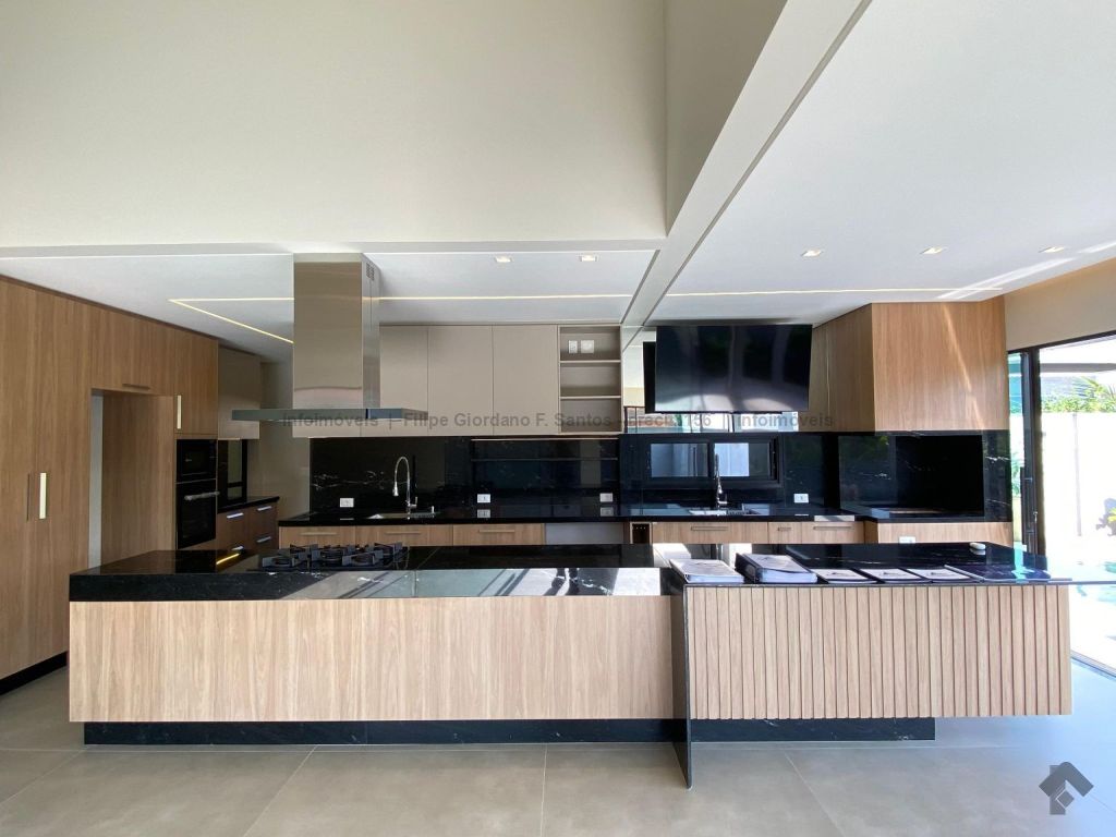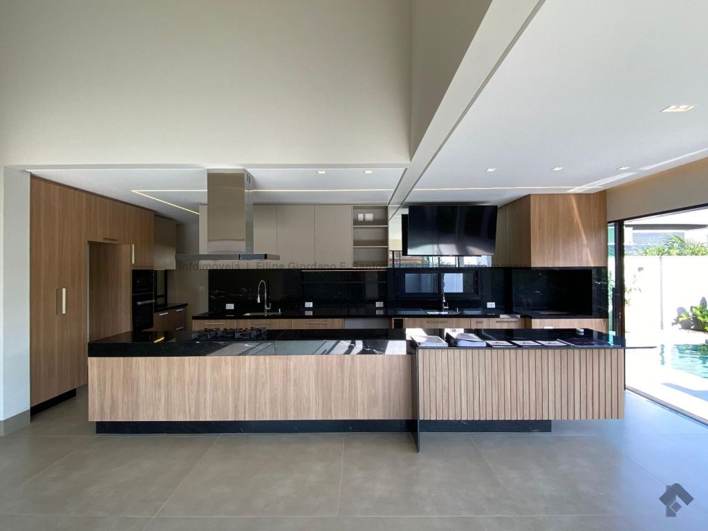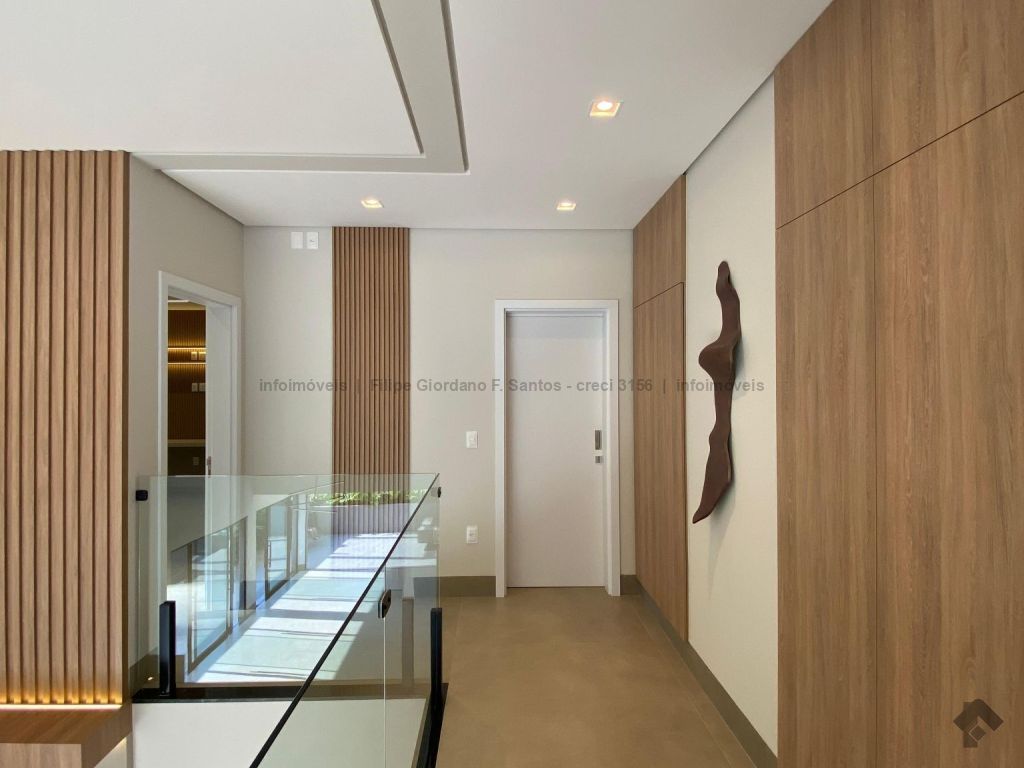 No piso térreo ampla suíte ou escritório, lavabo, sala três ambientes com pé direito duplo, cozinha integrada ao gourmet com cooktop, forno elétrico, micro-ondas, coifa, TV, duas pias, piscina aquecida, paisagismo lindo com irrigação automatizada. Conta com água aquecida, boiler de 60 litros, banheiro para o espaço gourmet, área de serviço coberta, depósito. Piso superior com 4 suítes, todas com móveis planejados, sendo uma com closet.