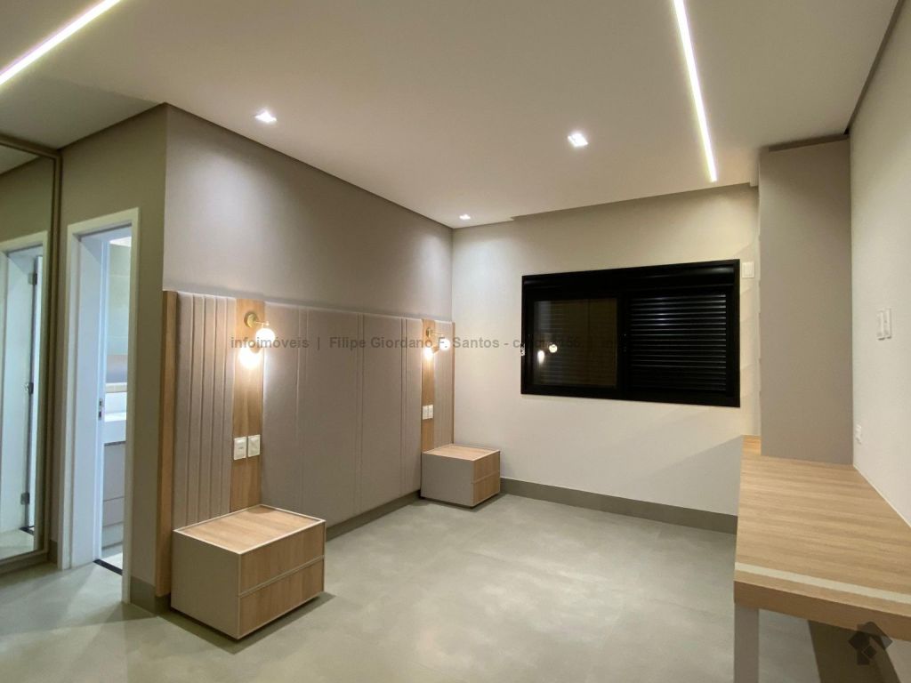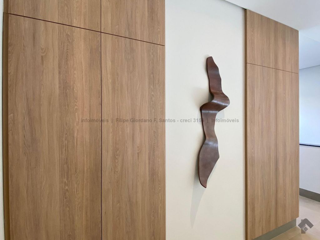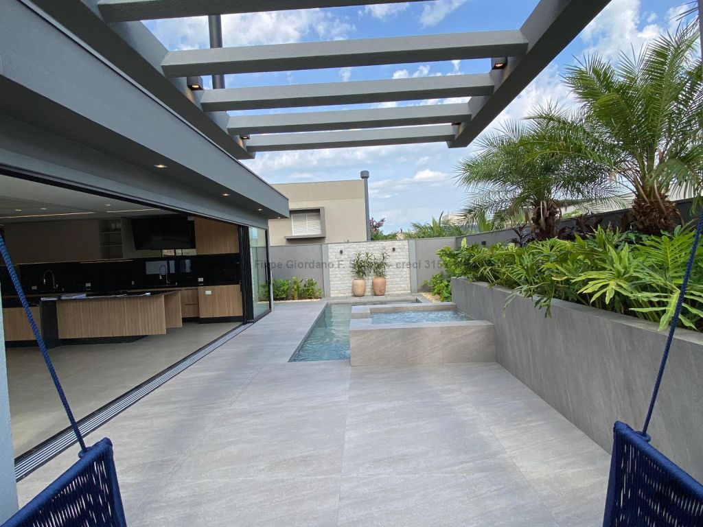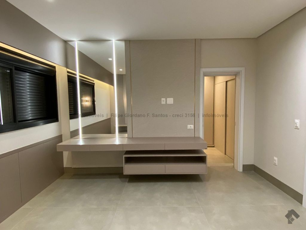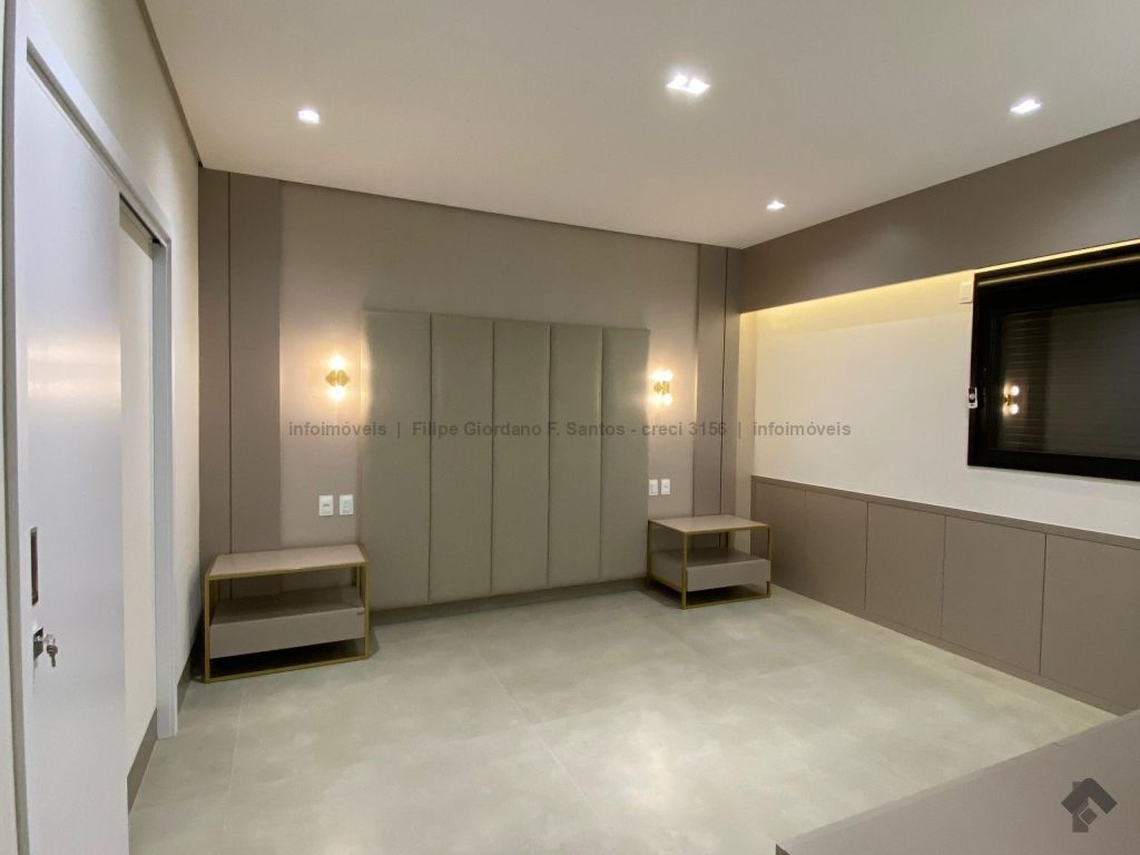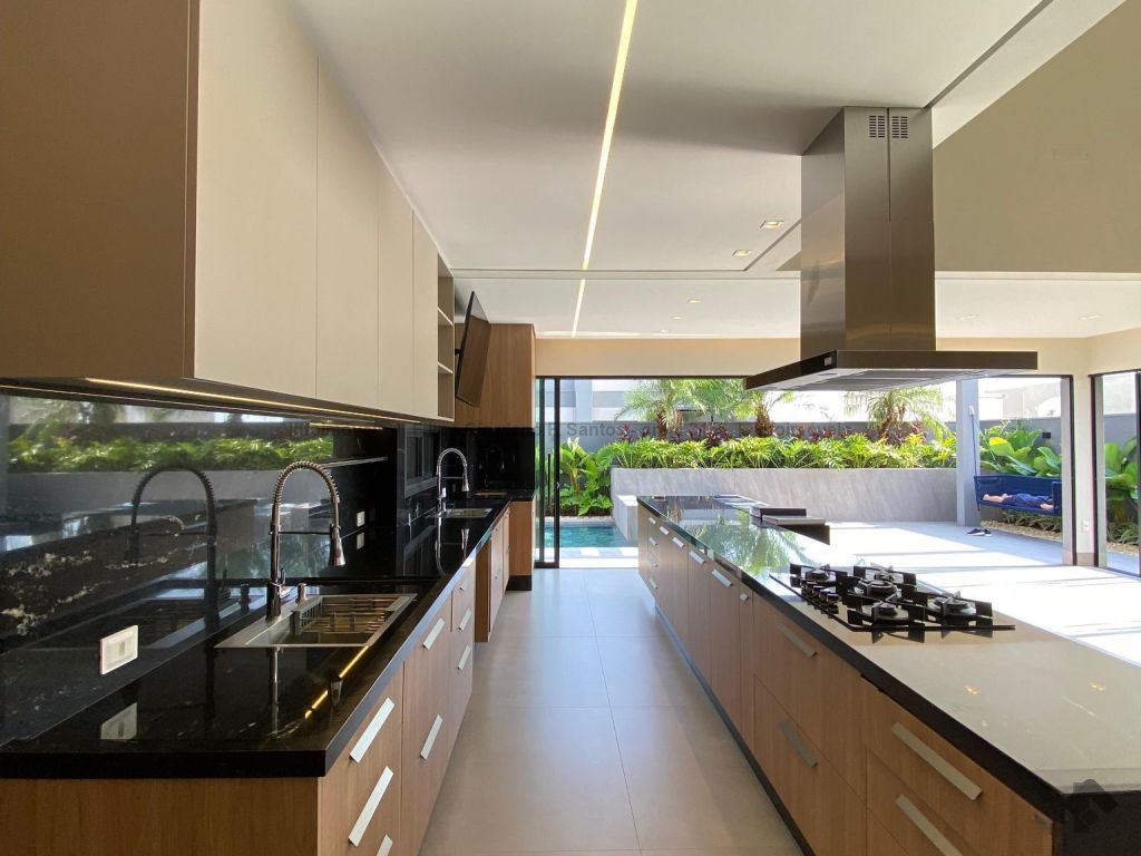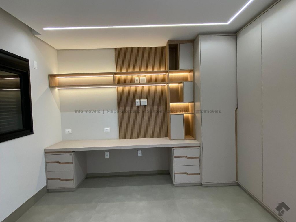 No piso térreo ampla suíte ou escritório, lavabo, sala três ambientes com pé direito duplo, cozinha integrada ao gourmet com cooktop, forno elétrico, micro-ondas, coifa, TV, duas pias, piscina aquecida, paisagismo lindo com irrigação automatizada. Conta com água aquecida, boiler de 60 litros, banheiro para o espaço gourmet, área de serviço coberta, depósito. Piso superior com 4 suítes, todas com móveis planejados, sendo uma com closet.