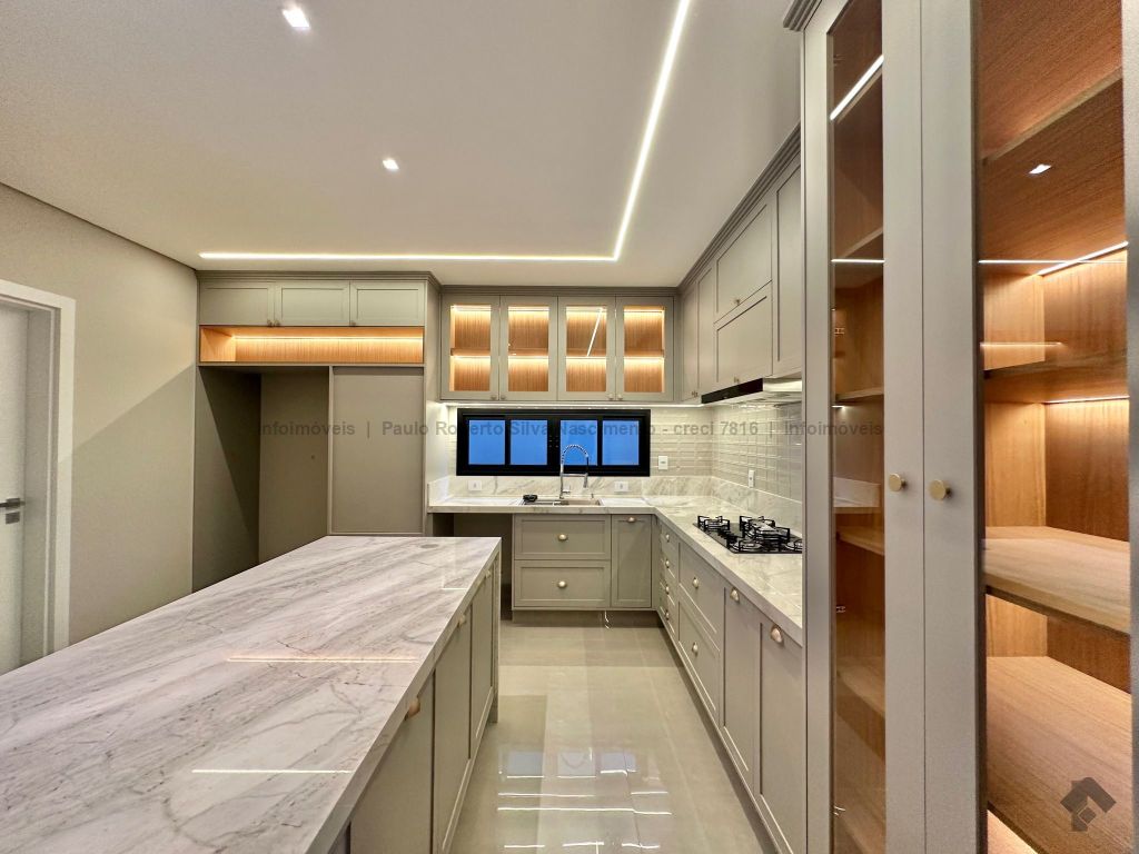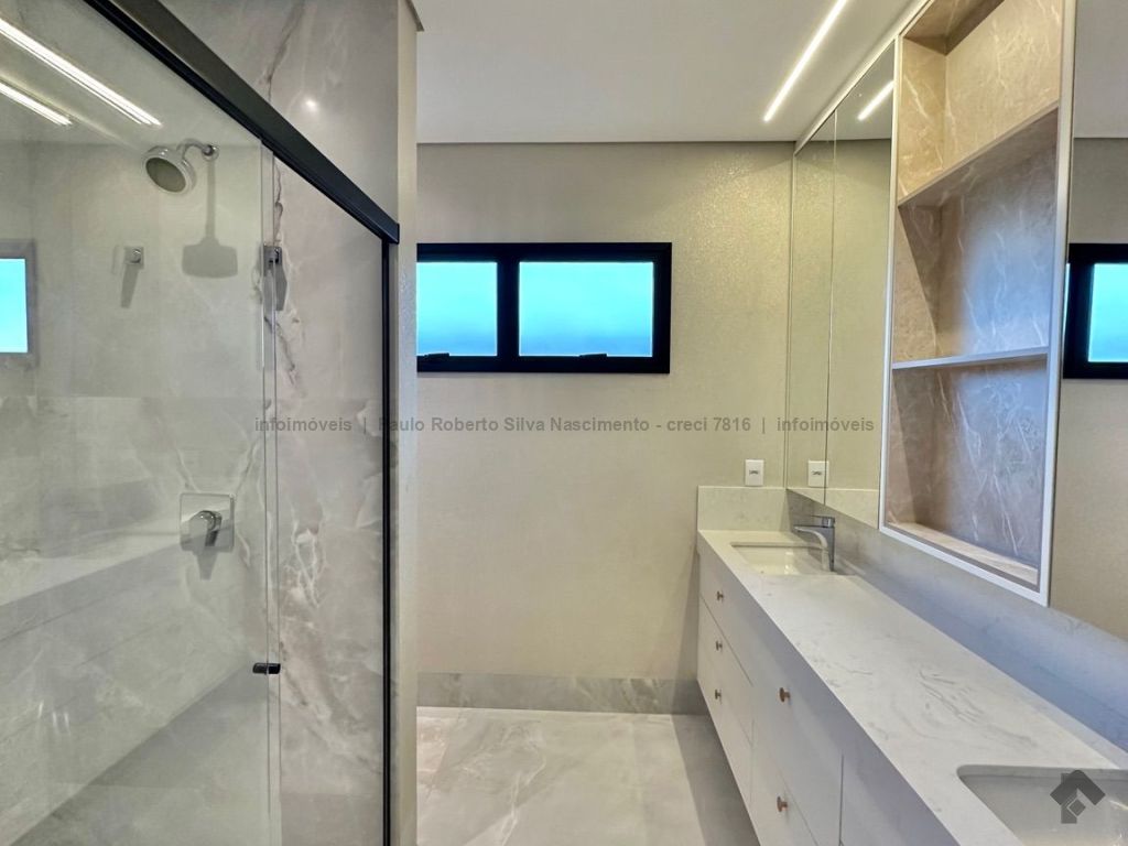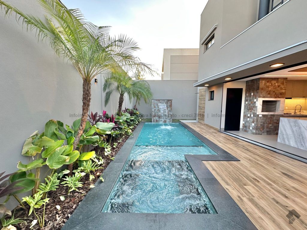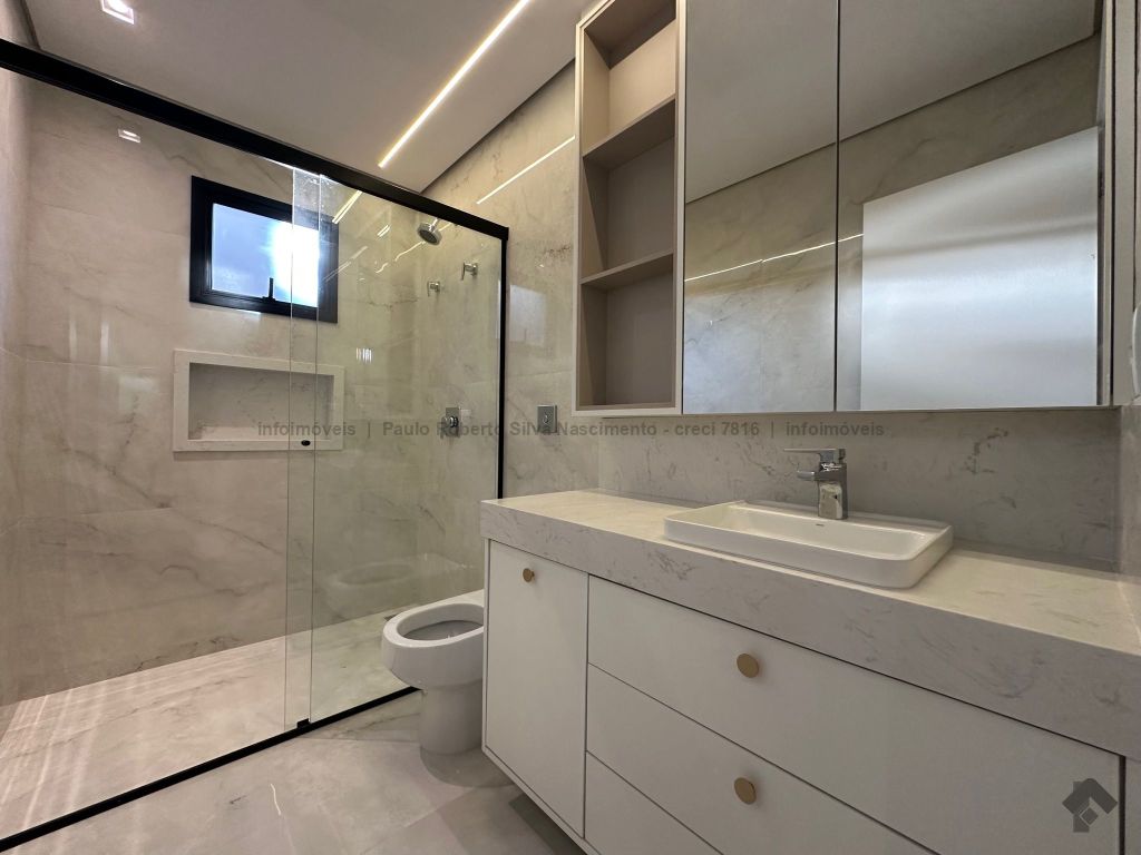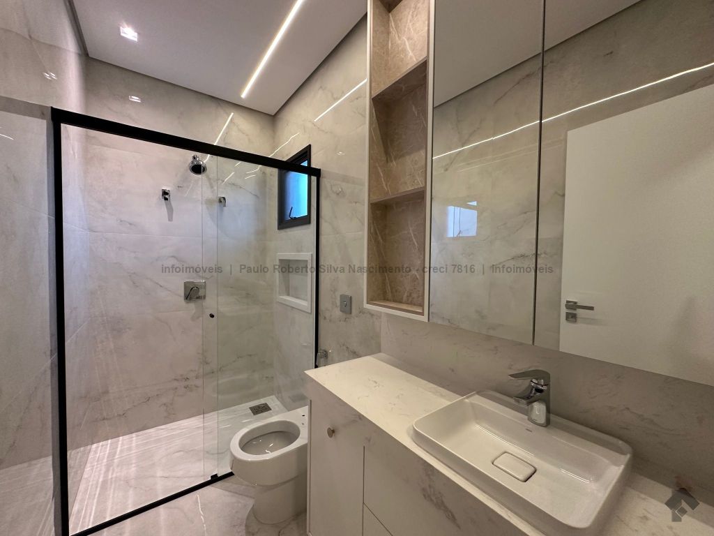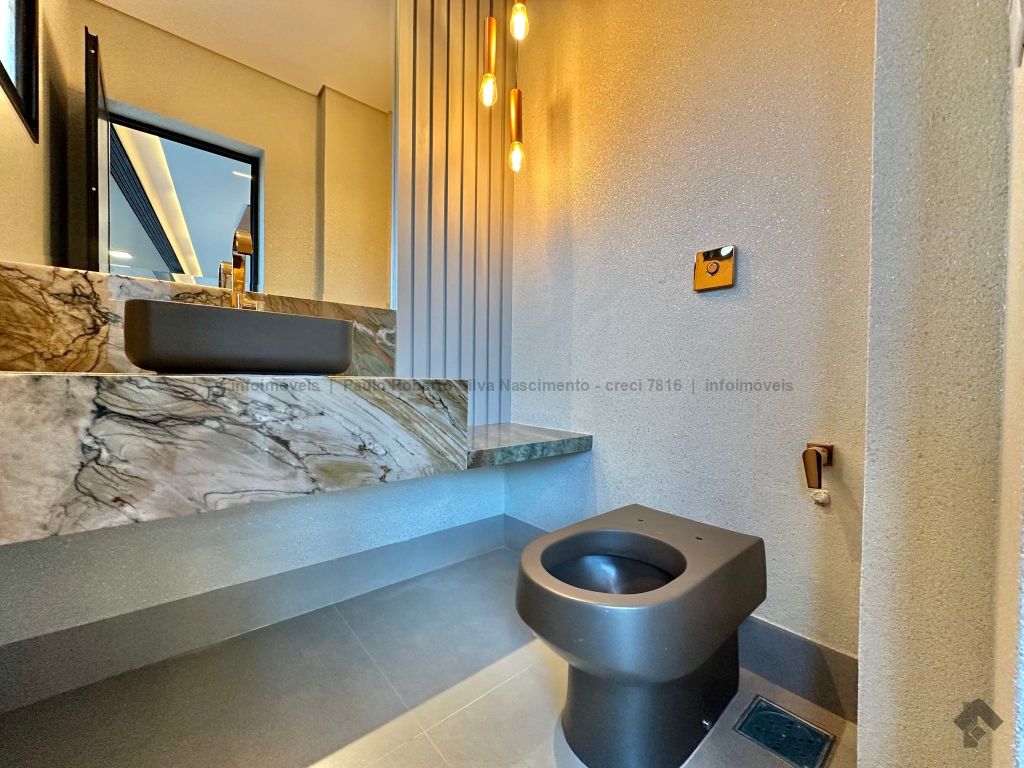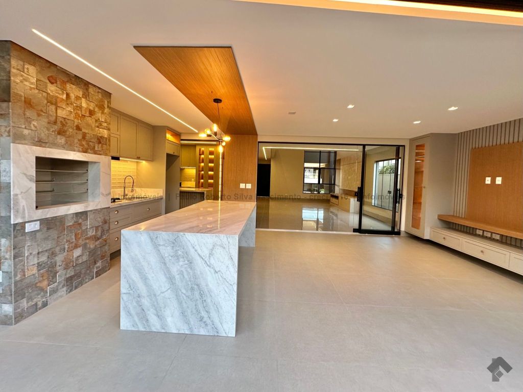 Piso térreo sala de TV com pé-direito duplo, sala de jantar integrada, área gourmet espaçosa, suíte confortável, banheiro de apoio para a área de lazer, cozinha independente com despensa, área de serviço funcional e depósito. Piso superior três suítes amplas, sendo a master com espaço para closet, além de uma varanda privativa para momentos de relaxamento.