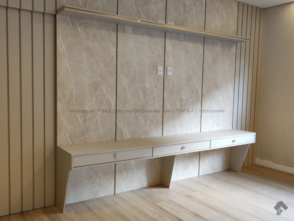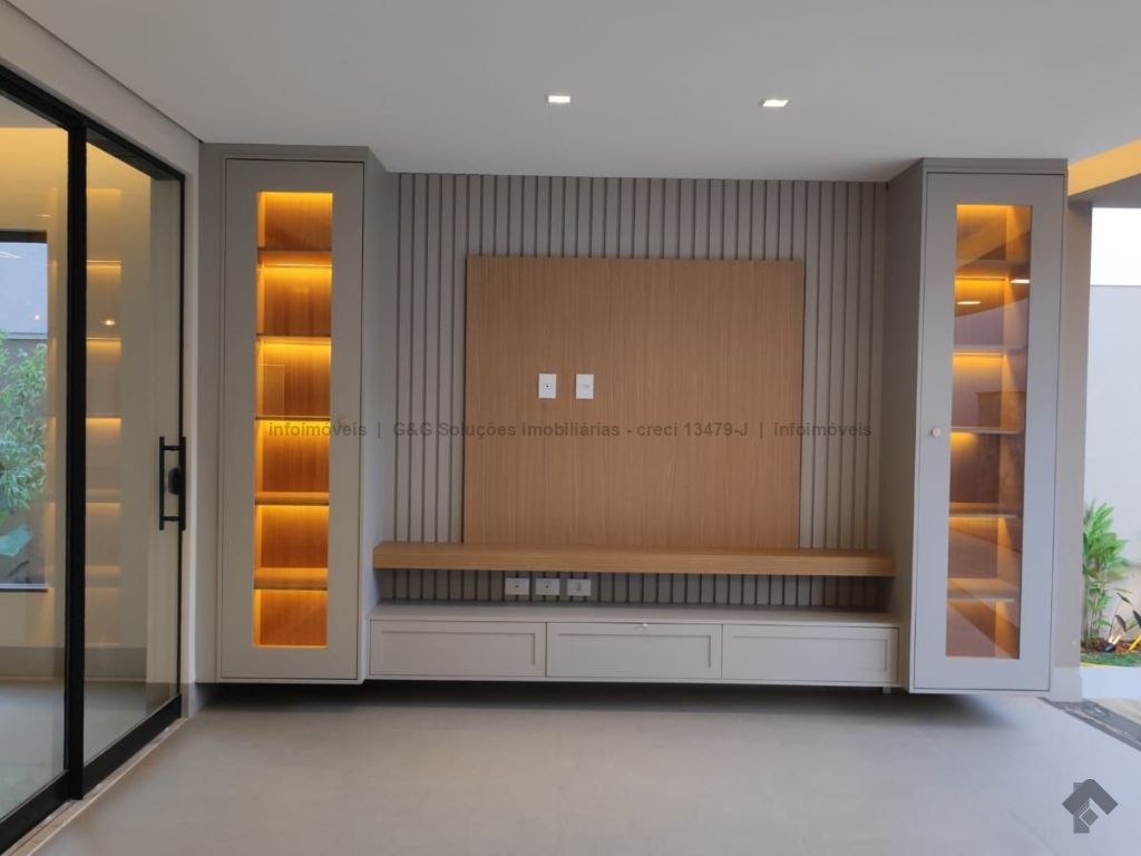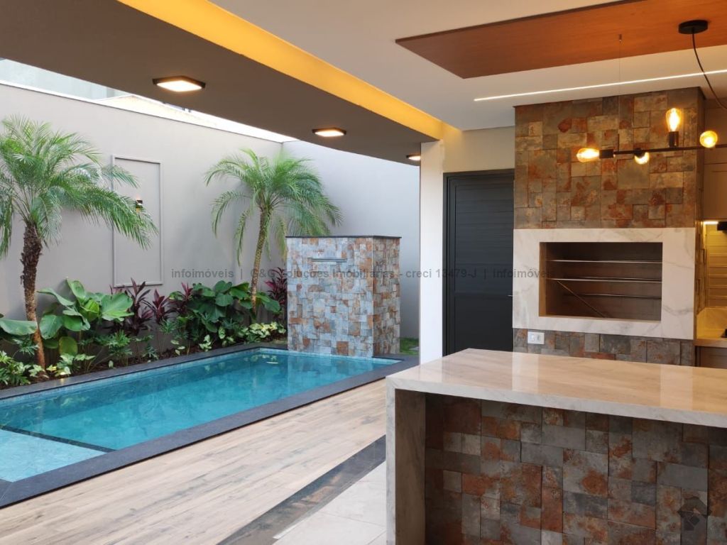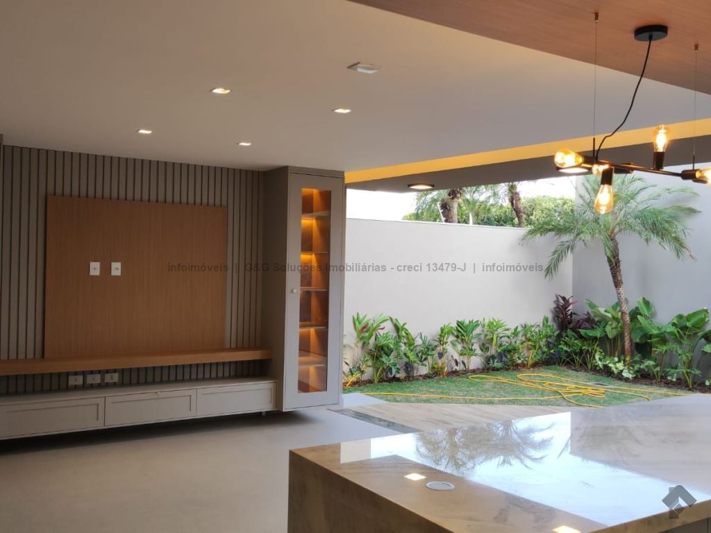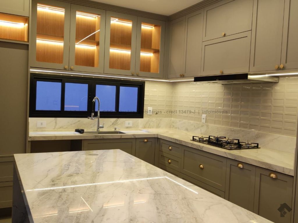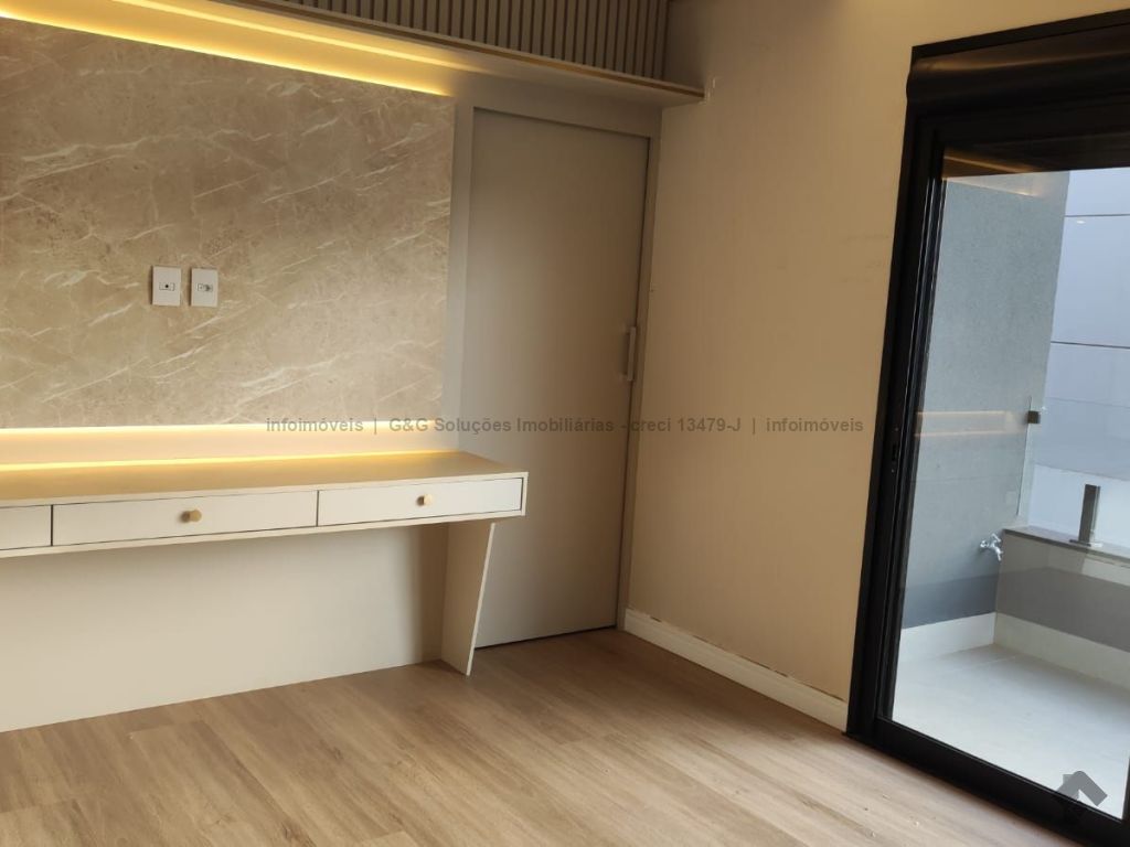 Piso inferior: sala ampla com dois ambientes, lavabo, cozinha, área gourmet com piscina aquecida e lavabo, lavanderia, despensa e banheiro de serviço. Piso superior: três suítes com closet, sendo uma master e outra com sacada privativa, copa, sacada e elevador.