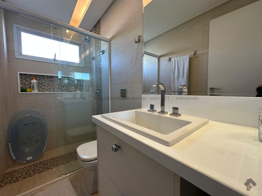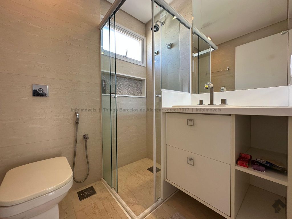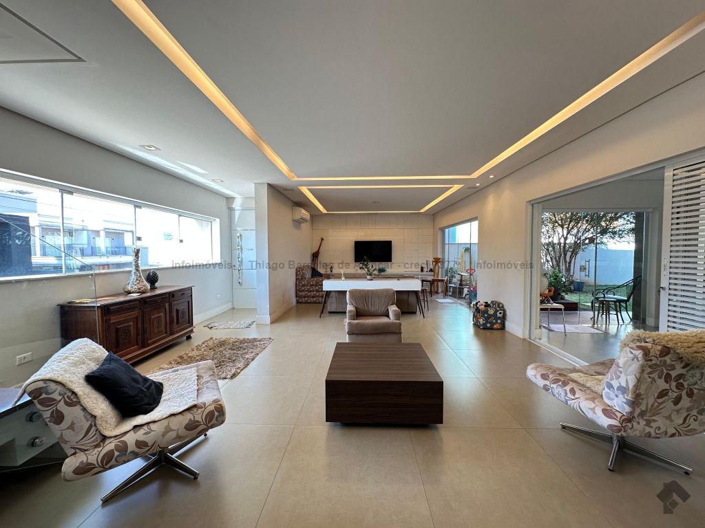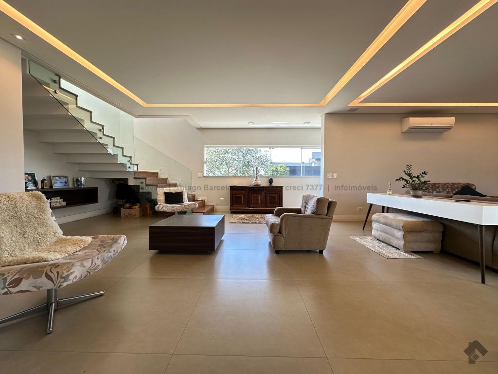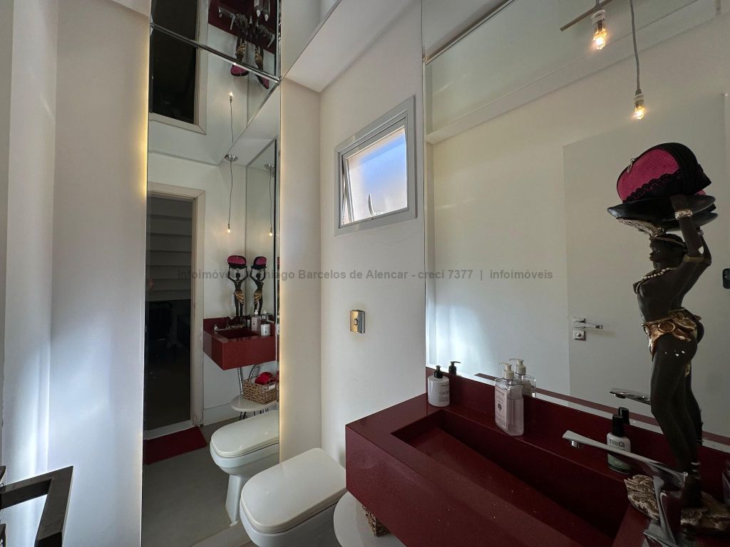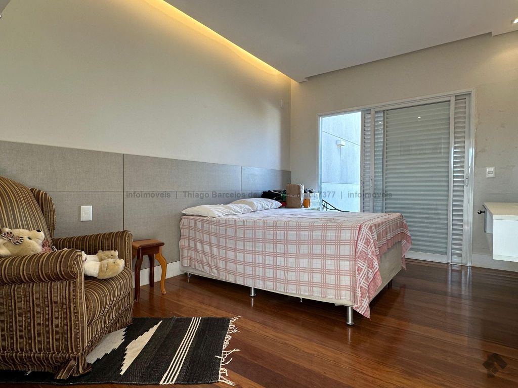 Sobrado de alto padrão no Alphaville I com 4 suítes e 5 vagas de garagem, sendo 3 cobertas. No pavimento térreo: hall principal com sala ampla para dois ambientes, lavabo, cozinha repleta de armários, escritório (ou opção para 2 escritórios, sendo um reversível em depósito), espaço gourmet completo com churrasqueira e fogão a lenha, além de depósito. Área de lazer com piscina, energia solar fotovoltaica e ambientes integrados que proporcionam conforto e praticidade para toda a família. No pavimento superior: 4 suítes, todas com sacada, sendo 3 delas com closet. Imóvel com acabamento impecável, pensado para oferecer sofisticação, funcionalidade e bem-estar.