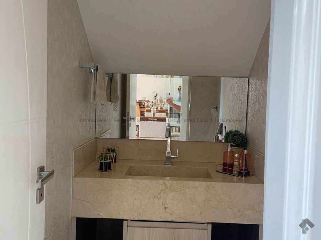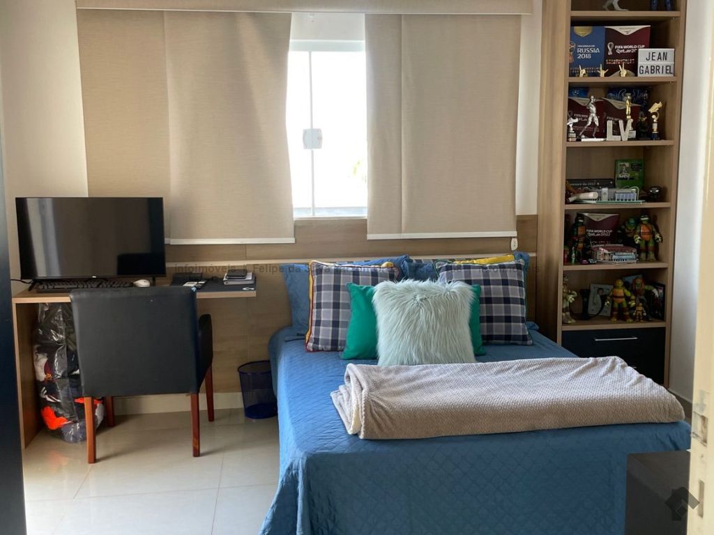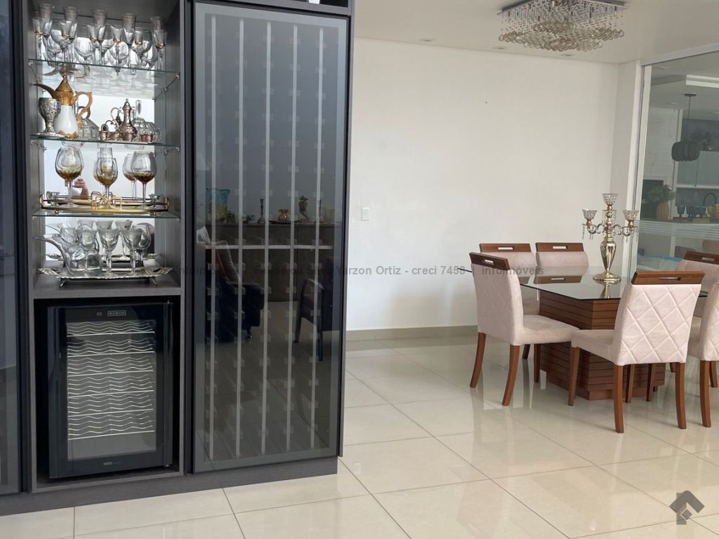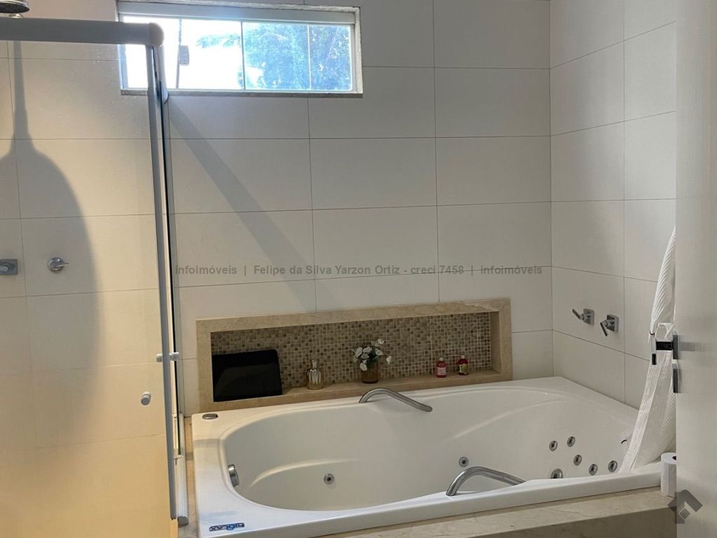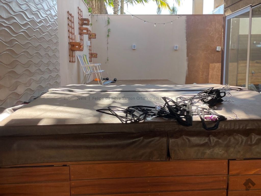 Sobrado na melhor localização do condomínio, completo de planejados e mobília, melhor custo-benefício do condomínio. Possui quatro suítes, sendo uma master, sacada em duas suítes, sala ampla, cozinha planejada, espaço gourmet completo com bancada em mármore, jacuzzi, quatro vagas de garagem, adega, projeto de paisagismo e iluminação.