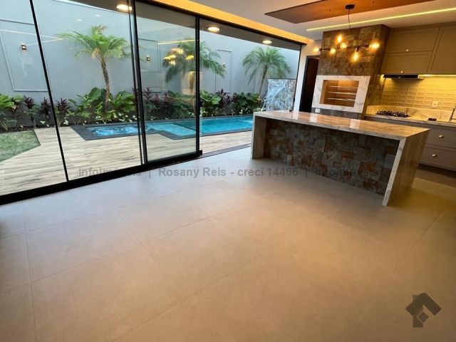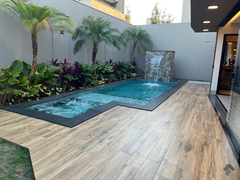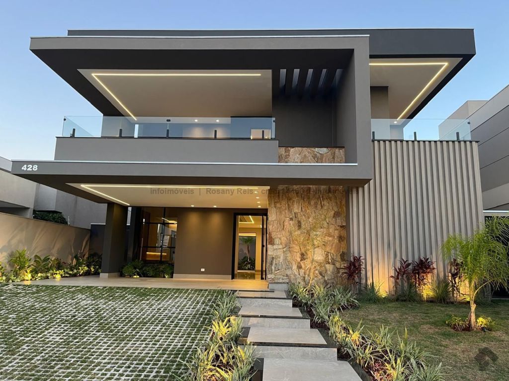 Uma residência que é sinônimo de sofisticação e conforto. Com arquitetura contemporânea e paisagismo impecável, conta com 4 suítes amplas, sendo a master com closet e banheiro elegante. O living com pé-direito elevado se integra à área externa, onde piscina e deck de madeira criam um cenário perfeito para receber. Destaque para o espaço gourmet completo, cozinha planejada com ilha central, lavabo sofisticado e elevador privativo. Um lar que une design moderno, funcionalidade e exclusividade em cada detalhe.