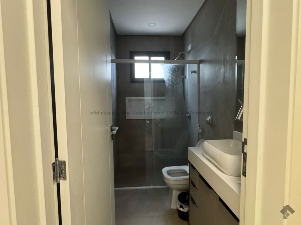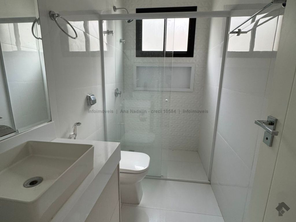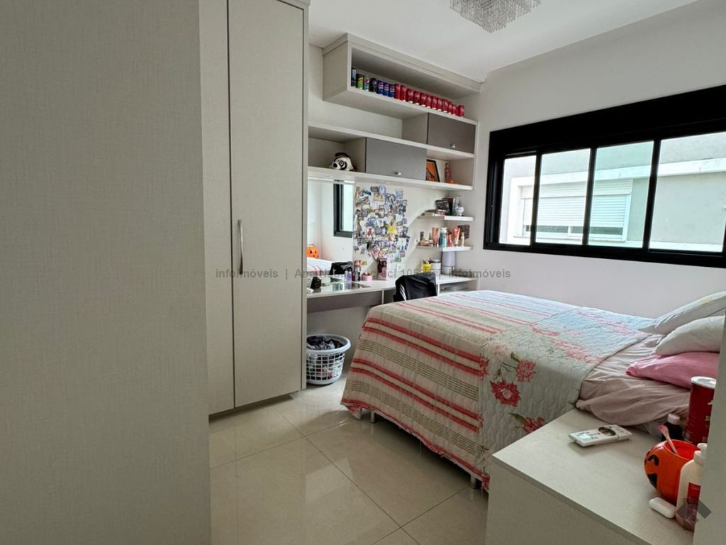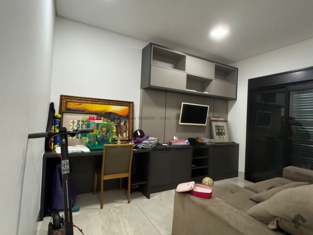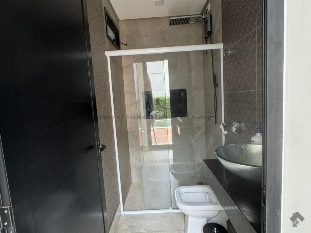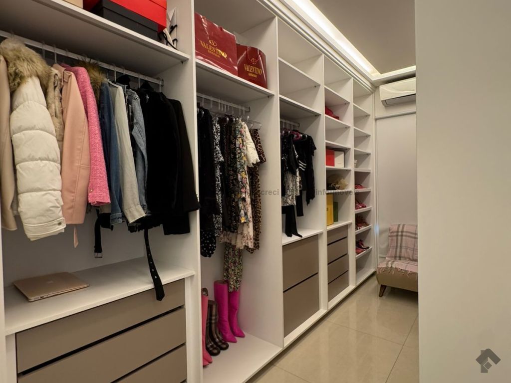 Sobrado com pé direito duplo, 5 suítes, sendo 1 máster com amplo closet, todas as suítes com armários e banheiros equipados, uma das suítes se encontra no térreo, ampla sala de estar e jantar, cozinha planejada, área gourmet espaçosa para 3 ambientes com churrasqueira, armários planejados, piscina e garagem coberta. Condomínio com toda segurança 24 horas e excelente infraestrutura.