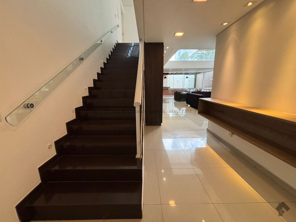 Sobrado exclusivo no Alphaville I, em localização privilegiada, pronto para morar e vendido de porteira fechada. Conta com 4 suítes, sendo 1 master com closet e 2 com varandas externas. O living amplo integra sala de TV, jantar e estar com pé-direito duplo. A cozinha é planejada e equipada, complementada por área de serviço com armários. O espaço gourmet é um destaque, com bancada em mármore, churrasqueira e uma jacuzzi perfeita para momentos de lazer. O imóvel ainda dispõe de projeto de paisagismo e iluminação, adega e 4 vagas de garagem, sendo 2 cobertas.