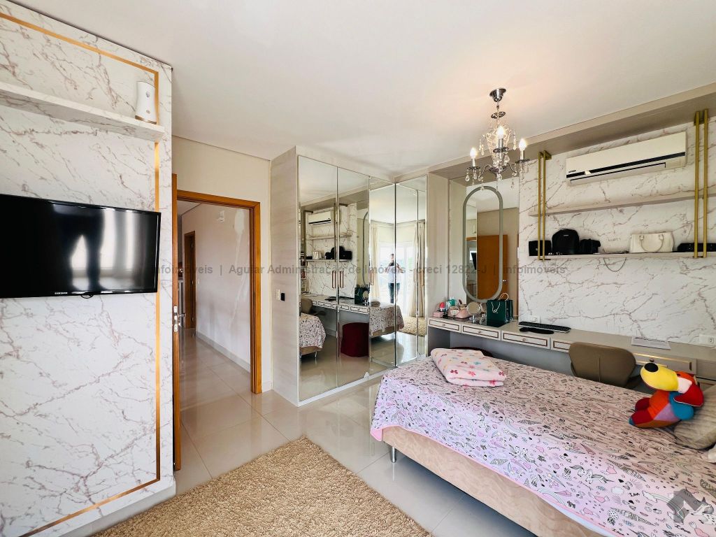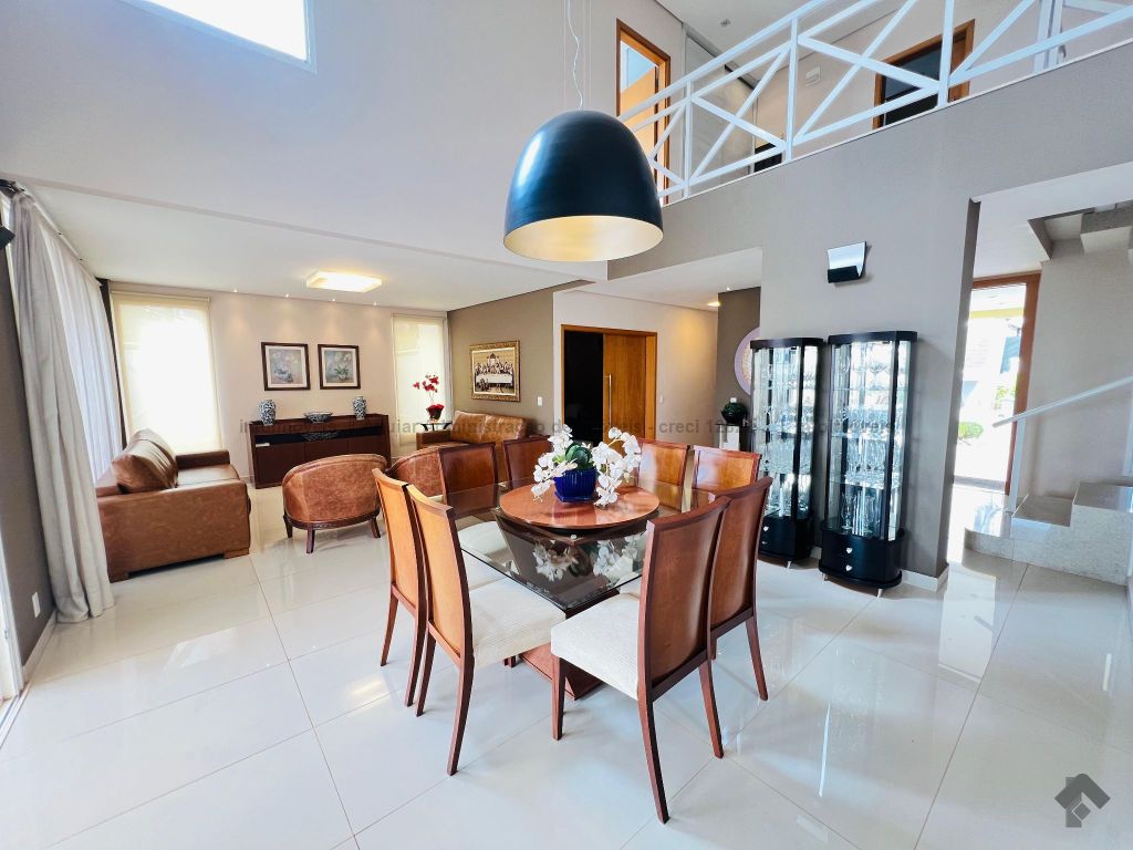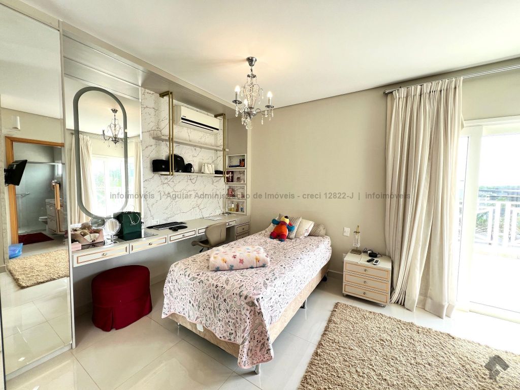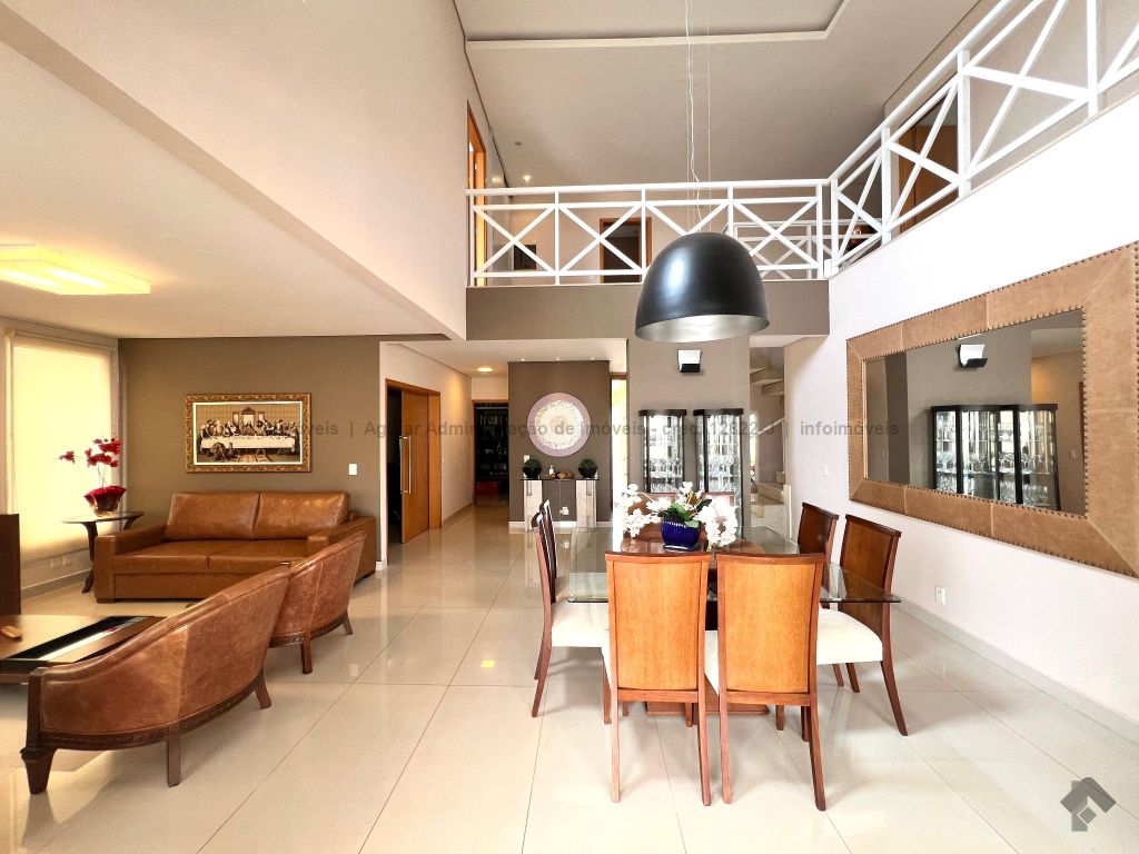 Residencial Alphaville em Campo Grande. Com quatro suítes, sendo a master com closet e hidromassagem, escritório, sala de cinema, salas de estar e jantar, dois lavabos, cozinha planejada, área de serviço com banheiro para funcionários e depósito, área gourmet ampla e piscina aquecida. 488 m² de área total e 362 m² construídos.