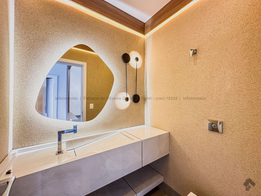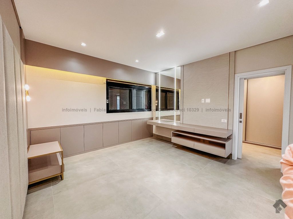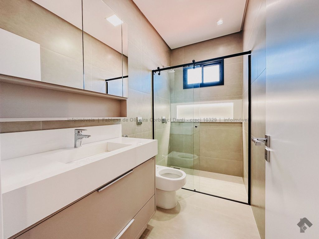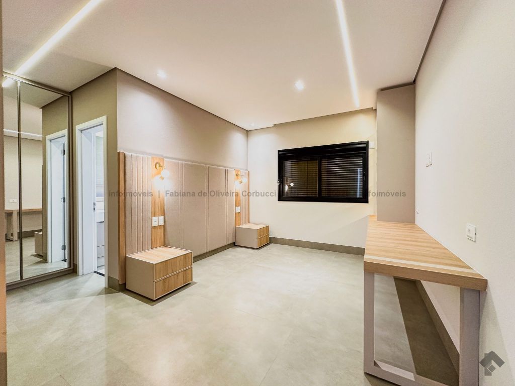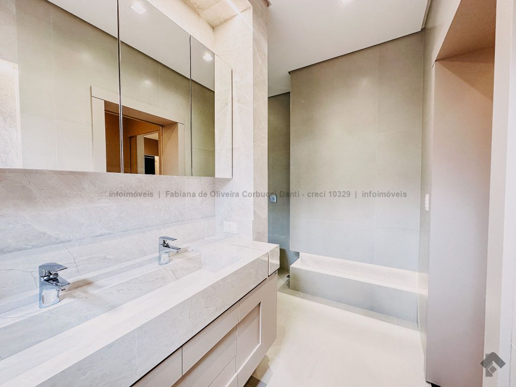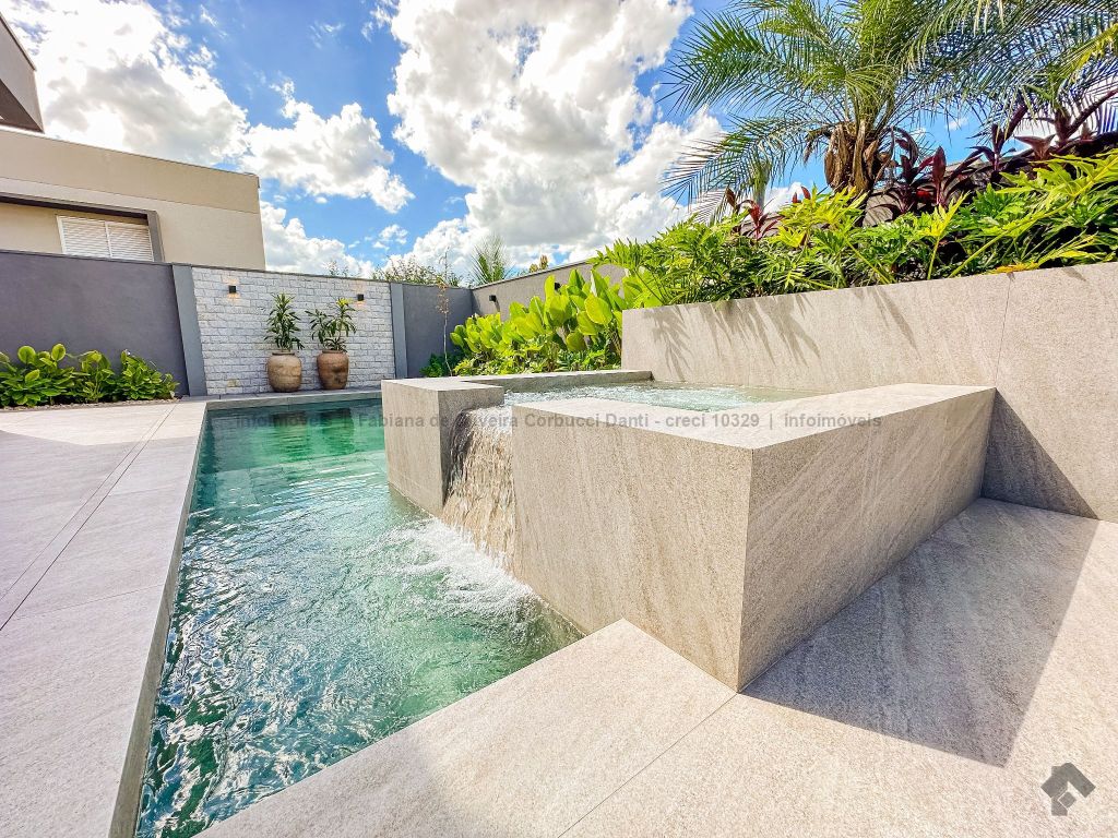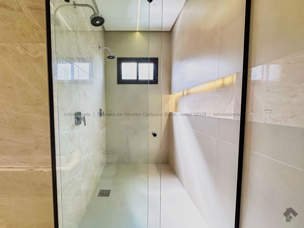 4 suítes, sendo 1 suíte no térreo e 3 suítes no piso superior, incluindo 1 máster. A área de lazer impressiona, contendo muito paisagismo e uma piscina aquecida com jacuzzi. A casa é rica em detalhes, oferecendo água aquecida através de aquecimento solar, completa de móveis planejados. A casa será entregue com alguns eletrodomésticos, como cooktop, coifa, forno elétrico e micro-ondas, espaço gourmet integrado e todo planejado, pergolado e paisagismo, irrigação automática, fechadura digital e persianas elétricas.