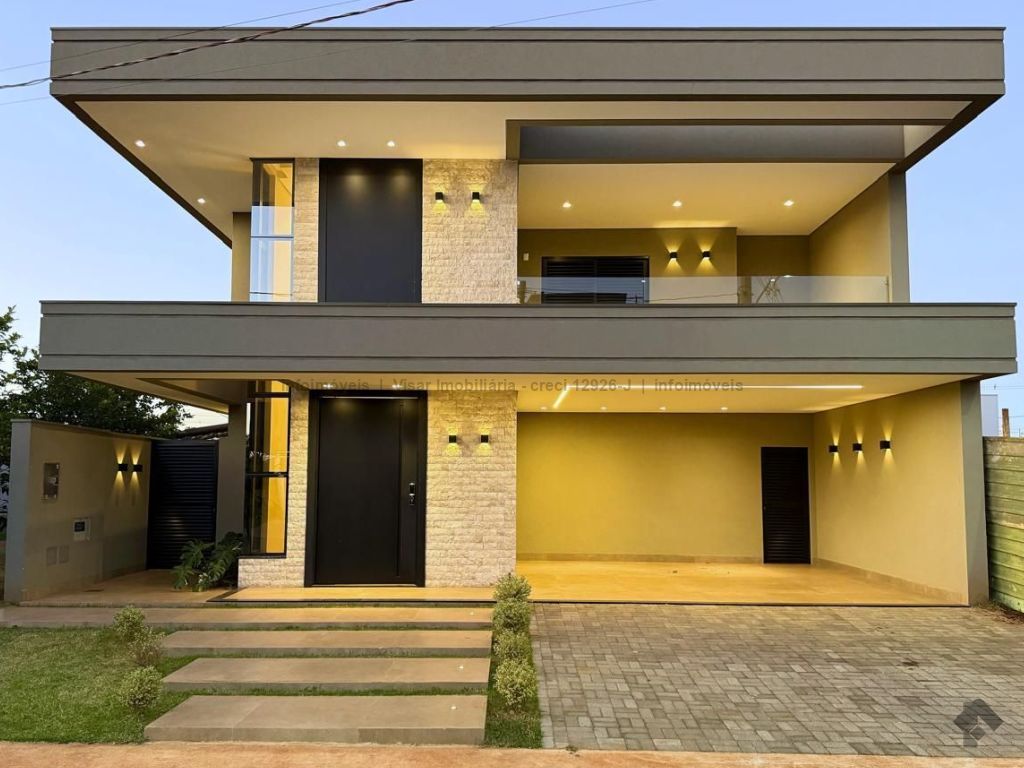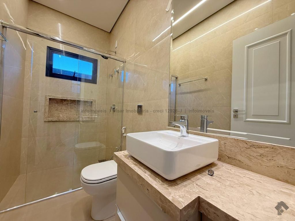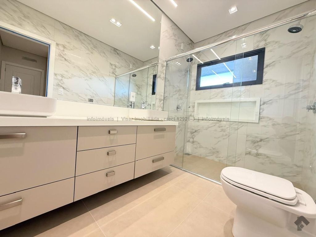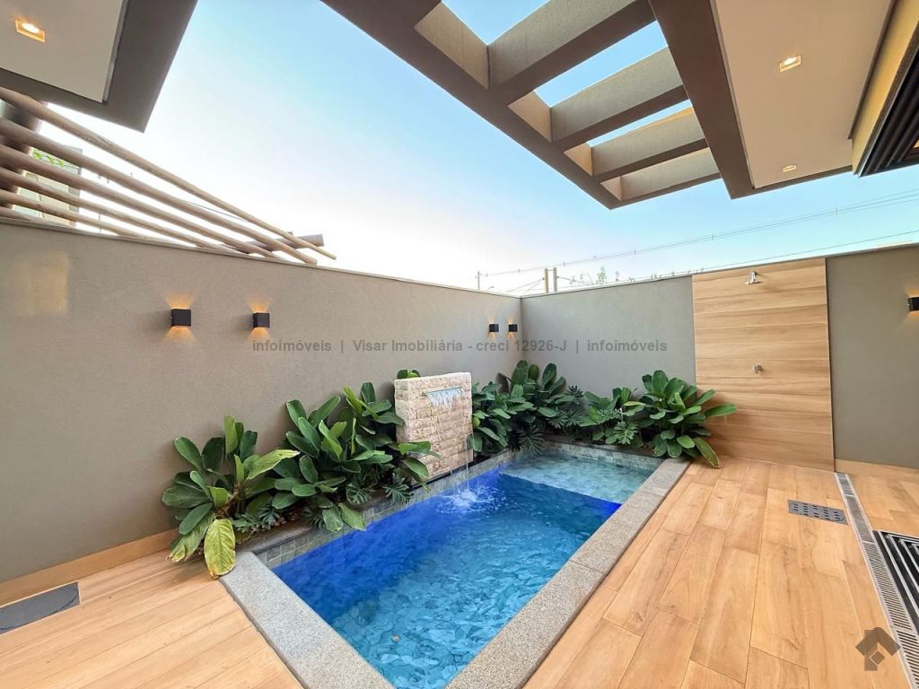 04 suítes, sendo a principal com closet e sacada ampla, sala de estar/TV com lustre, cozinha privativa e planejada, área gourmet com ar condicionado, cooktop, exaustor, forno elétrico, micro-ondas, churrasqueira, sala de TV/estar ampla, lavanderia com planejados, lavabo, piscina. E ainda, garagem para 02 carros, ao lado da passarela com pomares, poço artesiano, esquadrias de alumínio, piso porcelanato, água aquecida com pressurização, iluminação interna e externa, paisagismo e muito mais.