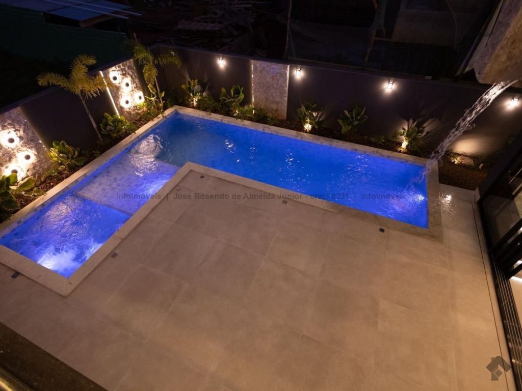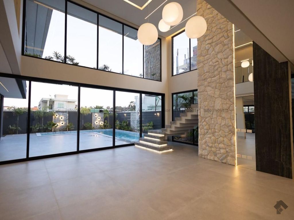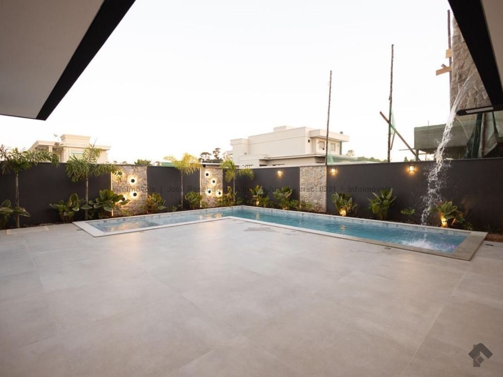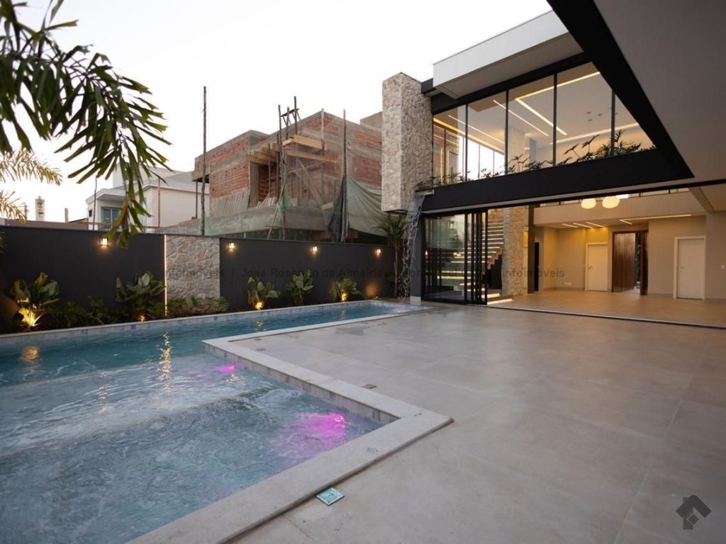 Casa de alto padrão com piscina aquecida e automação. Residência exclusiva com design moderno, piscina aquecida com hidromassagem e cascata integrada, espaço gourmet completo, elevador interno e automação total de iluminação, som e climatização. Conta com placas solares, cozinha gourmet planejada, home theater, escritório, suíte master com closet e varanda, além de suítes amplas com móveis planejados. Sofisticação, conforto e tecnologia em cada detalhe.