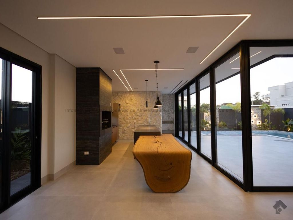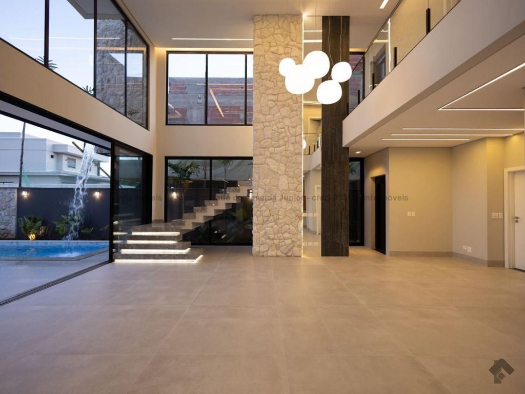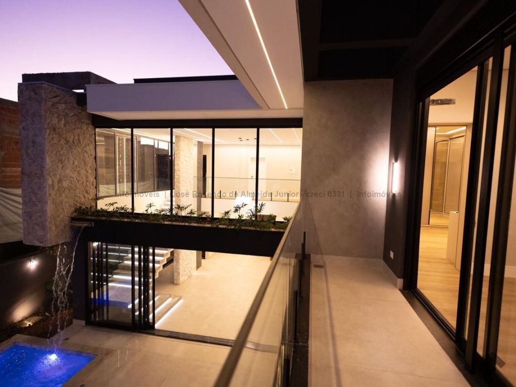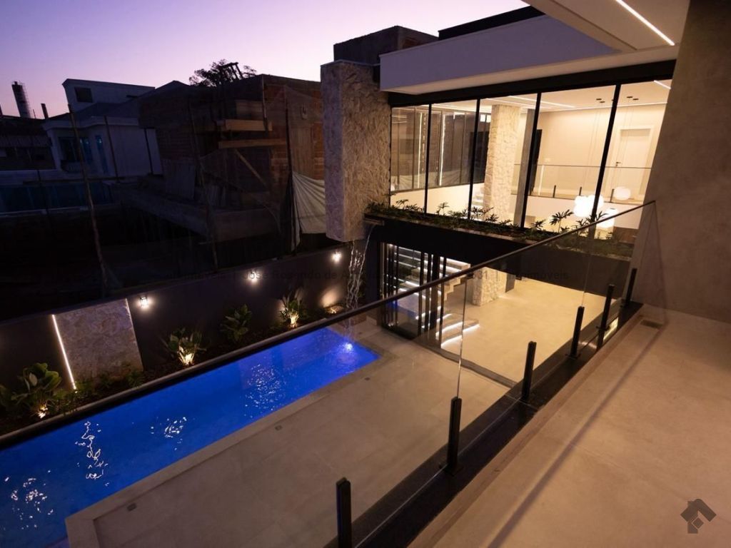 Casa de alto padrão com piscina aquecida e automação. Residência exclusiva com design moderno, piscina aquecida com hidromassagem e cascata integrada, espaço gourmet completo, elevador interno e automação total de iluminação, som e climatização. Conta com placas solares, cozinha gourmet planejada, home theater, escritório, suíte master com closet e varanda, além de suítes amplas com móveis planejados. Sofisticação, conforto e tecnologia em cada detalhe.