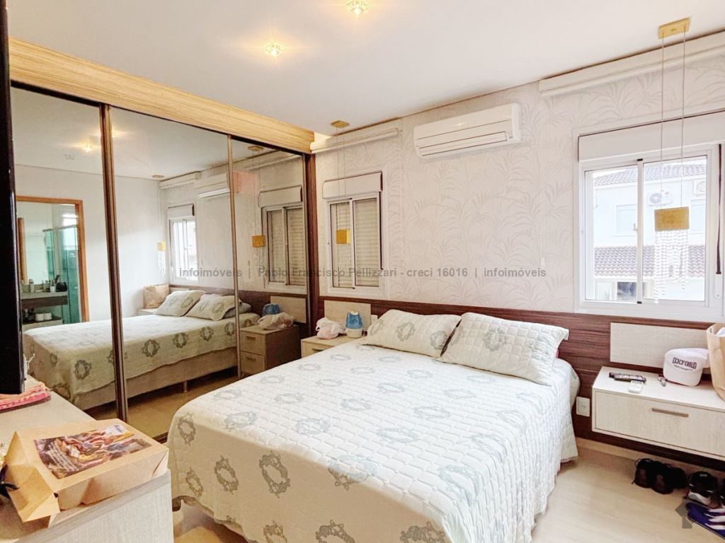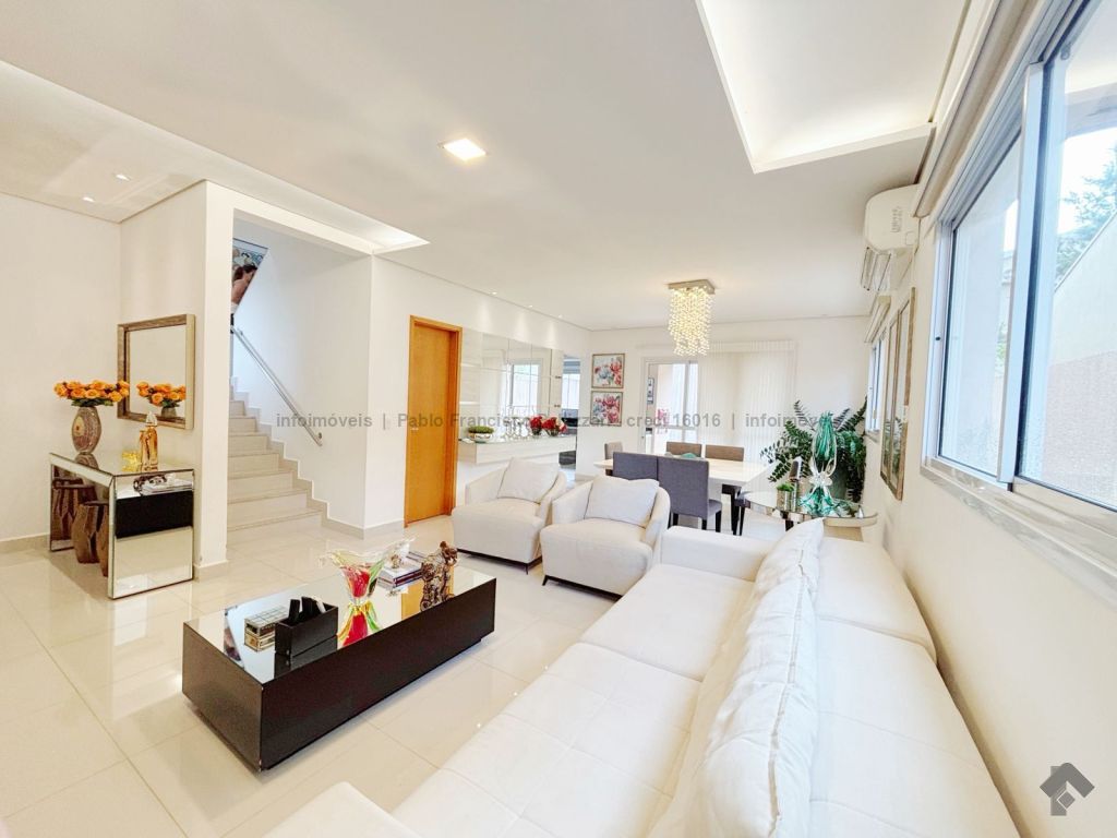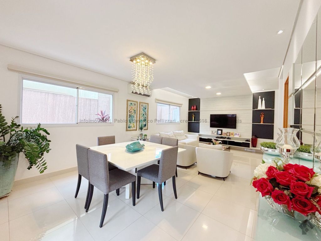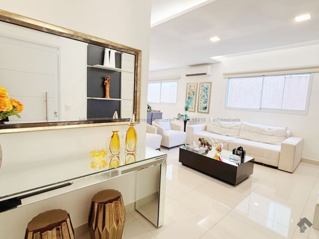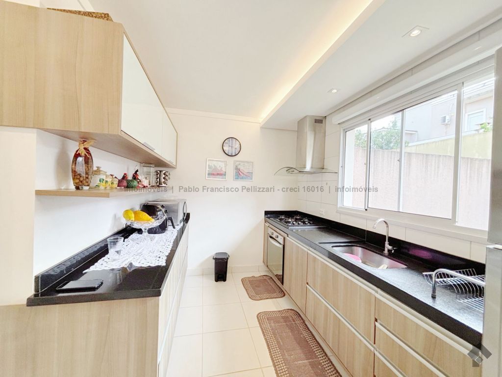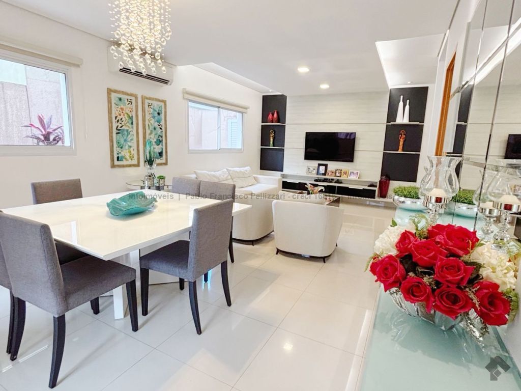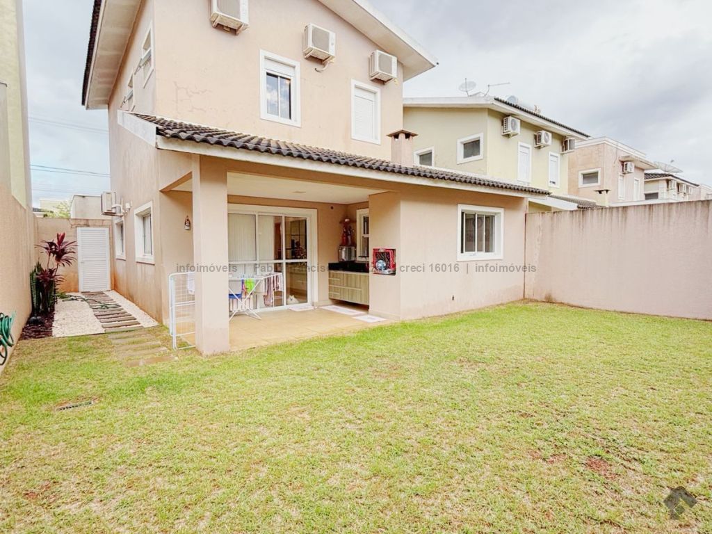 Terreno: 255 m². Área construída: 155 m². Térreo: sala 3 ambientes, lavabo, cozinha planejada, varanda com espaço gourmet e churrasqueira e uma excelente sobra de terreno no fundo para eventuais melhorias. Piso superior: 3 dormitórios, sendo uma suíte, e 1 banheiro social. Toda mobiliada (móveis planejados) e climatizada (condicionadores de ar Fujitsu). Perto da área de lazer e portaria.