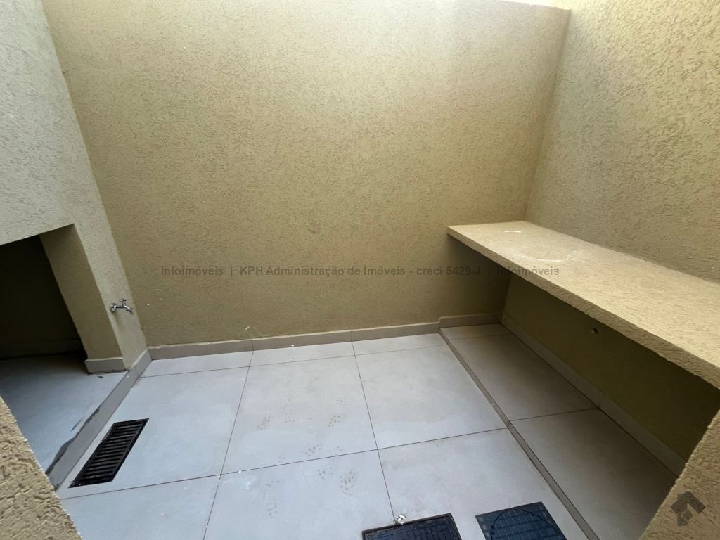 Sobrado. Piso inferior com sala ampla, cozinha, área de serviço, área gourmet aos fundos e amplo quintal. Duas vagas de garagem. No piso superior, dois quartos e uma suíte.