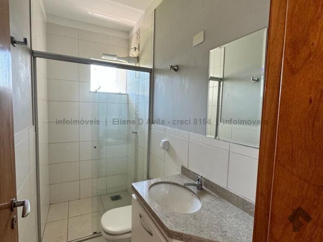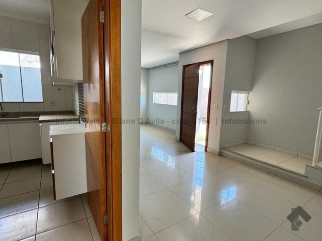 Possui três quartos, sendo uma suíte, banheiro social, sala ampla com sala de jantar, cozinha planejada, garagem para dois carros, churrasqueira, lavabo e lavanderia.
