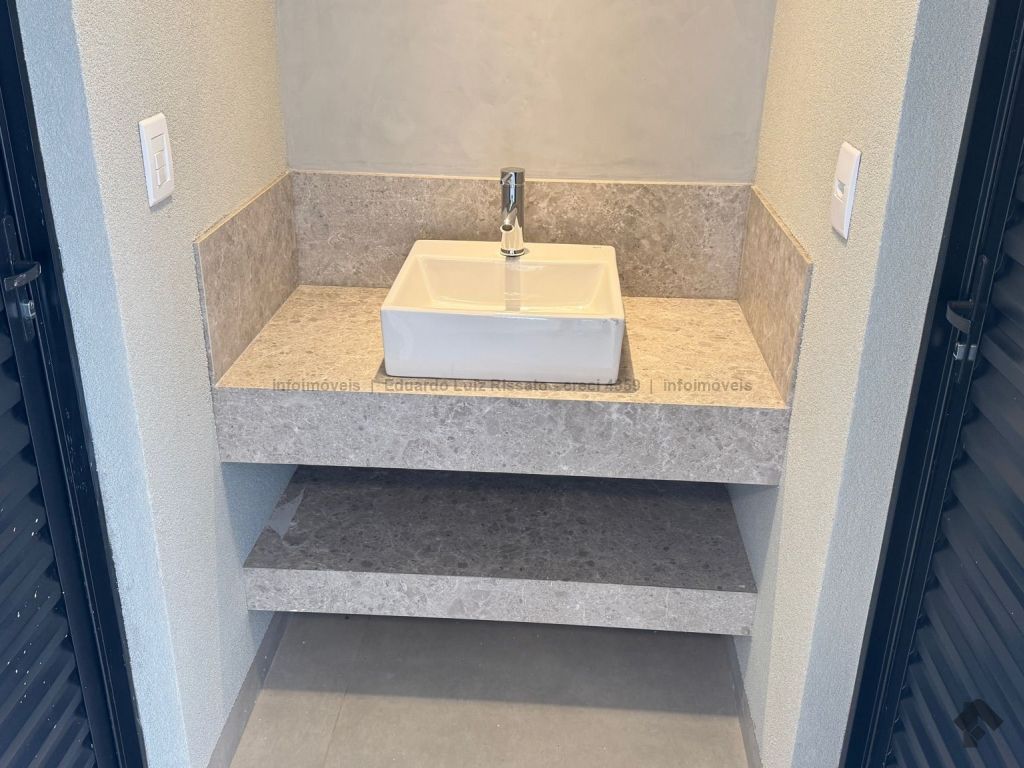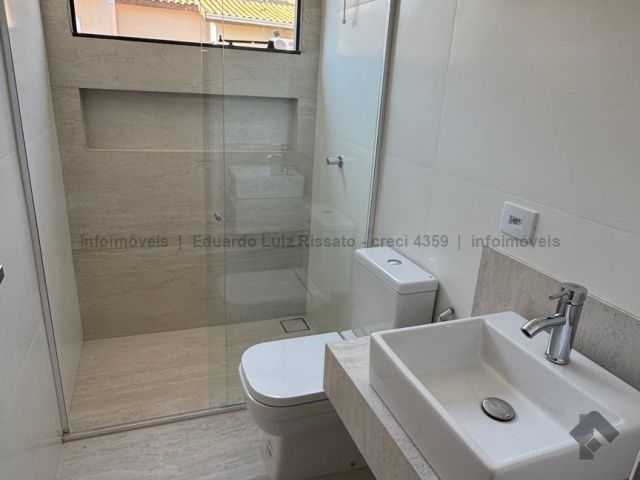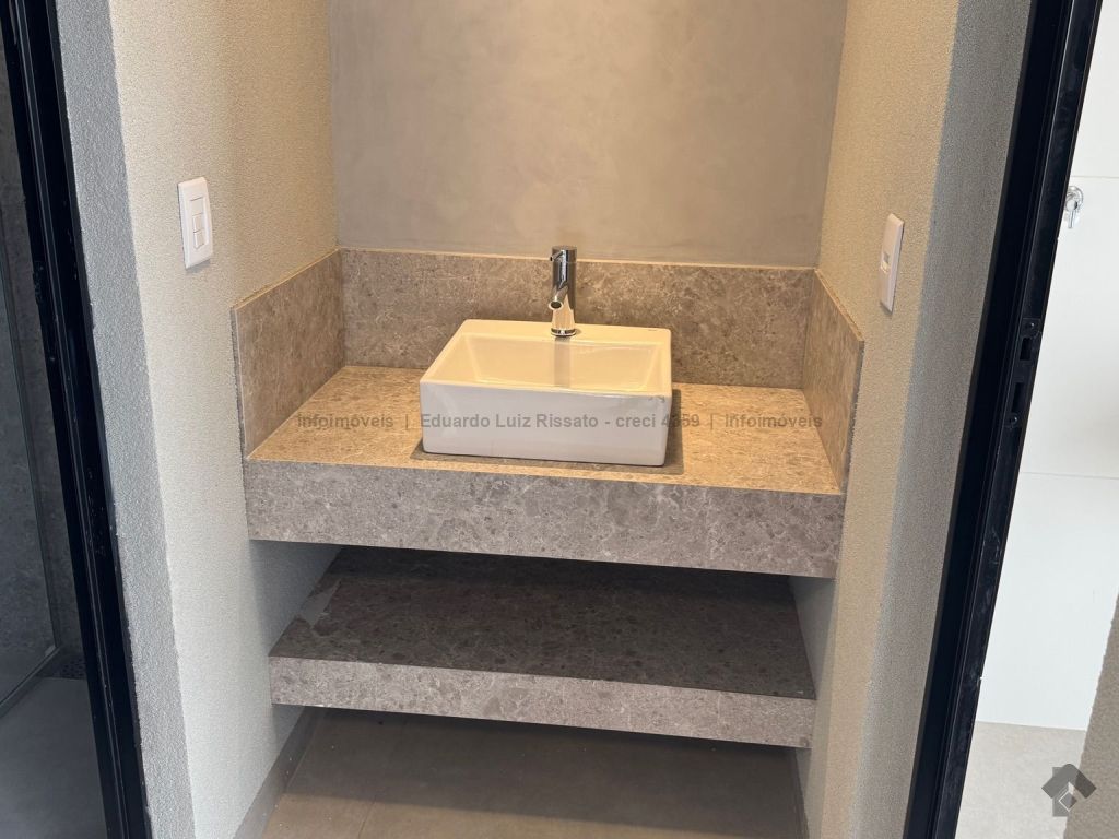 Fino acabamento e recém construído, com garagem para 2 carros, sala para dois ambientes climatizada, lavabo, área gourmet com bancada de granito e banheiro, área de serviço fechada e com porta. No piso superior, 3 suítes, todas climatizadas e box em vidro temperado. Água quente na cozinha e banheiros.