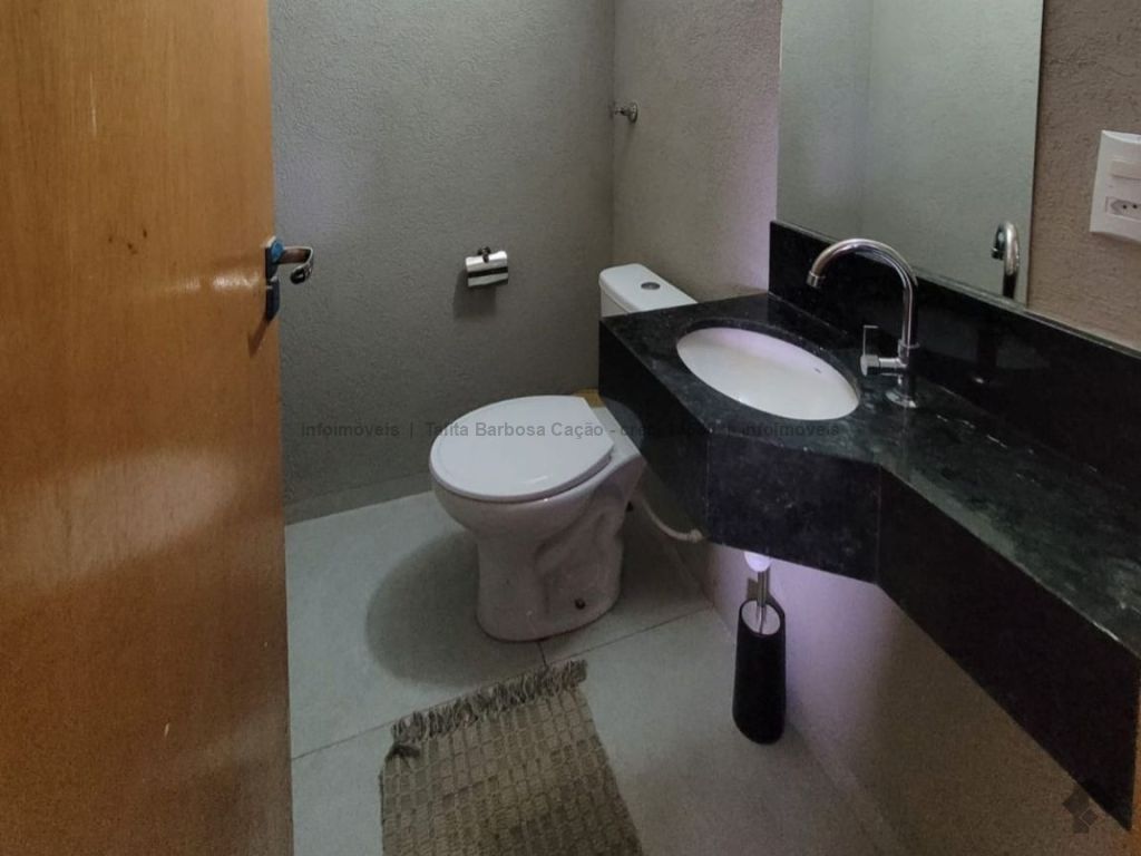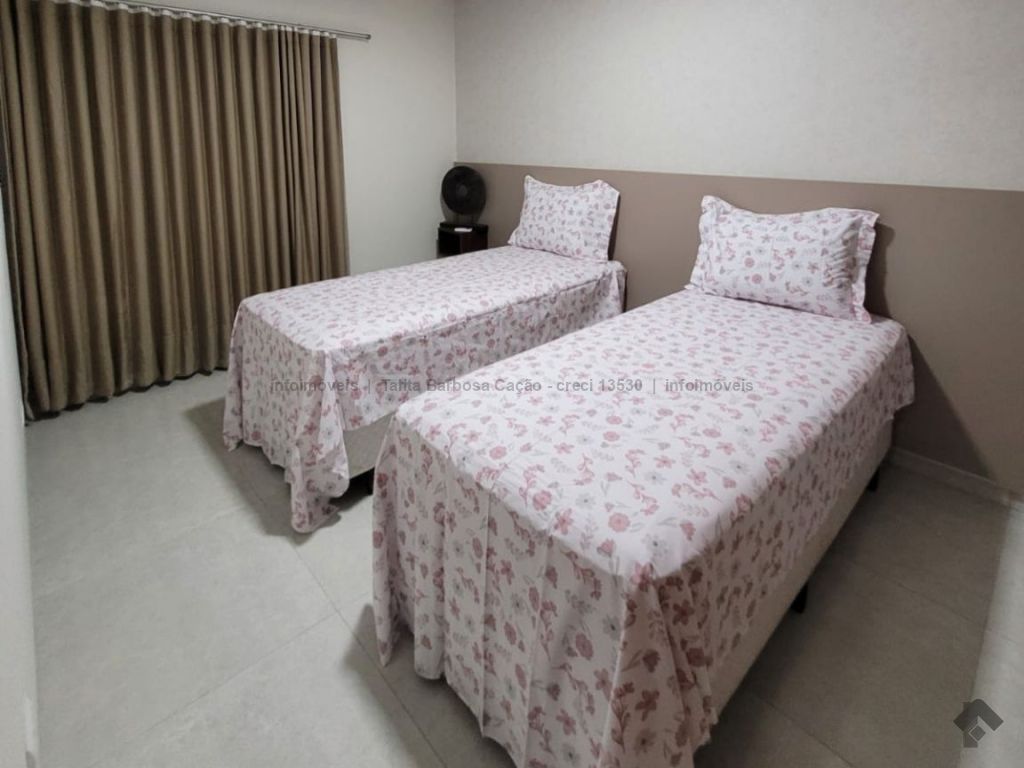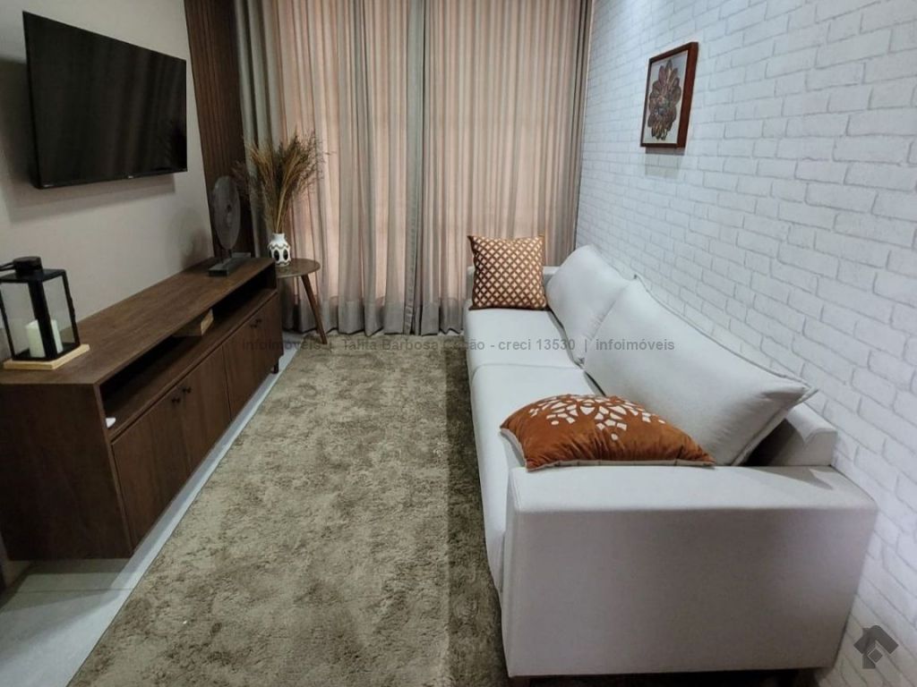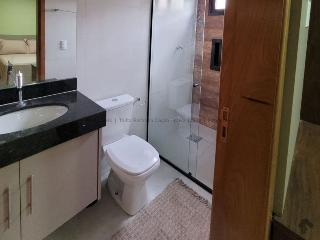 Sobrado mobiliado com móveis de primeira linha, localizado em condomínio seguro. O imóvel tem 3 quartos com ar-condicionado, sendo 1 suíte, lavabo, sala, cozinha, garagem e área externa com churrasqueira.