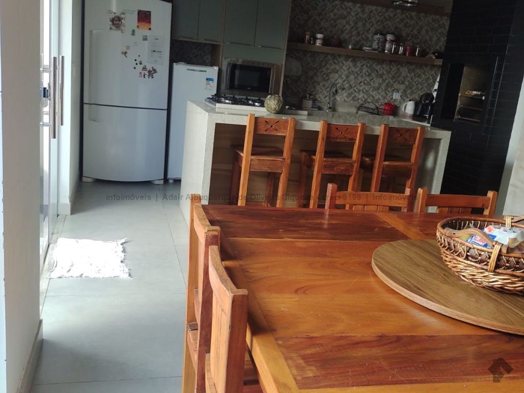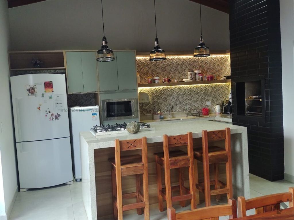 Maravilhoso sobrado em condomínio. No térreo, possui sala ampla, escritório, lavabo, cozinha gourmet com churrasqueira, área de serviço e banheiro social. O piso superior dispõe de uma suíte com sacada e armário planejado, dois quartos com armários planejados e banheiro social. Rico em detalhes. O condomínio conta com salão de festas, piscina e playground. Possui energia solar fotovoltaica no sobrado.
