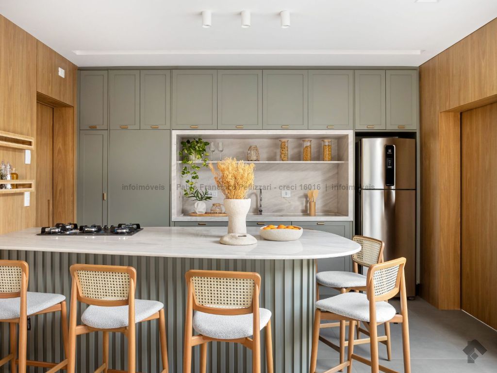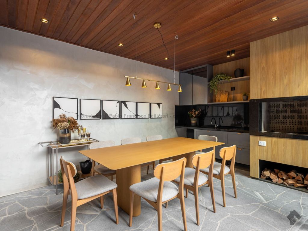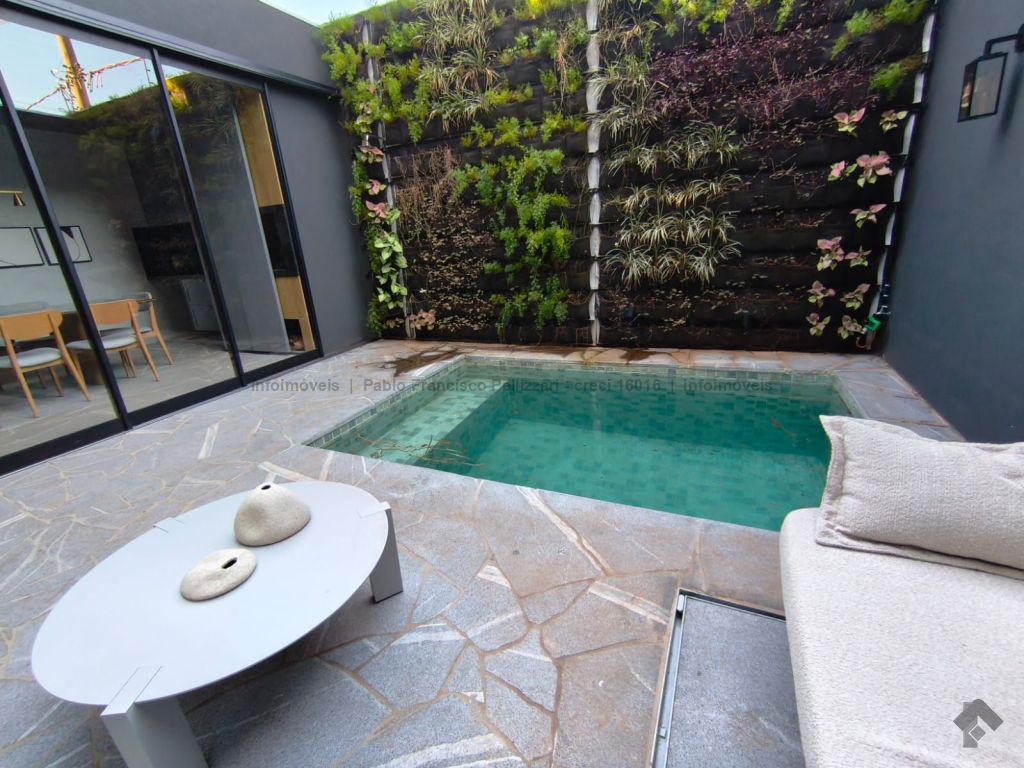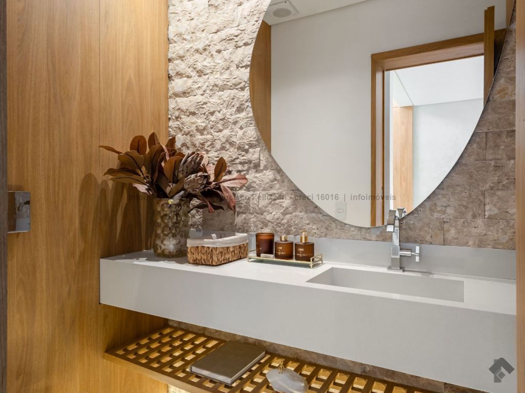 O imóvel conta no térreo com lavabo, ampla sala 2 ambientes, cozinha com área gourmet integrada com churrasqueira, piscina e garagem coberta para 2 veículos. No piso superior, 3 suítes com janelas em esquadrias de alumínio e persianas embutidas automatizadas. Diferenciais do imóvel: fino acabamento (porcelanatos de 1ª linha e portas e janelas em esquadrias de alumínio), localização e todo decorado.