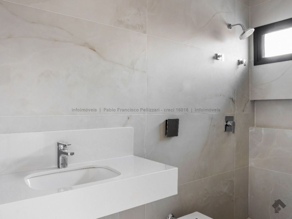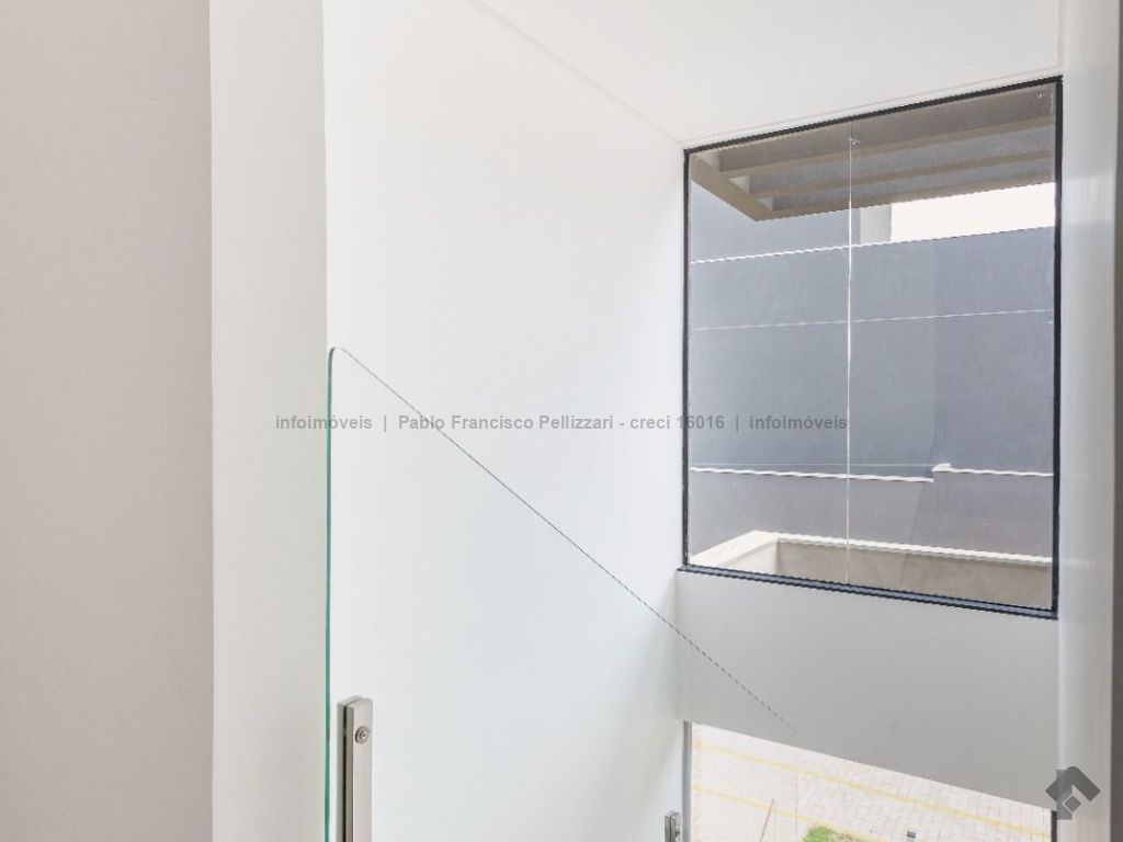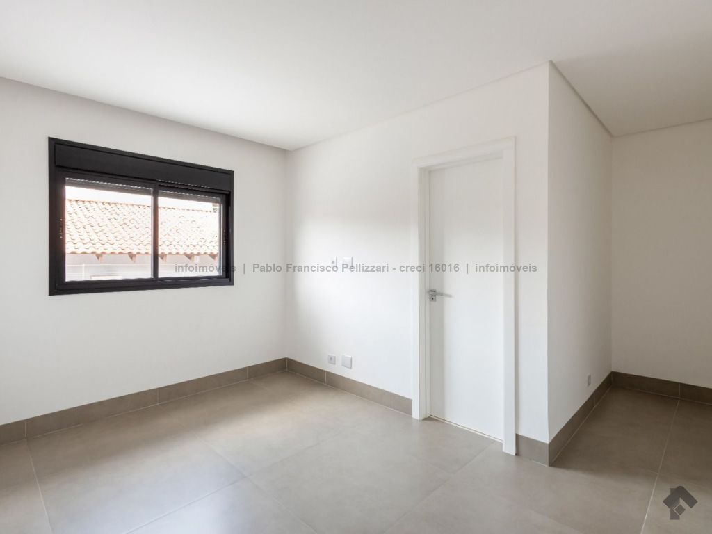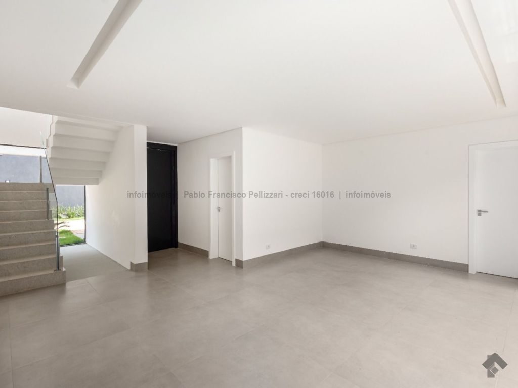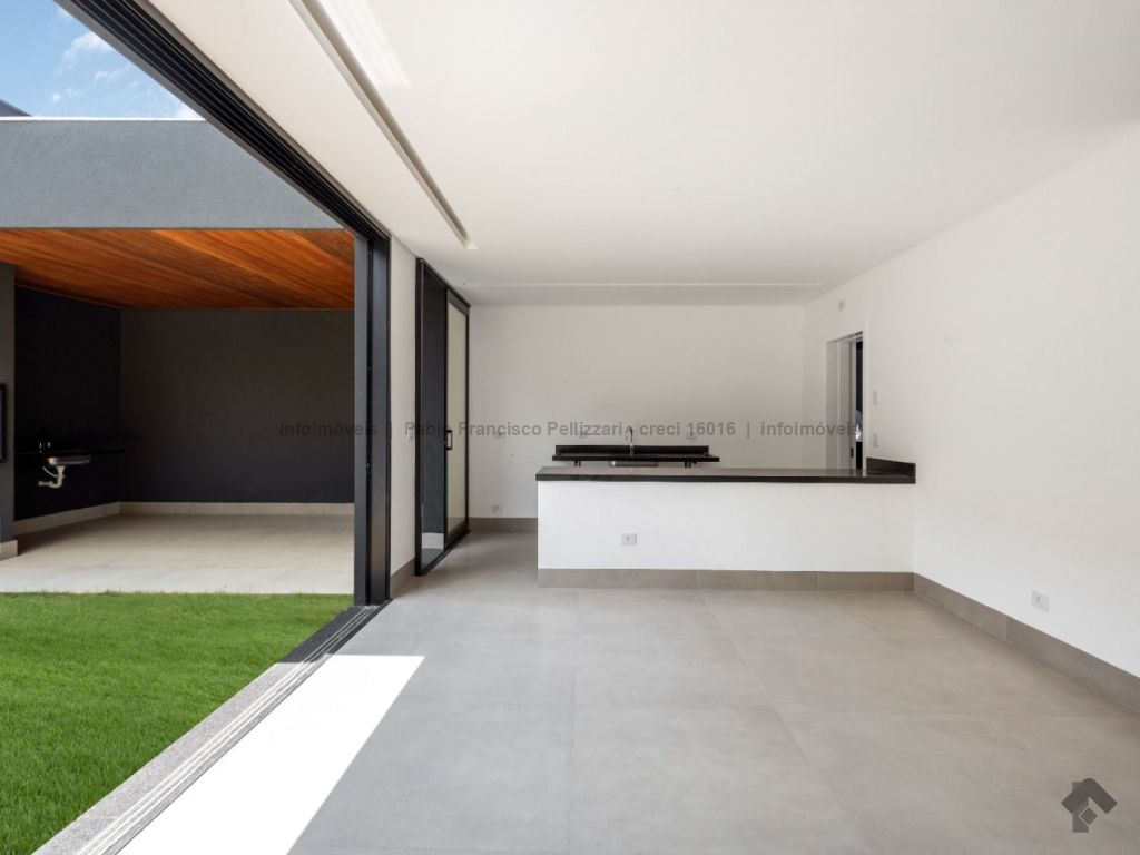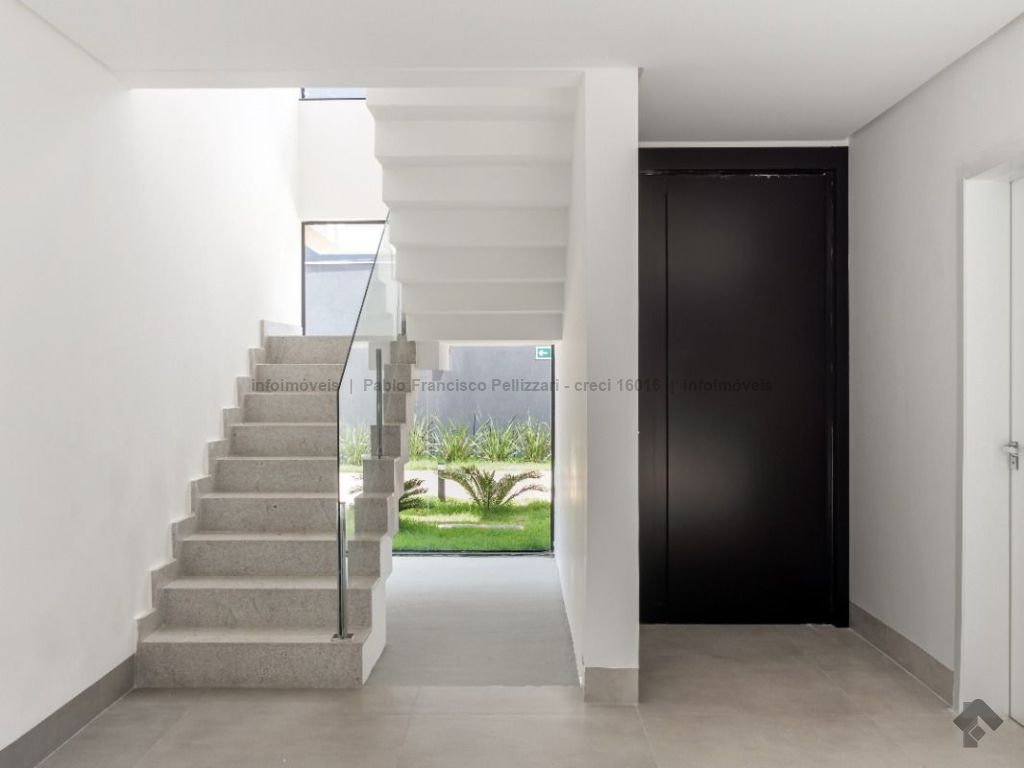 O imóvel conta no térreo com lavabo, ampla sala para 2 ambientes, cozinha com área gourmet integrada com churrasqueira, garagem coberta para 2 veículos. No piso superior, 3 suítes com janelas em esquadrias de alumínio e persianas embutidas automatizadas. Diferenciais do imóvel: fino acabamento, porcelanatos de 1ª linha e portas e janelas em esquadrias de alumínio, localização excelente.