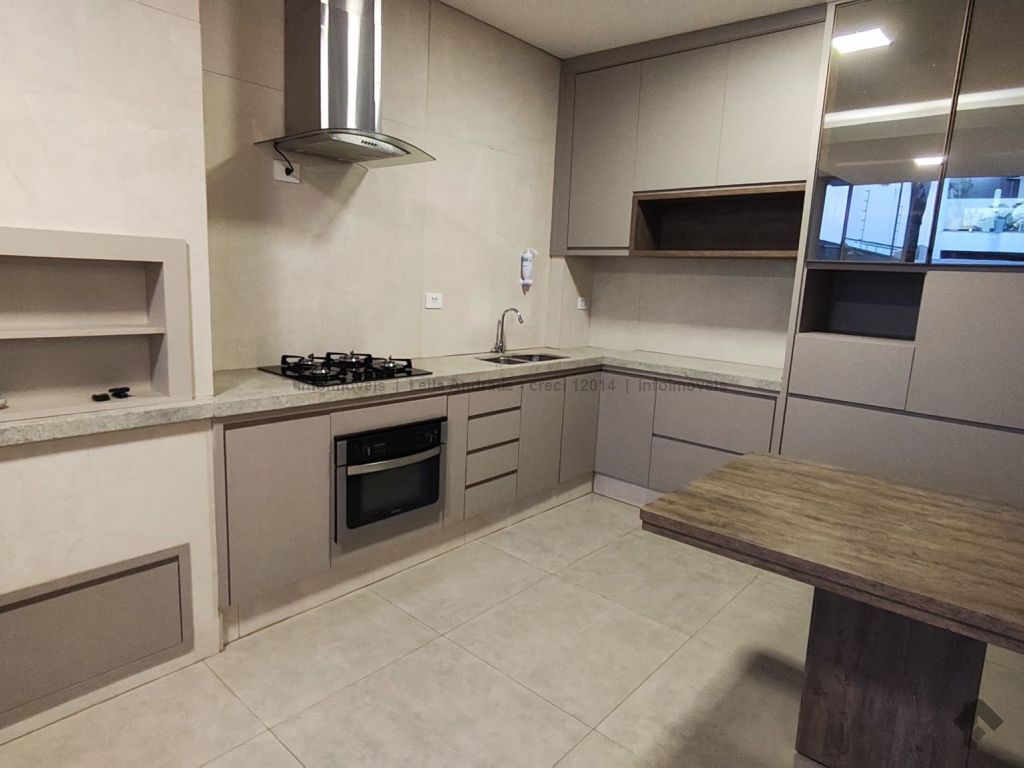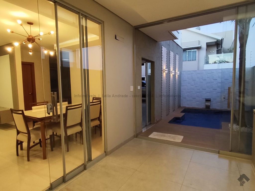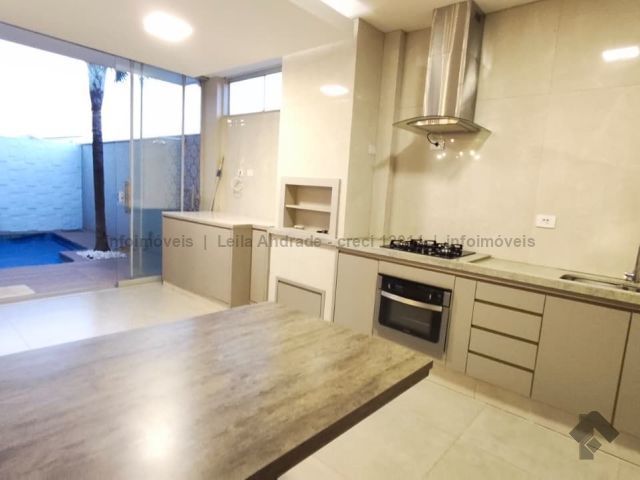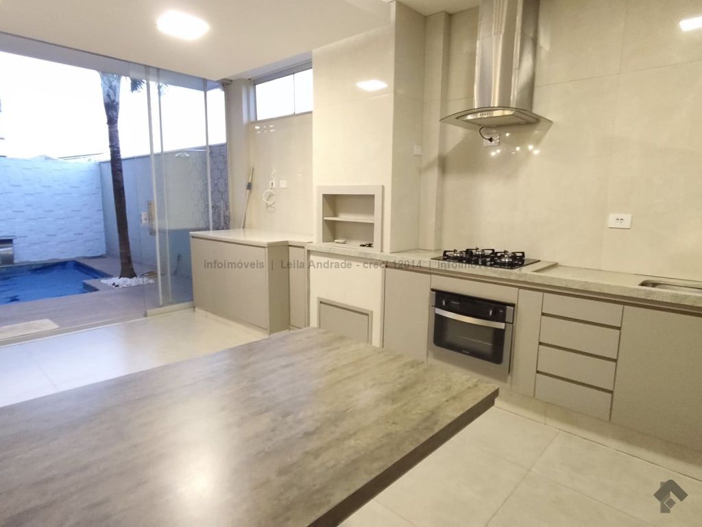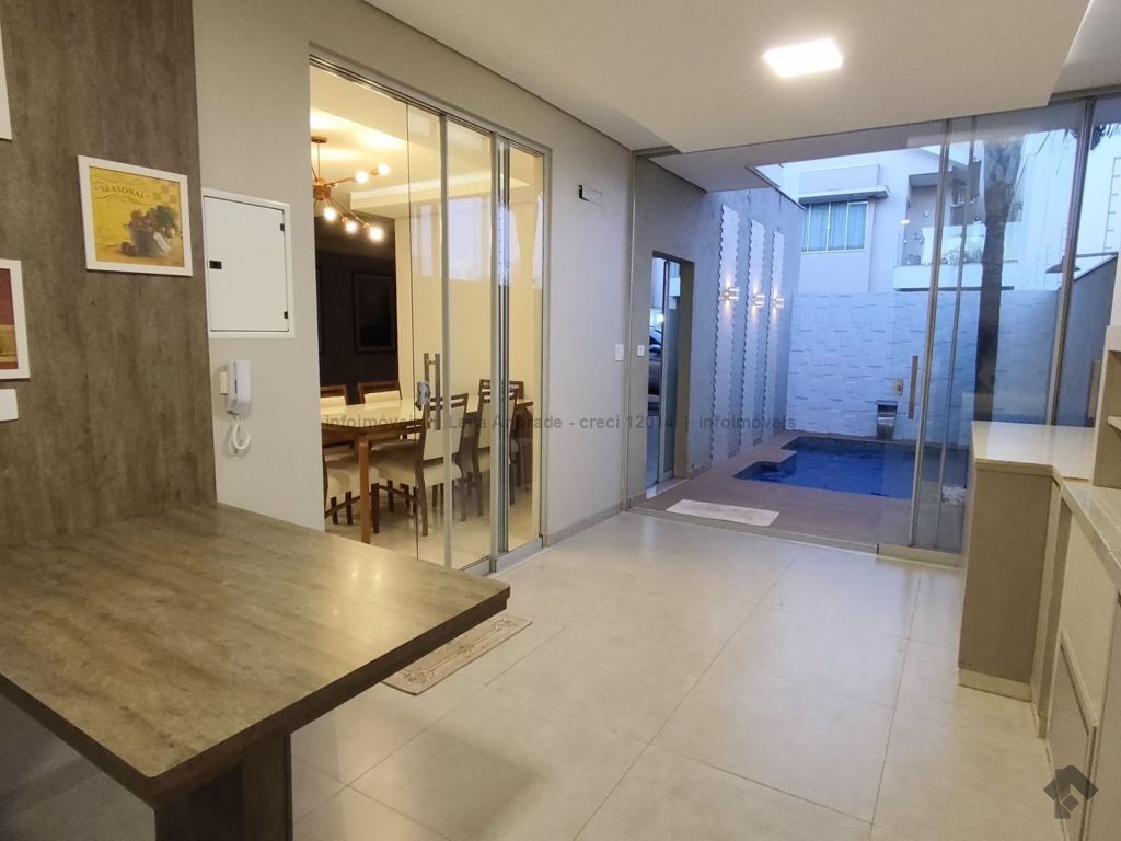 Sobrado atemporal, mobiliado, pavimento térreo: garagem para duas vagas, sendo uma coberta, living de entrada, sala de jantar, sala de TV, escada de acesso, lavabo, acesso para cozinha gourmet com churrasqueira, área de serviço, banheiro de serviço, depósito, despensa e uma piscina aquecida com hidromassagem.