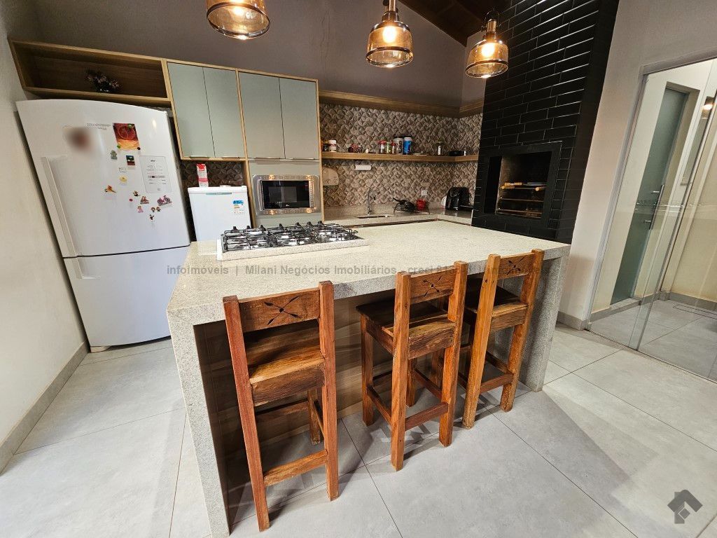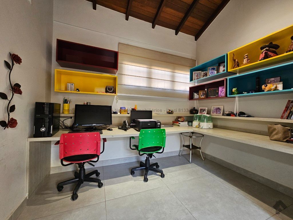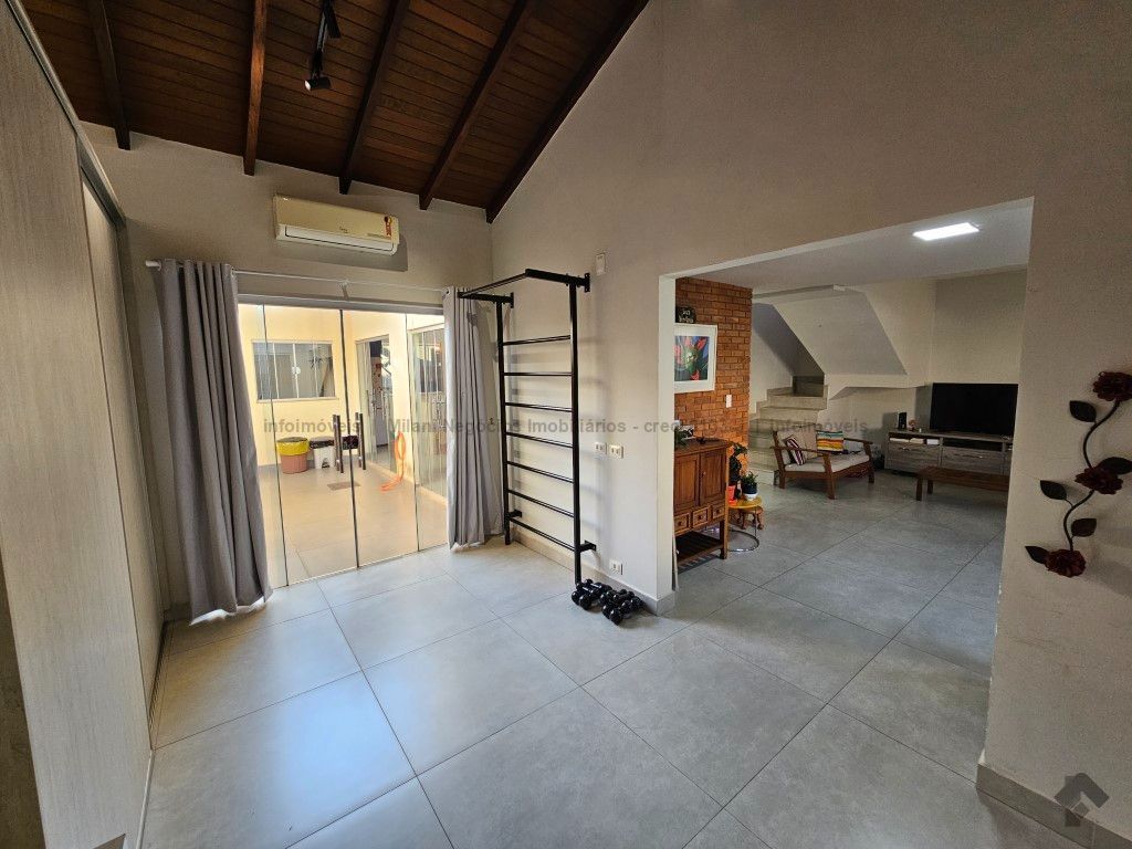 Sobrado contendo living dois ambientes, lavabo com armários planejados, escritório, cozinha com armários planejados integrada ao espaço gourmet com churrasqueira, área de serviço com armários planejados, banheiro de serviço, depósito, 02 quartos com armários planejados, roupeiro, 01 suíte com armários planejados, banheiro social, sacada. Vagas de garagem, o condomínio comporta espaço para dois carros à frente do imóvel.