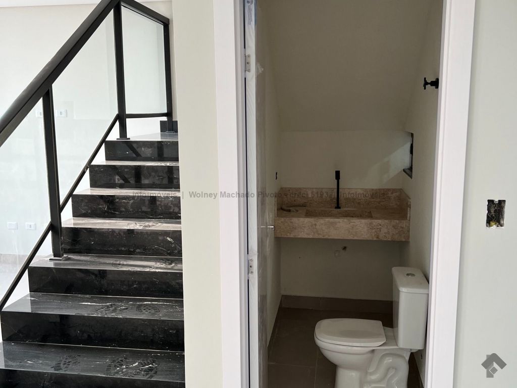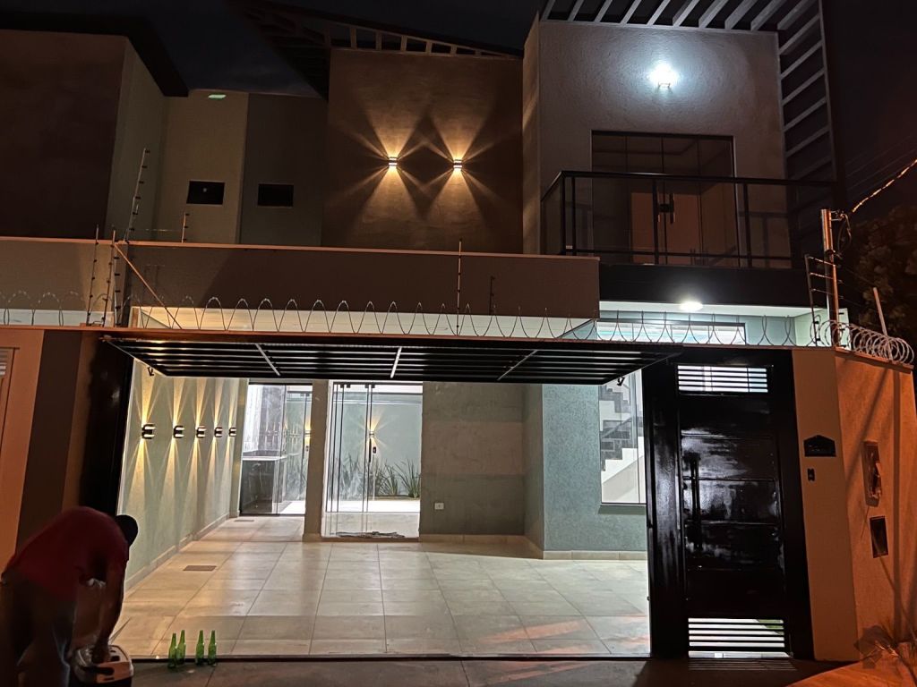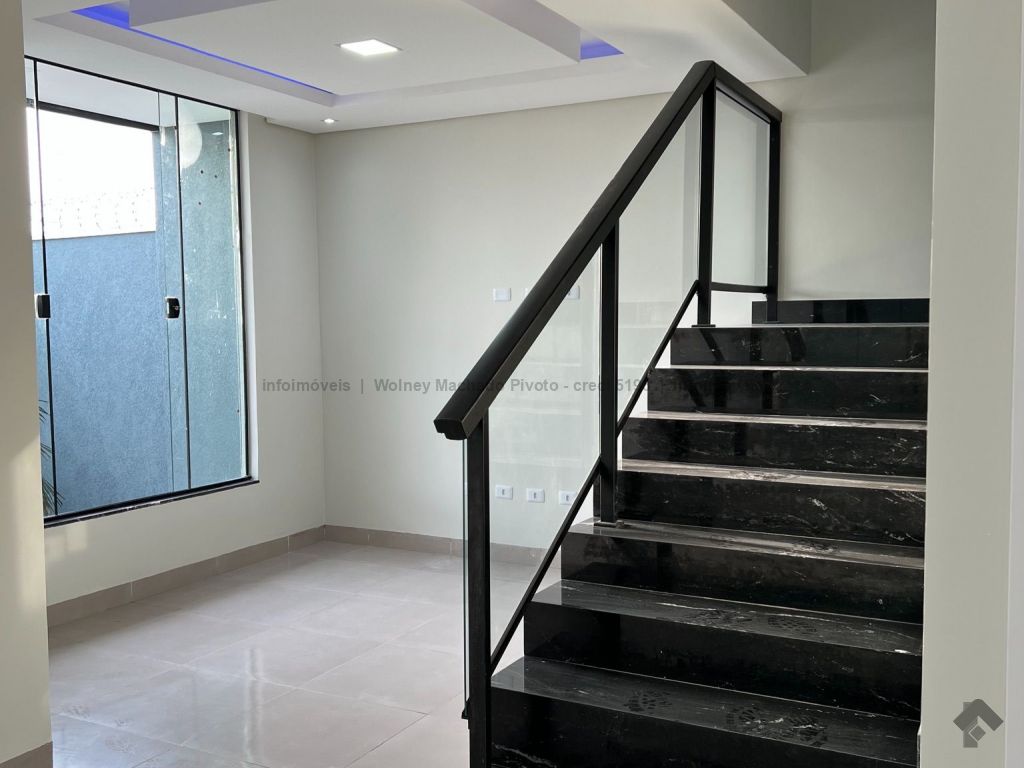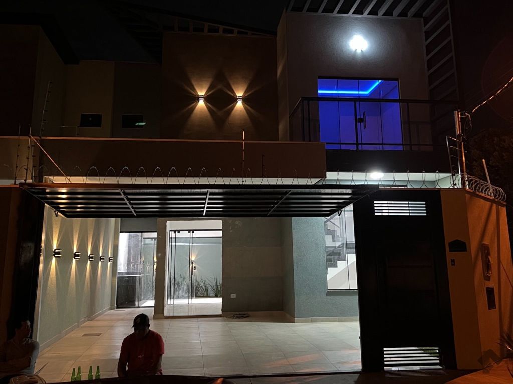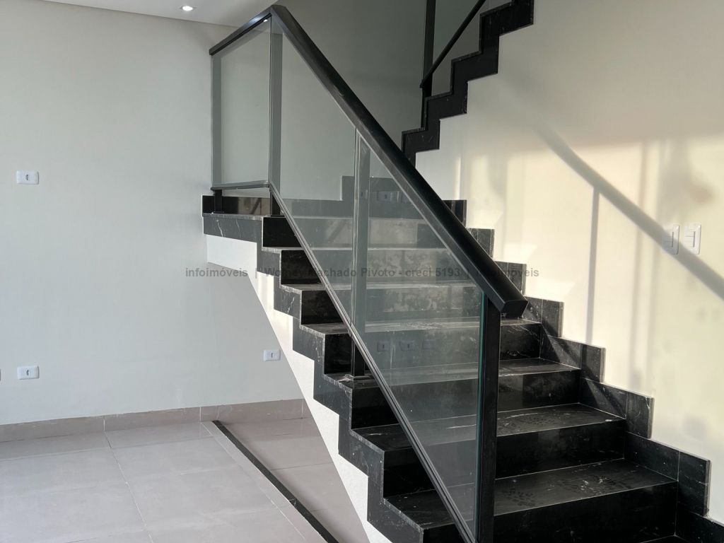 Finíssimo acabamento, escada toda revestida no granito preto via láctea e com iluminação, espaço gourmet integrado com a cozinha.