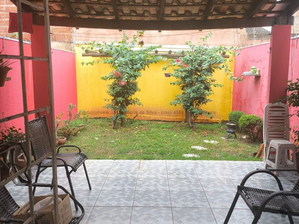 Sobrado de 2 quartos, 2 banheiros, sala, cozinha, garagem coberta para 2 veículos, varanda nos fundos, jardim.