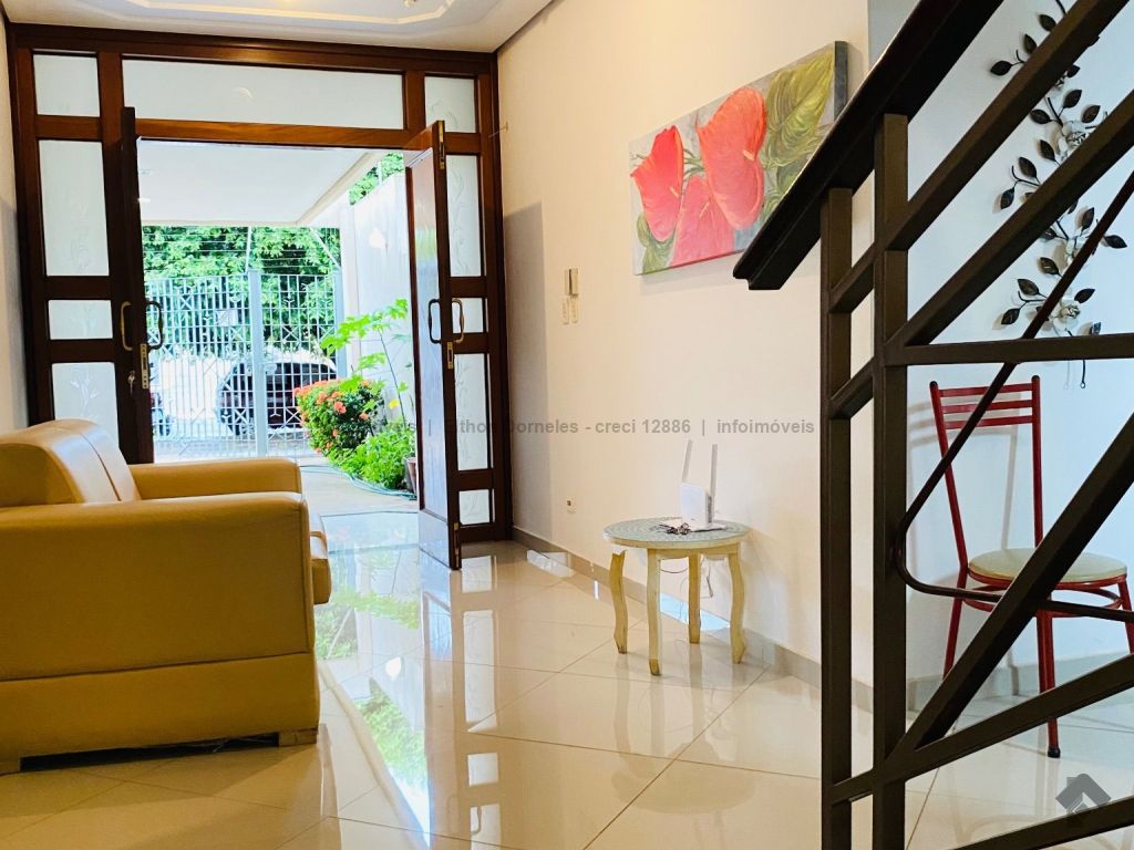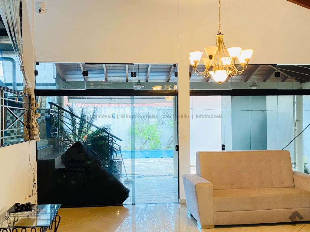 Sobrado de alto padrão com subsolo e piscina. 3 suítes, incluindo a master com banheira e closet. Ambientes integrados: sala, cozinha, jantar e área gourmet envidraçada. Subsolo com sala de estar, piscina e banheiro. Garagem ampla e sacada com vista privilegiada para o sol nascente.