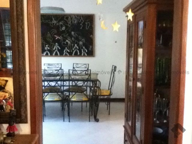 Pavimento superior: 01 escadaria, 01 hall, 01 sala íntima, apto com a/e e sacada, 02 quartos, wc com gabinete. Pavimento térreo: garagem, hall, lavabo, sala de estar, sala jantar, copa, cozinha com a/e, despensa, área de serviço, quarto de empregado, churrasqueira, jardim com pergolado e piscina.