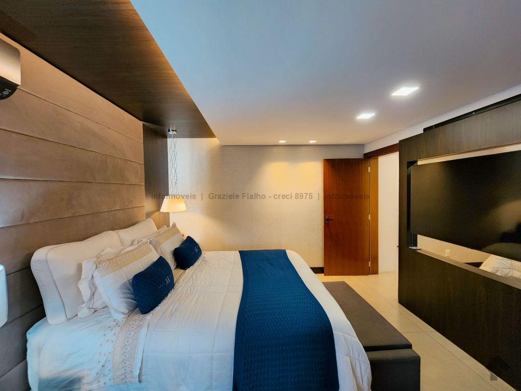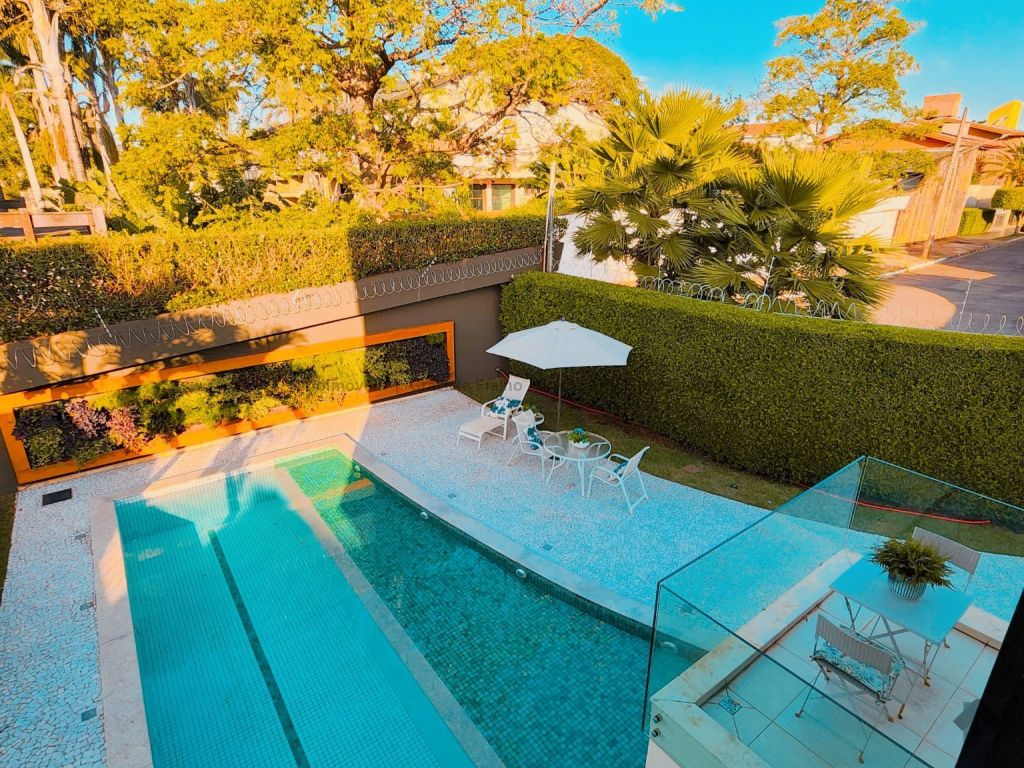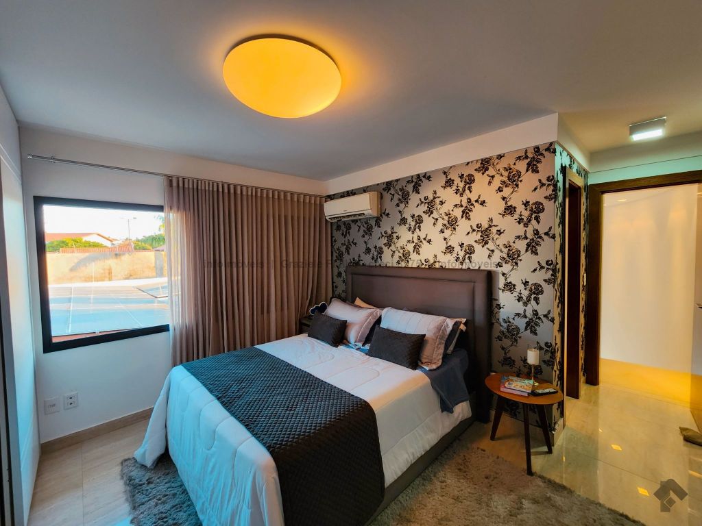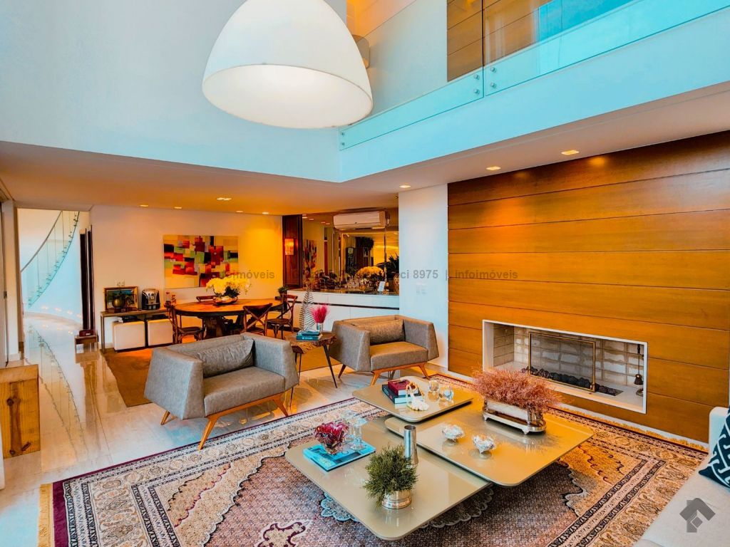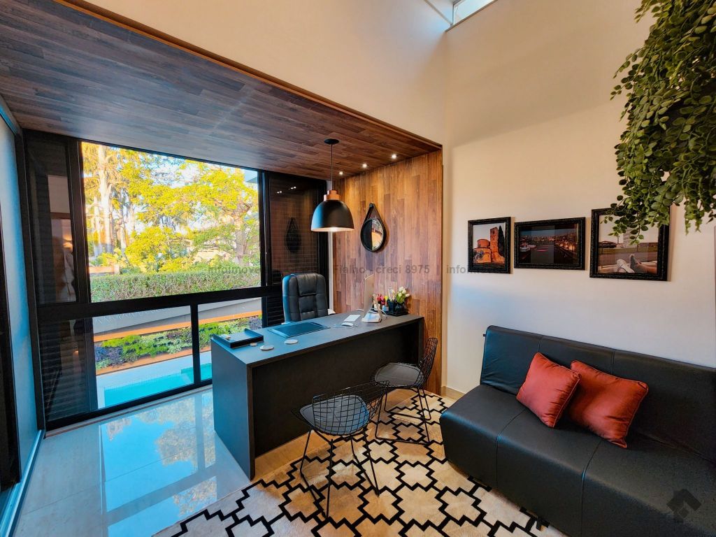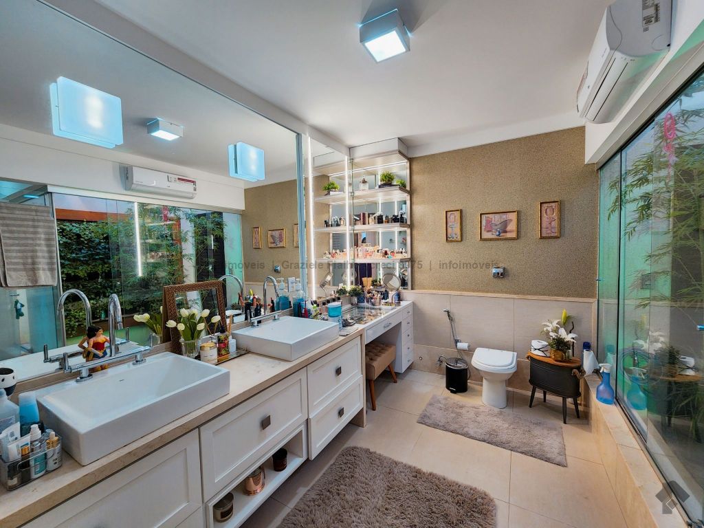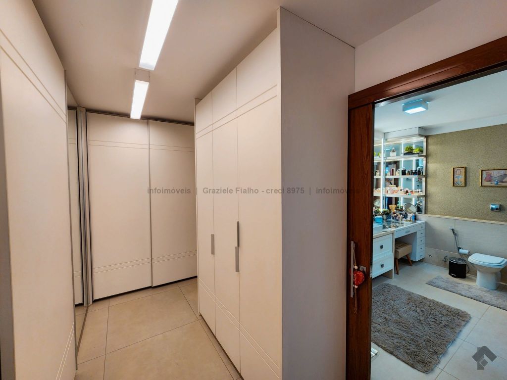 O imóvel chama atenção não só pelo tamanho, más também pela Imponente fachada e pelos modernos traços retos e a integração dos ambientes, suavizada pelo longo espelho d’água que guiam todos que chegam até a entrada principal. Piso térreo: ampla sala 3 ambientes, lareira, lavabo, adega fechada, 1 suíte com closet, o banheiro ainda conta com um lindo jardim de inverno, cozinha totalmente planejada, despensa, área de serviço, banheiro externo e canil. Piso superior: conta com 2 suítes ricas em detalhes e acabamento, sendo uma delas com vista para piscina. Ampla varanda gourmet totalmente planejada e decorada a madeira ganhou destaque deixando o ambiente mais aconchegante. Sistema de som integrado, piscina.