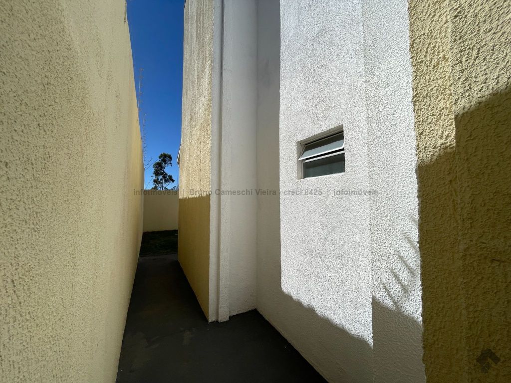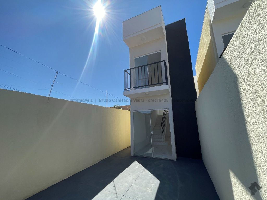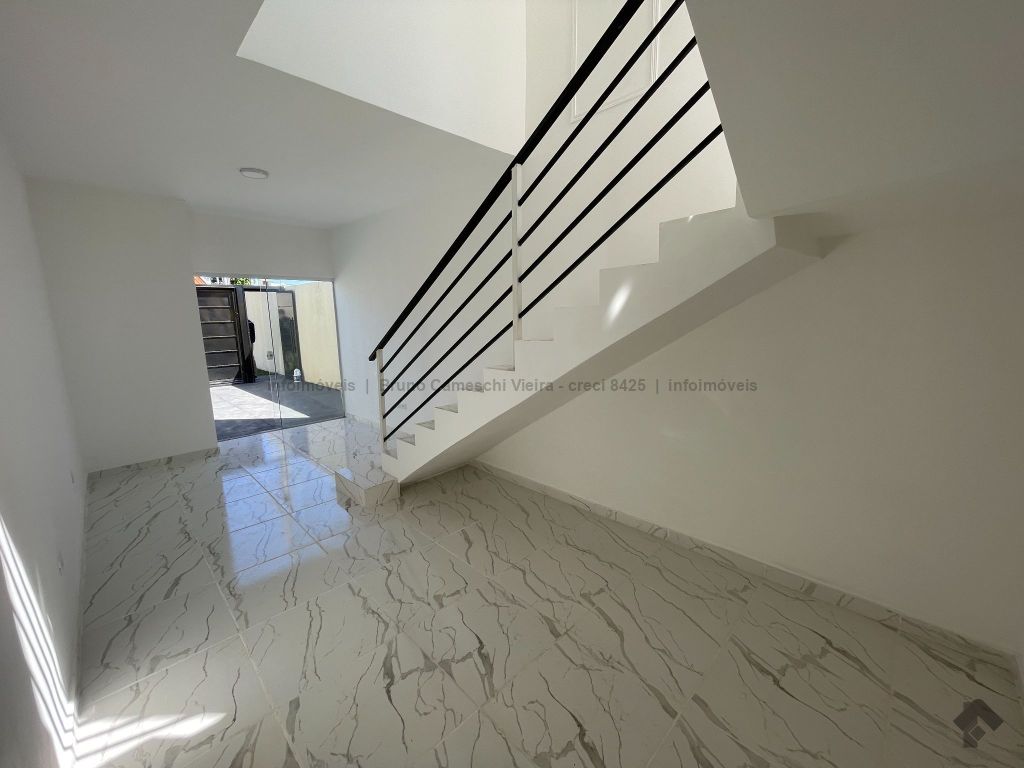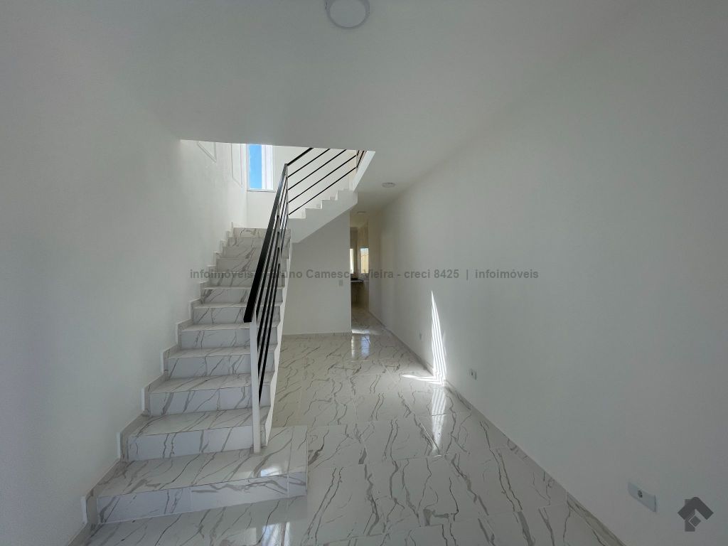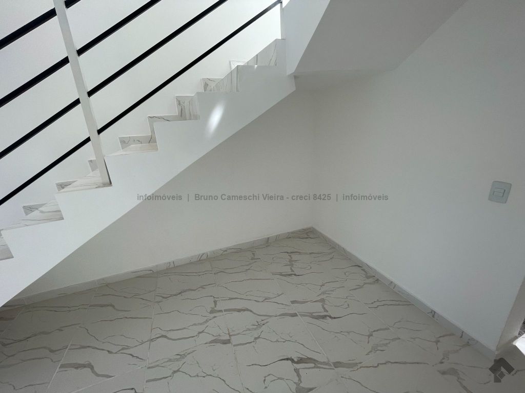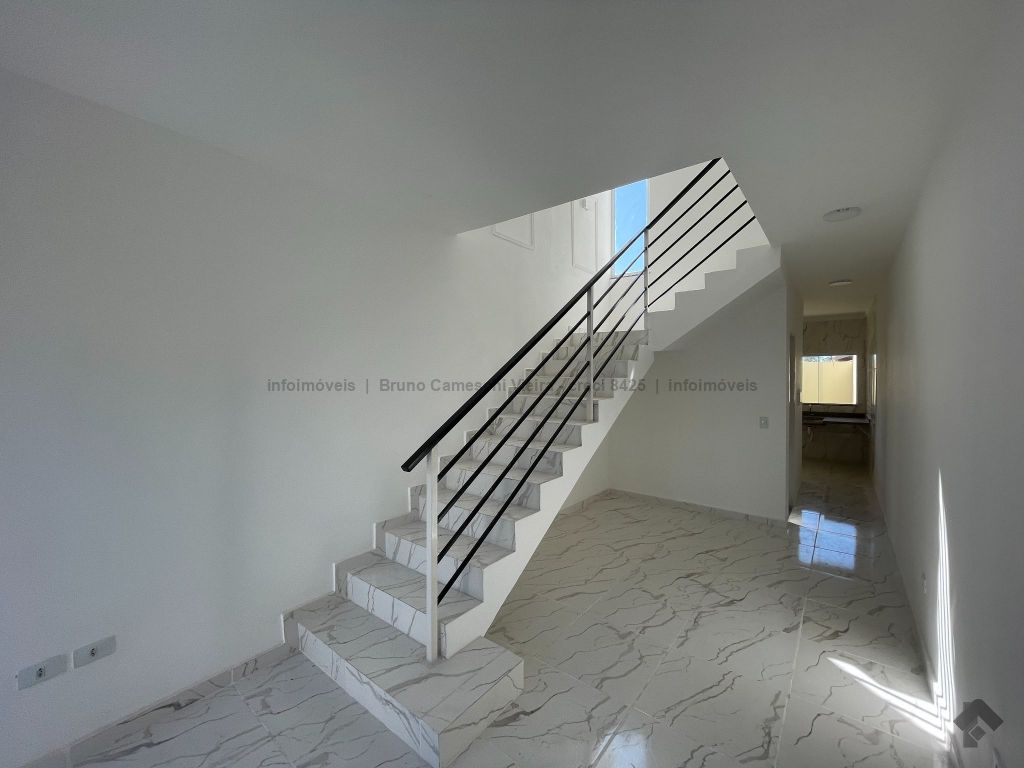Possui 2 pavimentos, 1 banheiro social no térreo, sala para 2 ambientes, espaço livre embaixo da escada para construção de barzinho ou home-office, no piso superior 2 quartos, sendo 1 deles com sacada, 1 cozinha fechada, espaço de garagem para 1 carro e espaço nos fundos para construção de área gourmet ou piscina.