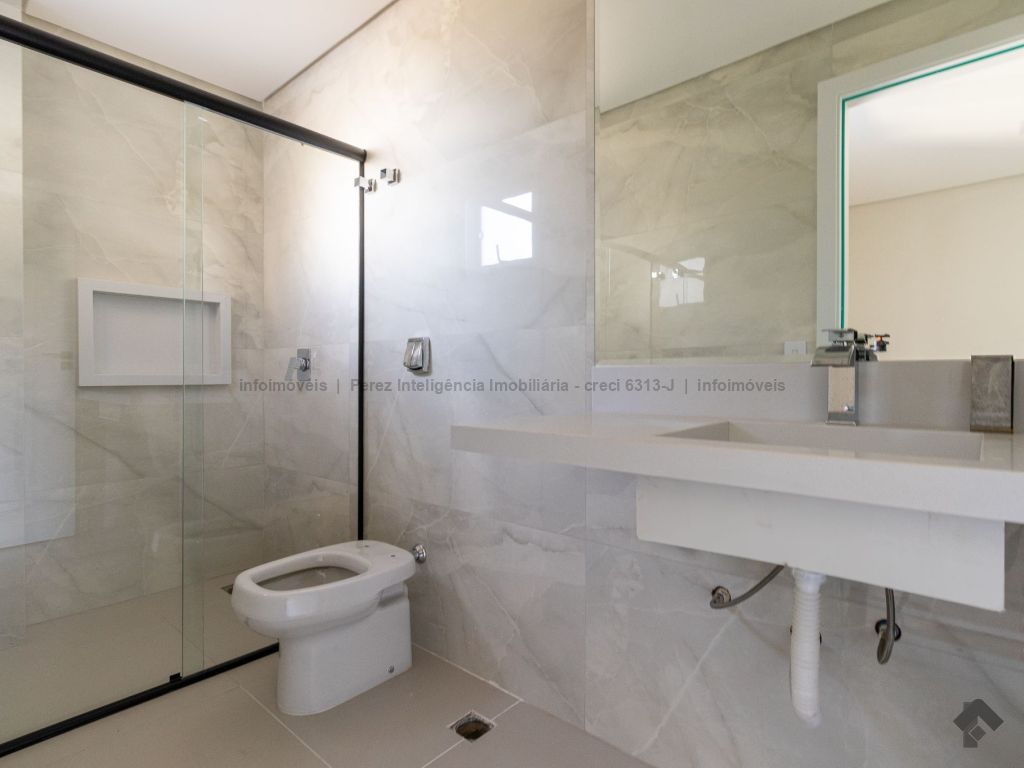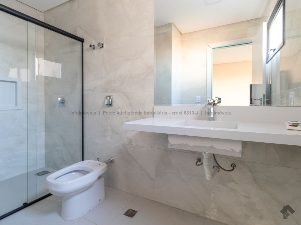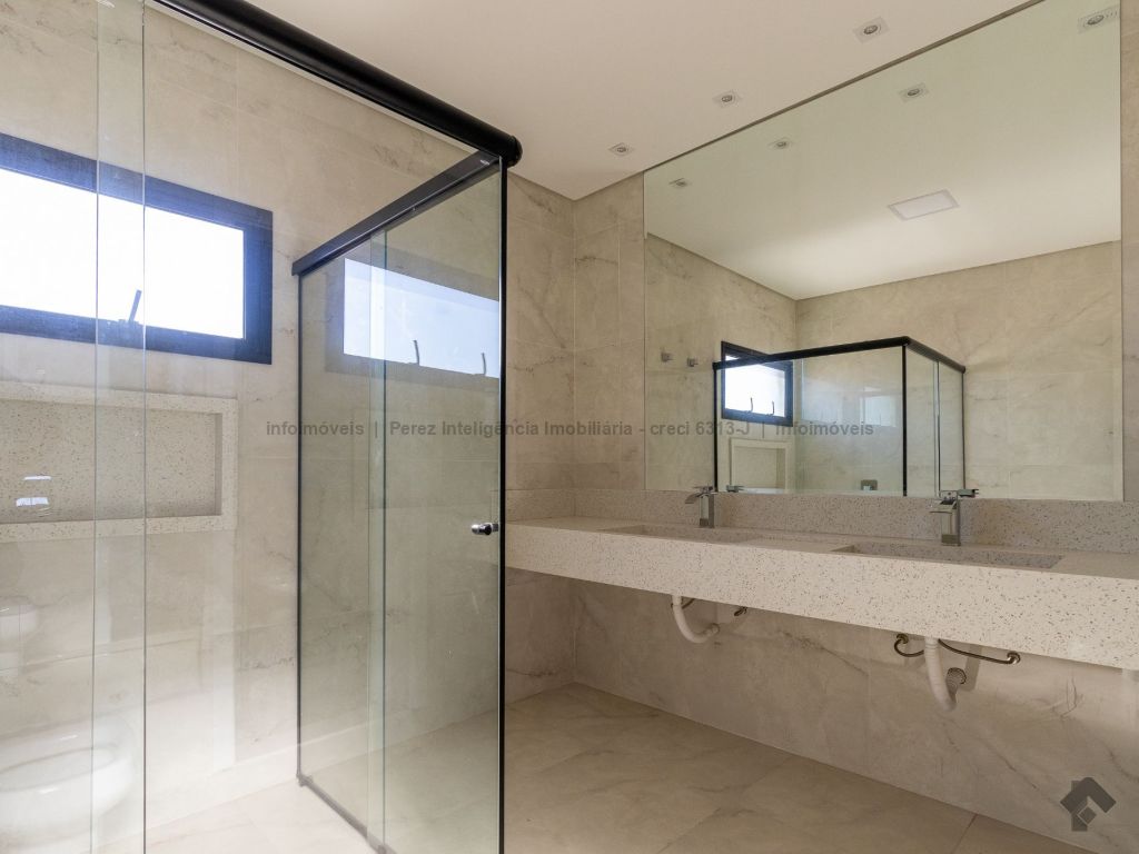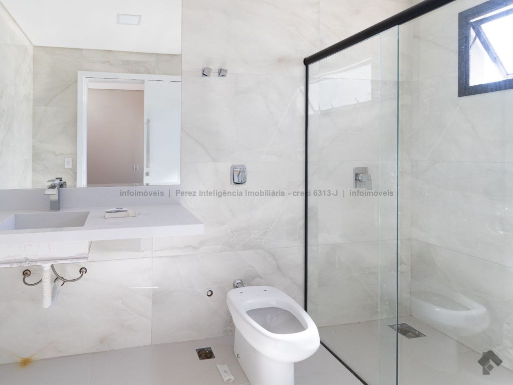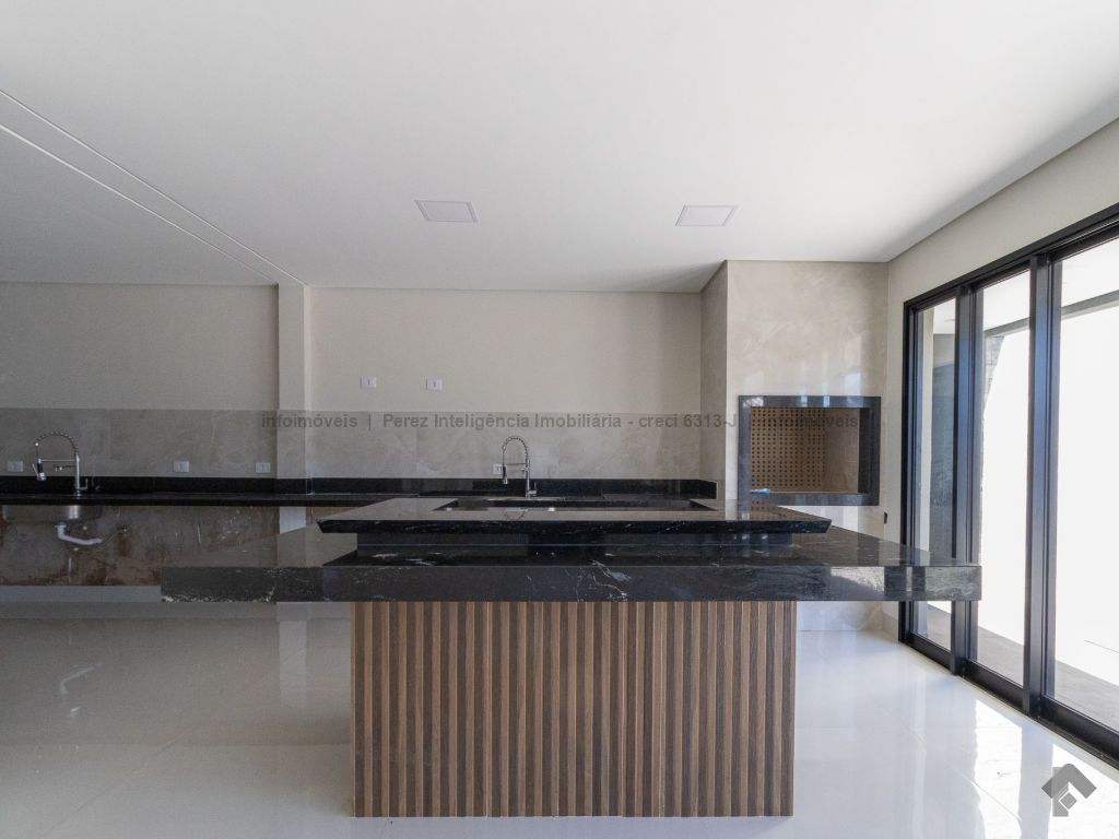 Sobrado de alto padrão com 392,37 m² de área construída e terreno de 525,00 m². Piso inferior: uma sala de estar, um lavabo com revestimento em ônix natural, uma sala de TV, uma sala de jantar, uma cozinha com bancadas em preto São Gabriel, uma suíte, uma área de serviço ampla e prática, um banheiro de serviço e um jardim de inverno. Piso superior: quatro suítes, sendo uma suíte master com closet e banheiros em quartzo Stellar branco, três sacadas. Área externa e lazer: uma varanda ampla e coberta, uma área gourmet, uma piscina, uma piscina infantil aquecida, um banheiro externo, quatro vagas de garagem cobertas.