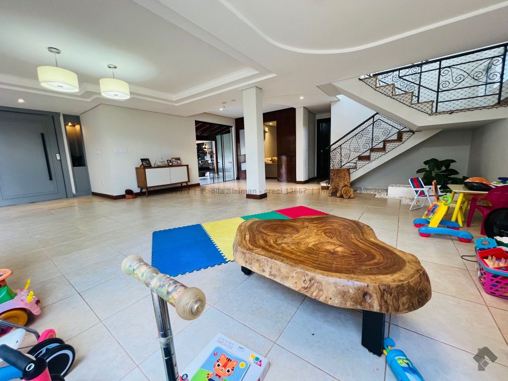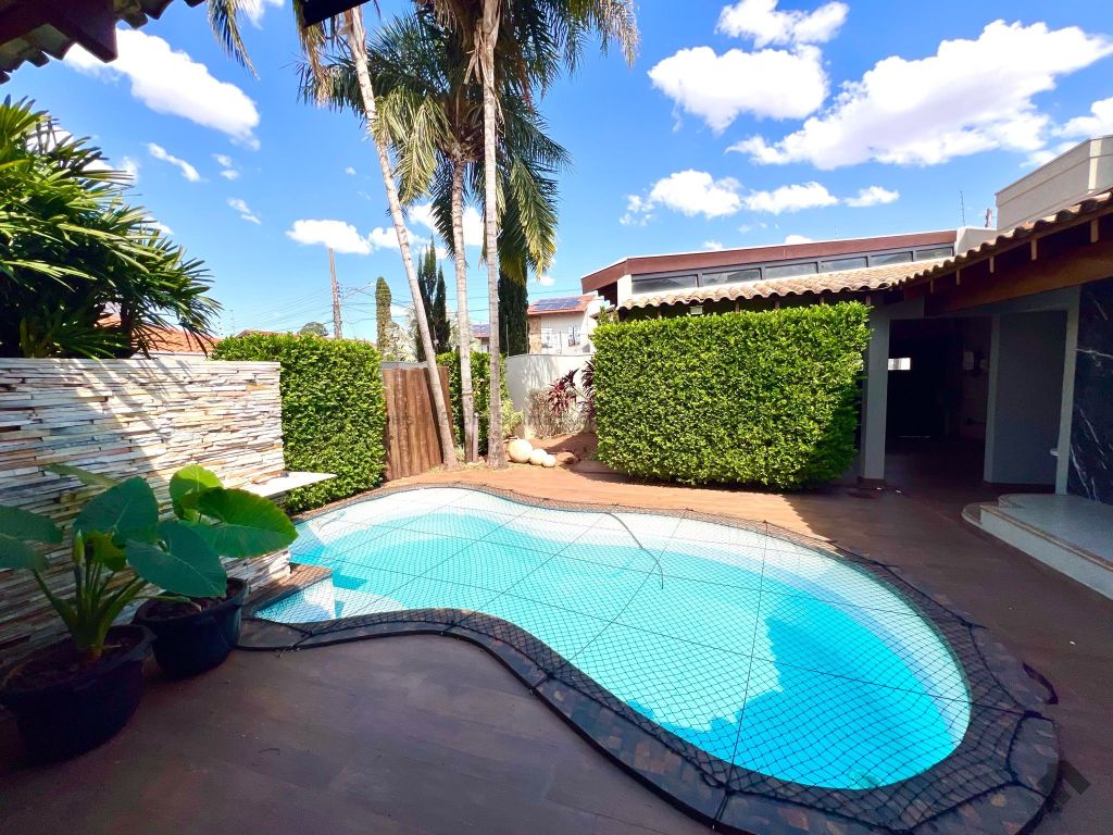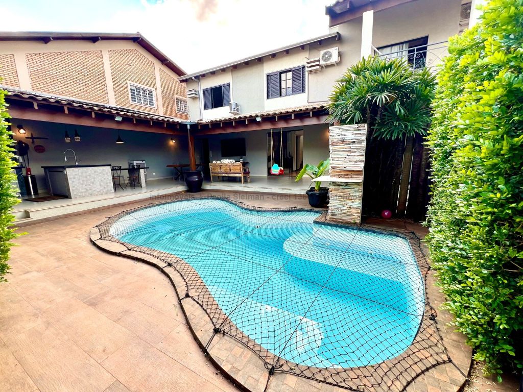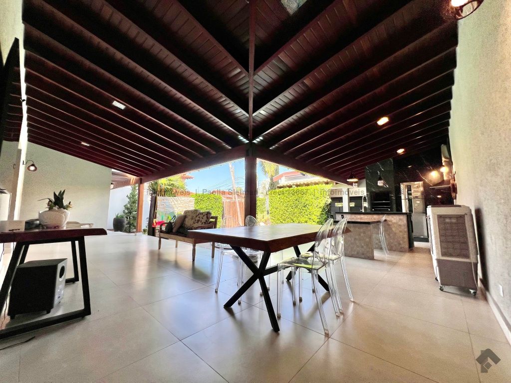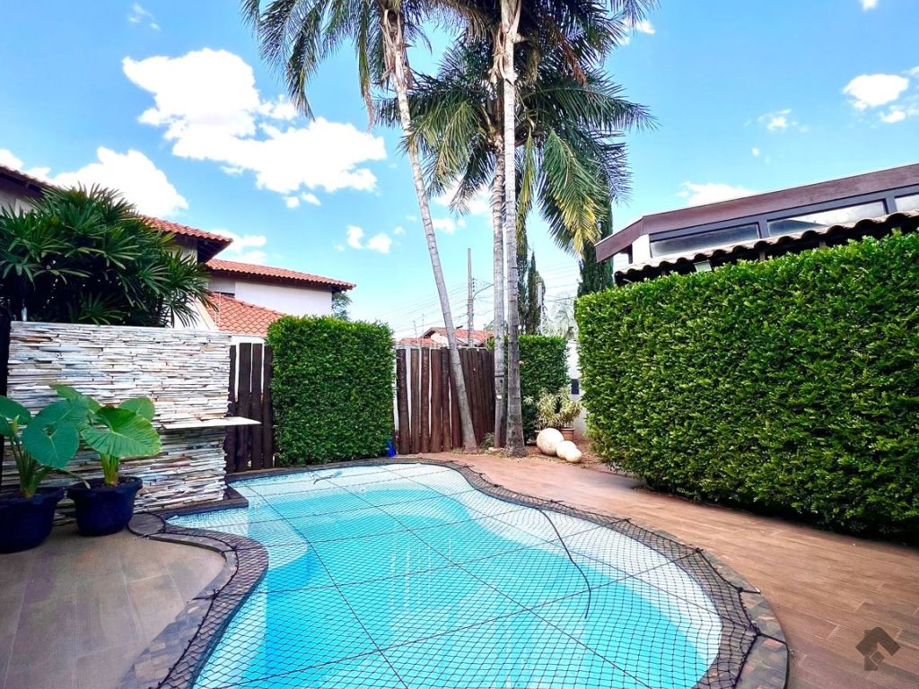 Casa ampla e muito aconchegante, perfeita para quem busca conforto e lazer. Área de lazer incrível: piscina grande, churrasqueira com bancada em ilha, coqueiros, jardim e espaço verde delicioso, além de área coberta para receber em qualquer ocasião. Salas espaçosas: sala principal para até 4 ambientes e sala de TV. Cozinha planejada com armários, lavanderia ampla, quarto extra e edícula com banheiro. Parte superior: 2 suítes, sendo 1 master com closet e hidromassagem, além de 2 quartos com armários e banheiro social. Diferenciais: lavabo, edícula e ótima distribuição dos ambientes.