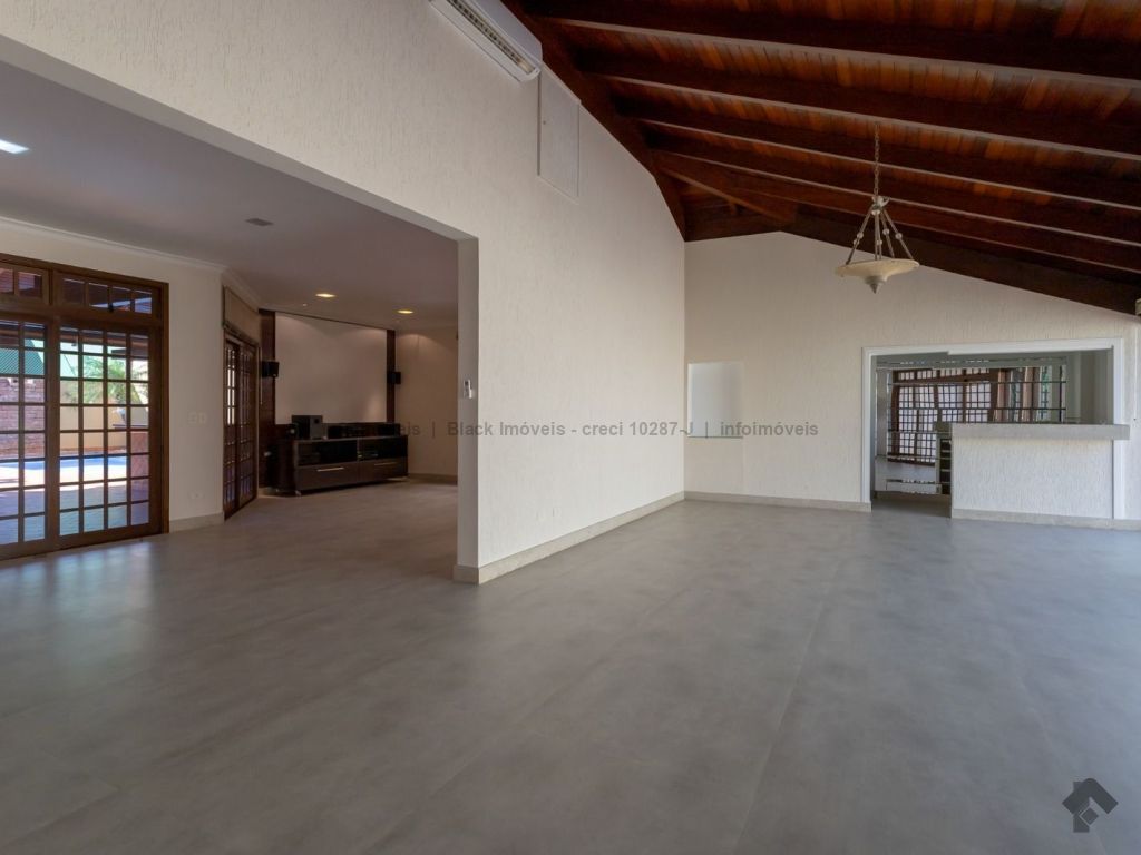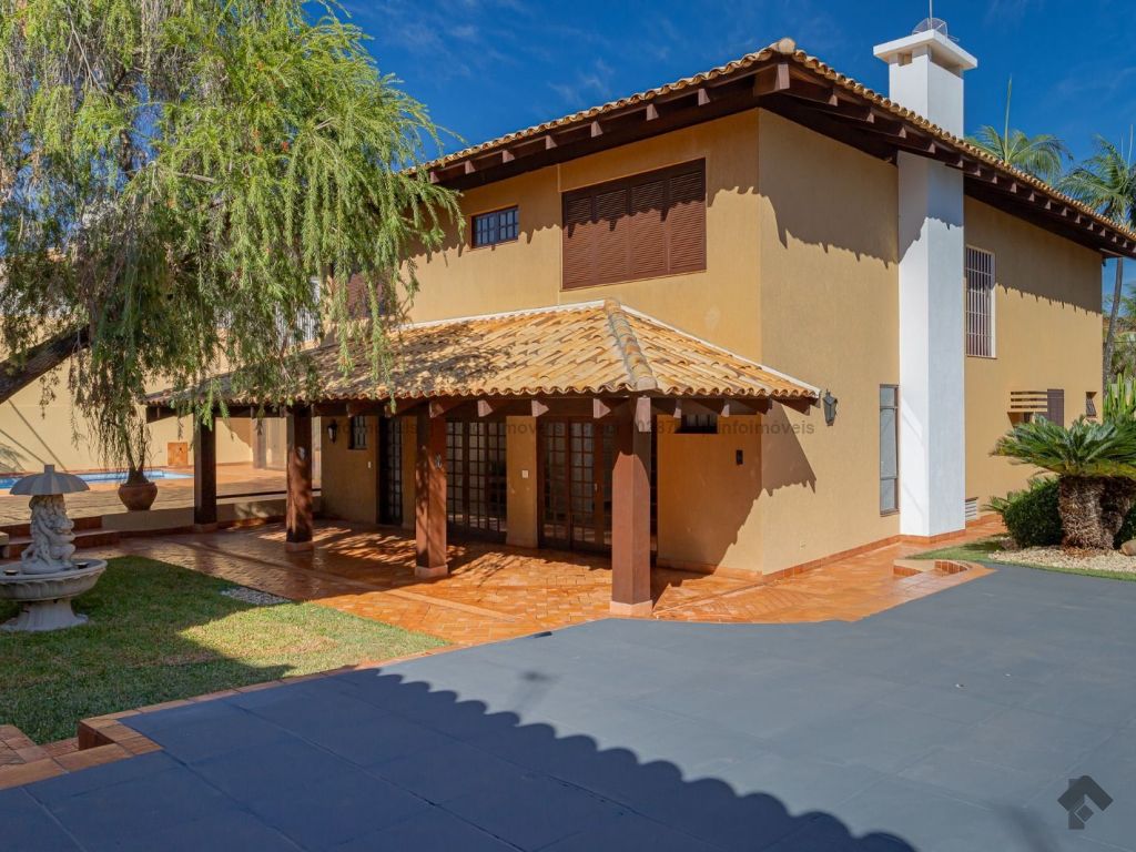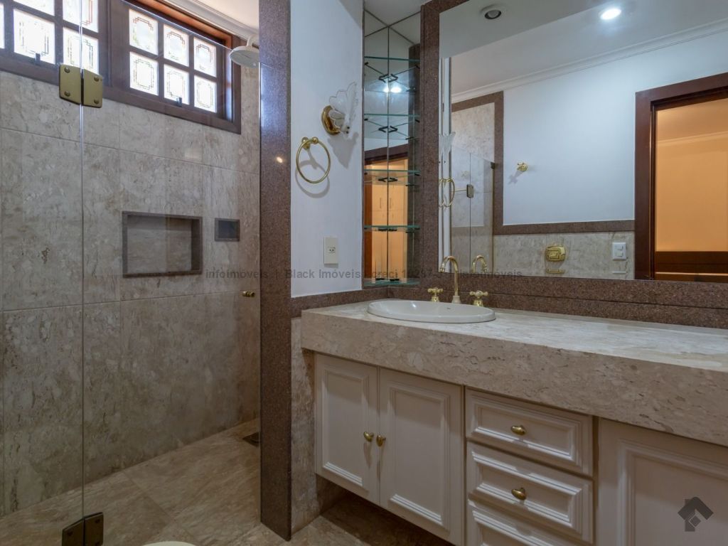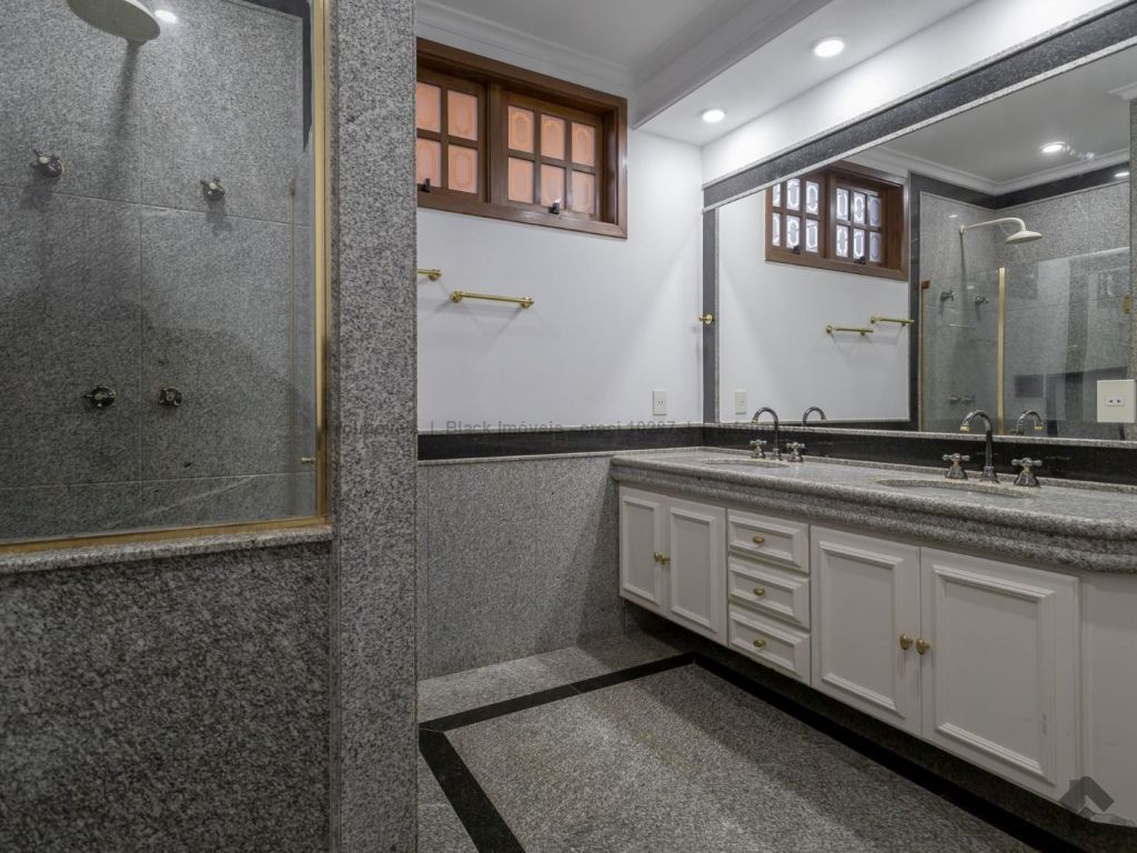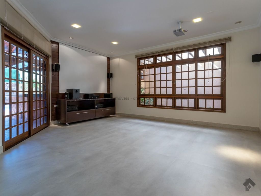 4 suítes sendo 1 no térreo. Suíte máster com amplo closet, hidromassagem e sala, 5 salas sendo 1 com lareira e 1 com bar, quadra de esportes, ampla área gourmet com piscina e cascata. Edícula contendo 1 suíte, escritório e cozinha. Ampla lavanderia. Garagem para 15 carros.