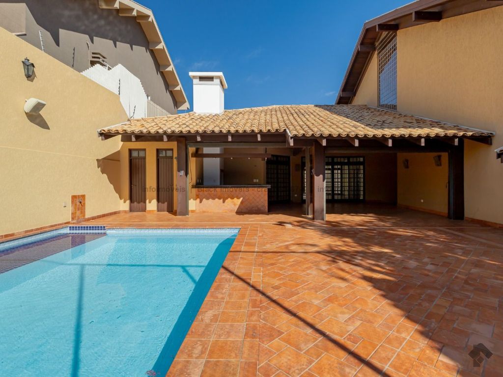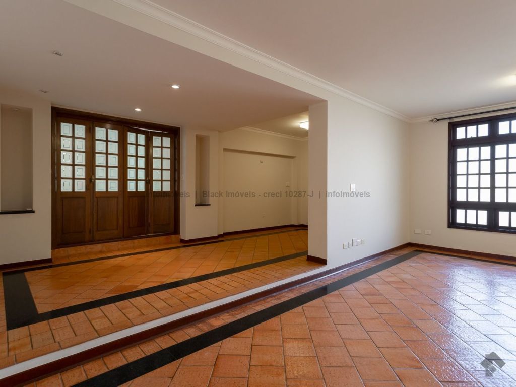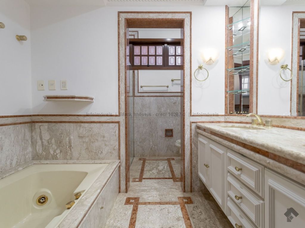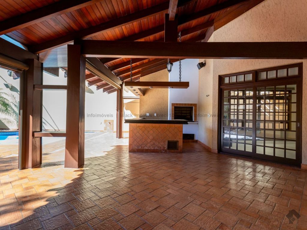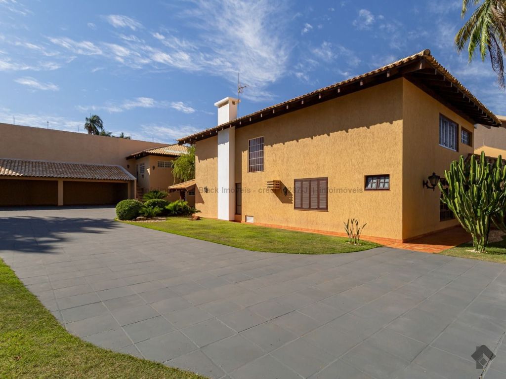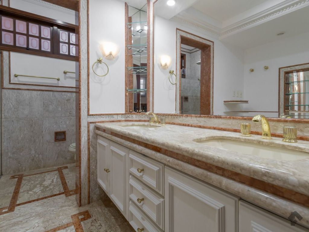 4 suítes sendo 1 no térreo. Suíte máster com amplo closet, hidromassagem e sala, 5 salas sendo 1 com lareira e 1 com bar, quadra de esportes, ampla área gourmet com piscina e cascata. Edícula contendo 1 suíte, escritório e cozinha. Ampla lavanderia. Garagem para 15 carros.