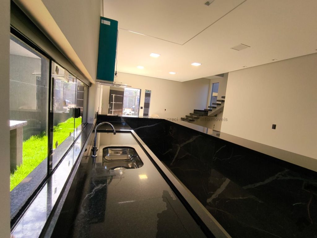 Imóvel novo pronto para morar. Piso interior todo no porcelanato acetinado, revestimento interno na cor branca, revestimento externo na textura grafiato, escada para o piso superior feita em pedra, garagem coberta e pergolado de ferro na entrada principal. Acabamentos: pias de banheiros, área gourmet e cozinha tipo americana e bancadas da área gourmet e da cozinha todas no granito preto São Gabriel. Churrasqueira, torneiras e acabamentos dos banheiros com materiais de primeira linha, coifa, cerca concertina, sistema de aquecimento solar e portão eletrônico.