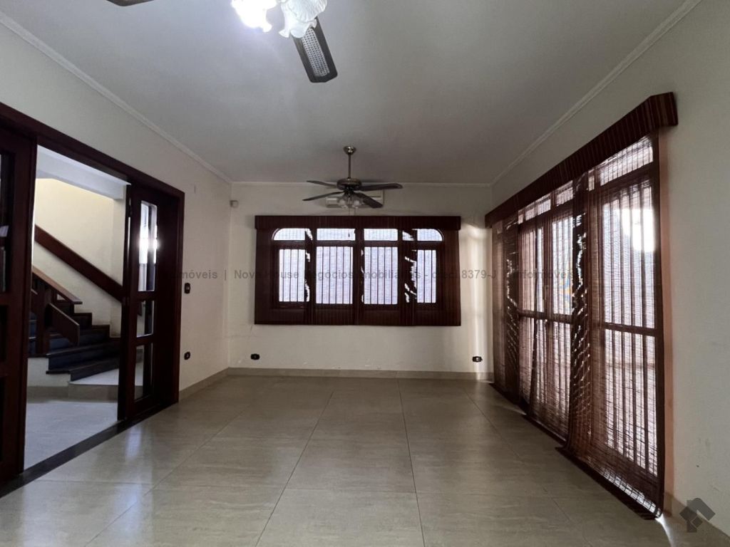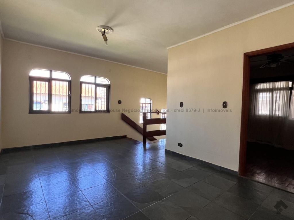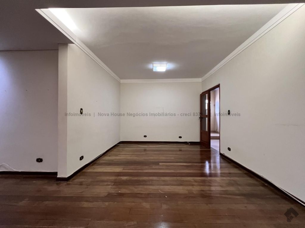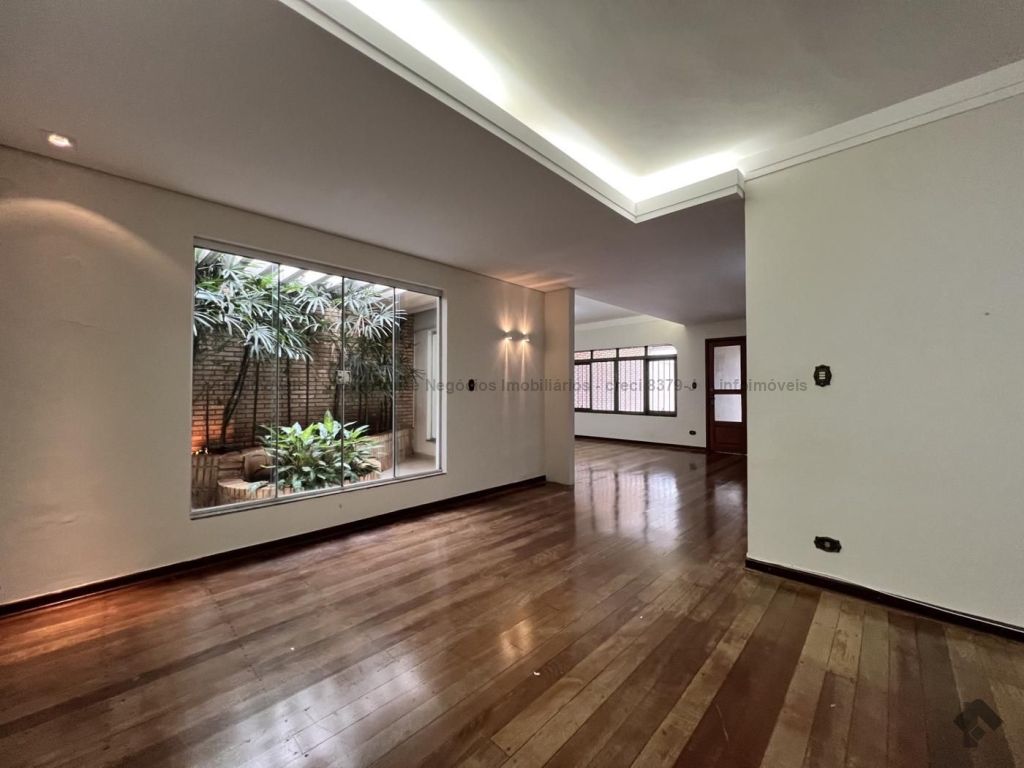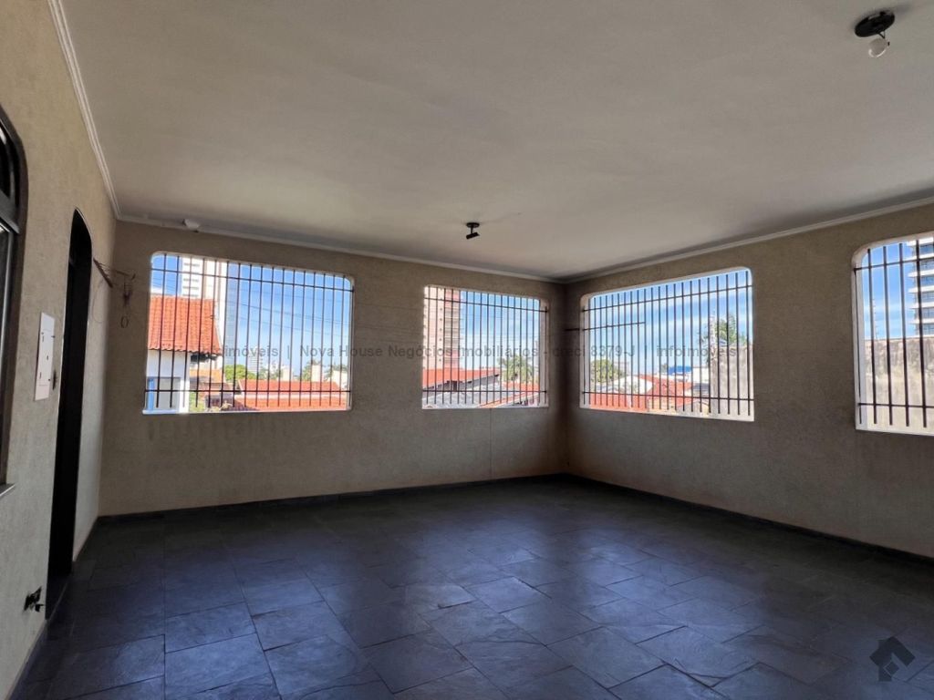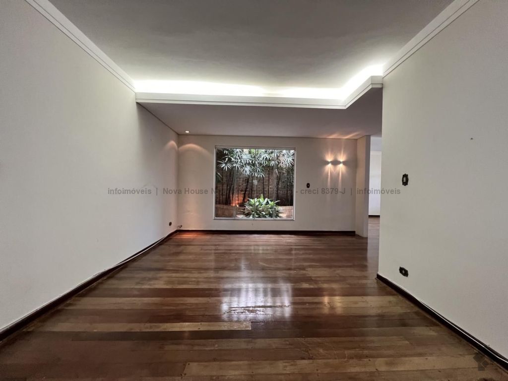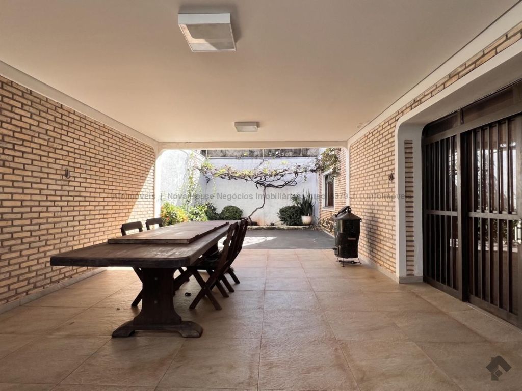 Piso térreo: sala para três ambientes, sala íntima, cozinha, área de serviço, banheiro de serviço, despensa, varanda. Piso superior: três suítes, um quarto, sala íntima, depósito, varanda.