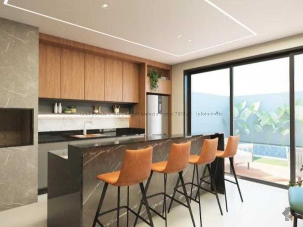Imóvel em construção, com 210m² de área total de 170m² de área construída. Parte de baixo: ampla sala para para dois ambientes (sala de estar/jantar), espaço gourmet com churrasqueira, pia e balcão, 1 quarto/escritório 1 banheiro social. Parte de cima: 1 suíte com sacada e vista para a Lagoa Itatiaia, 2 demi-suites. Complementares: piscina, 2 vagas na garagem cobertas, porta social e portão de elevação.