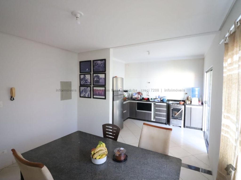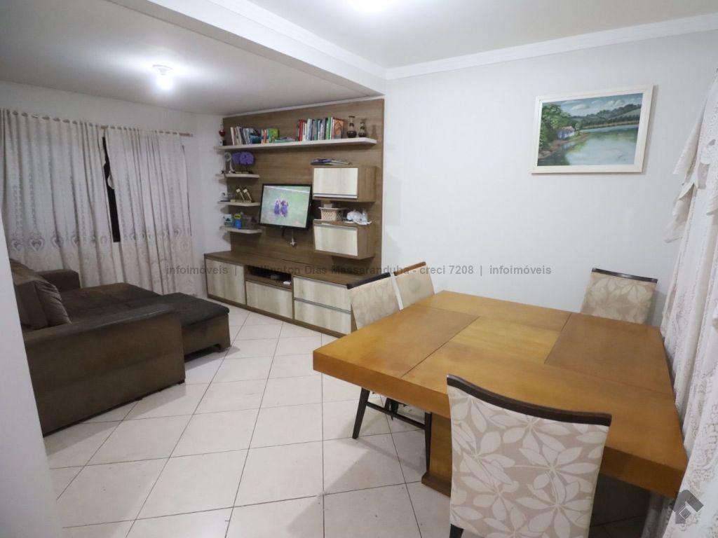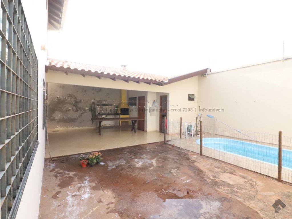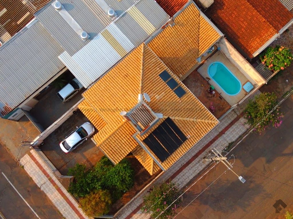 Sobrado possui três quartos, sendo uma suíte com ar-condicionado. Tem piscina aquecida. Chuveiro também com sistema de energia solar.