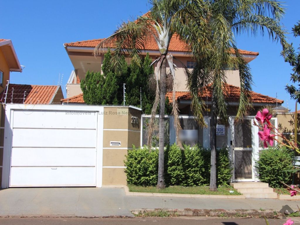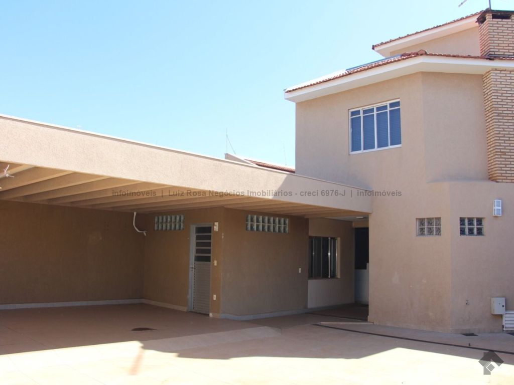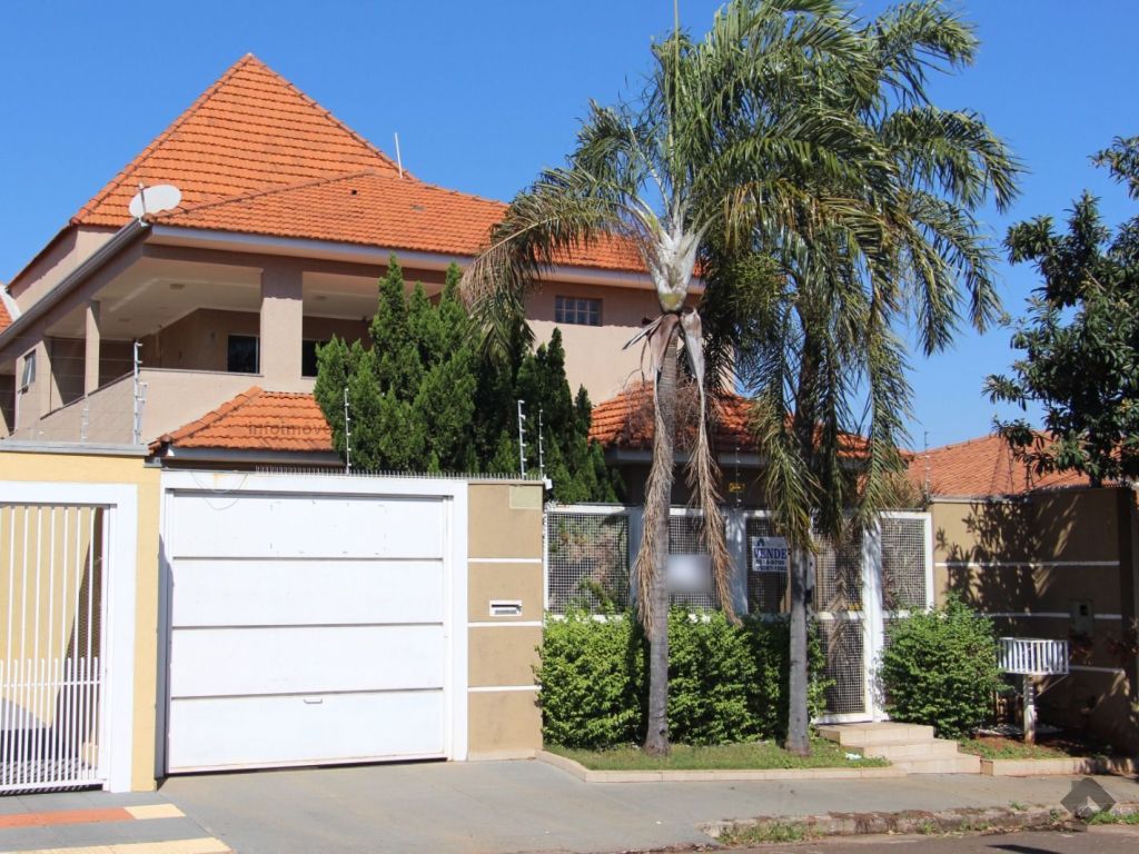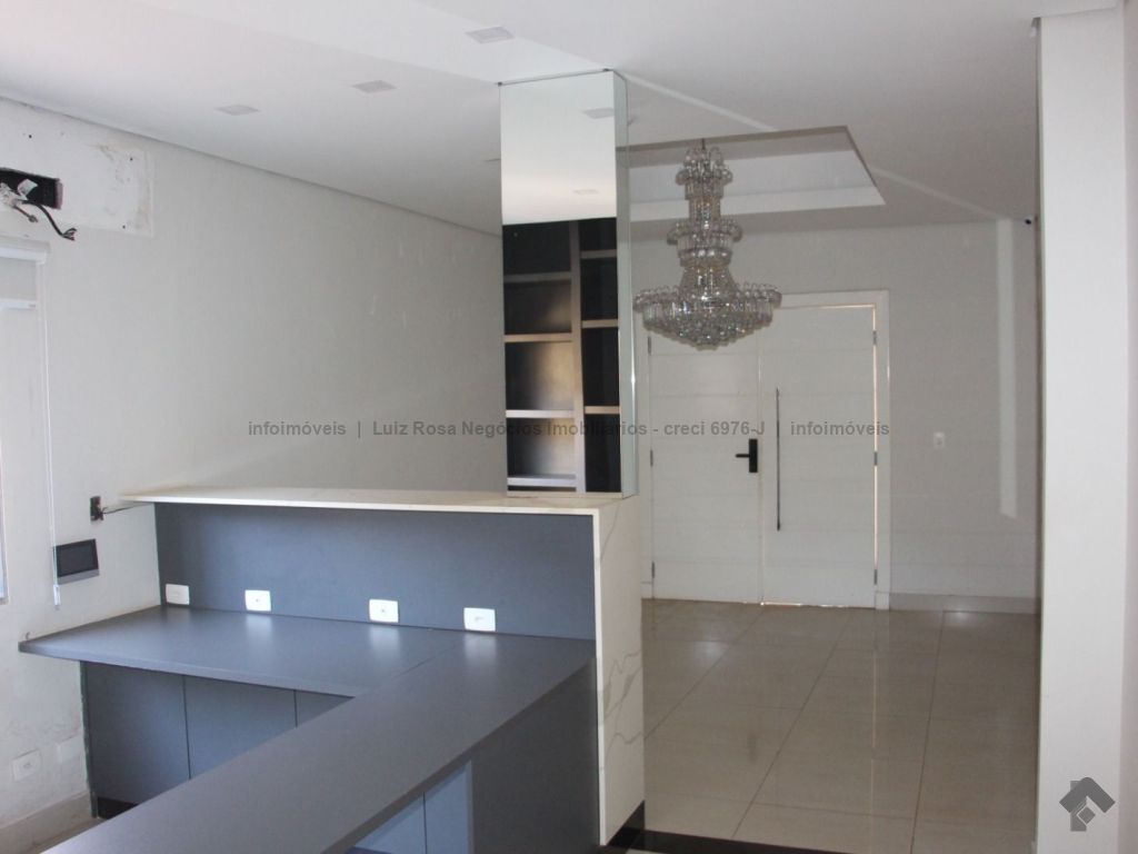 Sobrado com características residencial e comercial, 4 suítes amplas, sala de reunião com mobília, cozinha planejada, 6 banheiros, garagem para 4 carros, piscina e churrasqueira.