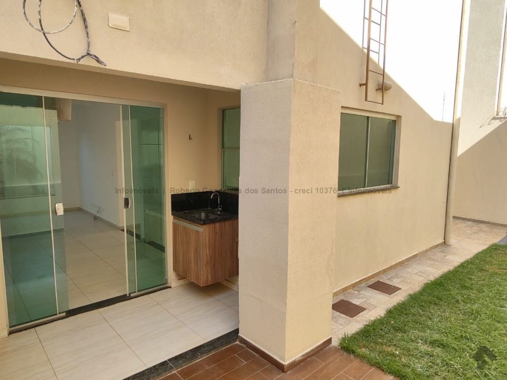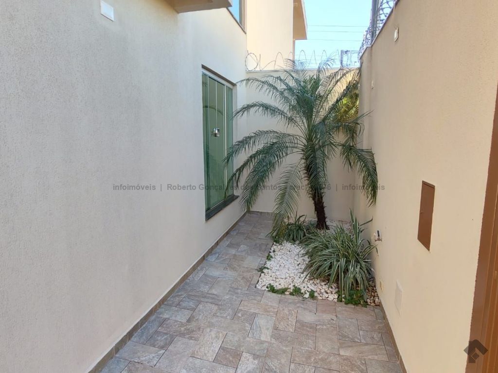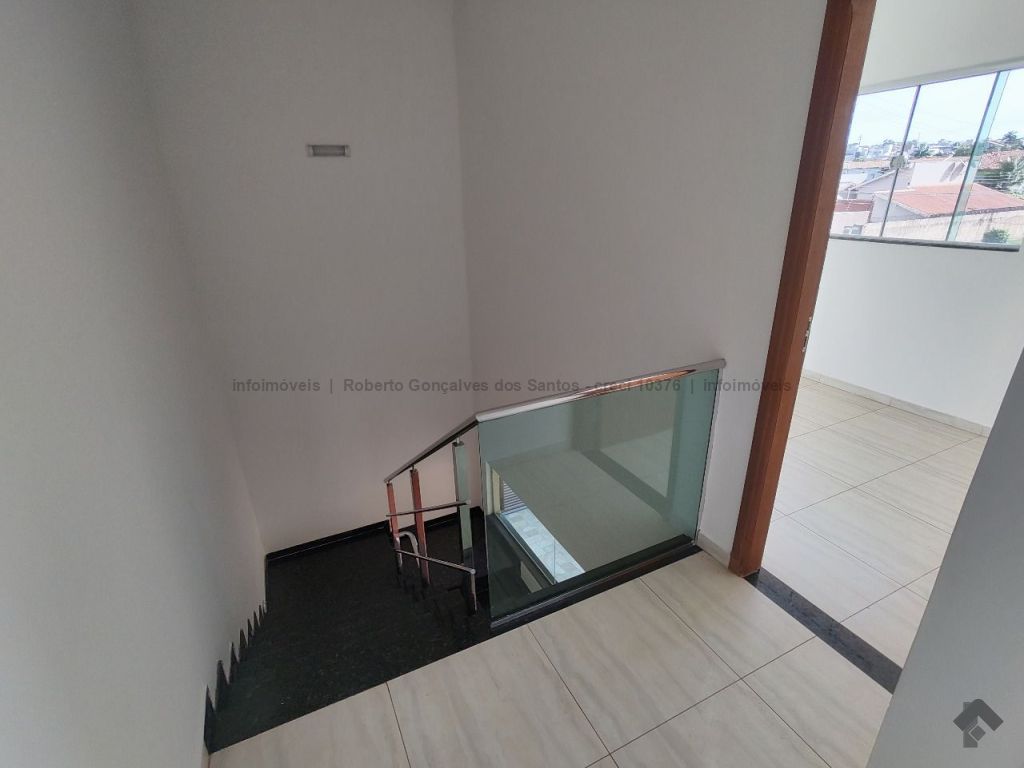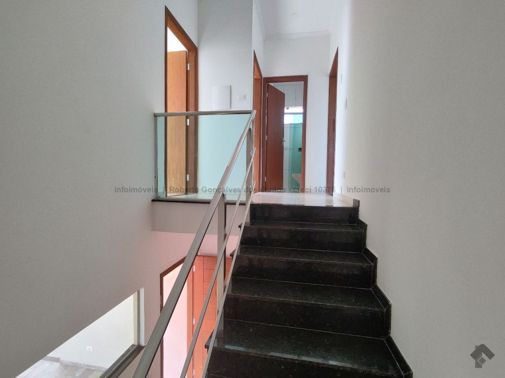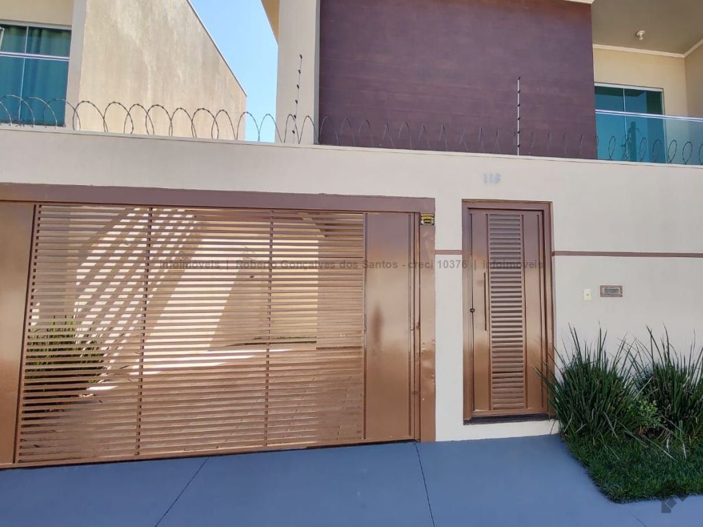 Possui três quartos, sendo que um deles é suíte (quarto + banheiro) e com sacada. A suíte já possui armário e o segundo quarto também já tem armário. Um banheiro social no piso superior. No térreo, uma sala de estar interligada com sala de jantar. Um lavabo embaixo da escada. Uma cozinha com bancada grande em granito e armários, uma área externa com churrasqueira e pia com bancada. Uma área de serviço com um lavabo. Espaço de quintal para até 3 carros, portão de elevação já com motor, cerca elétrica e concertina.