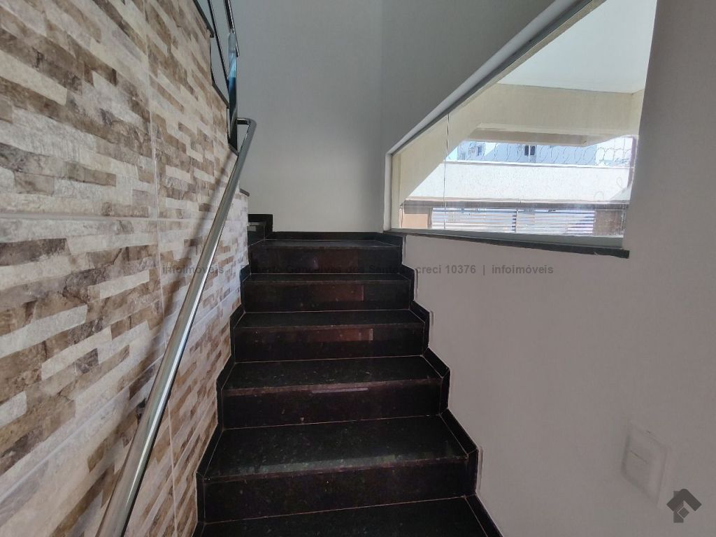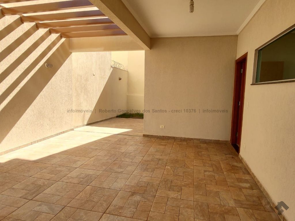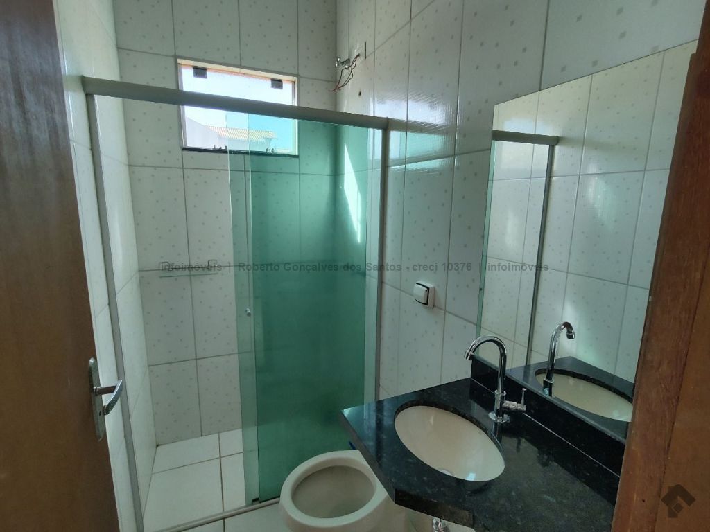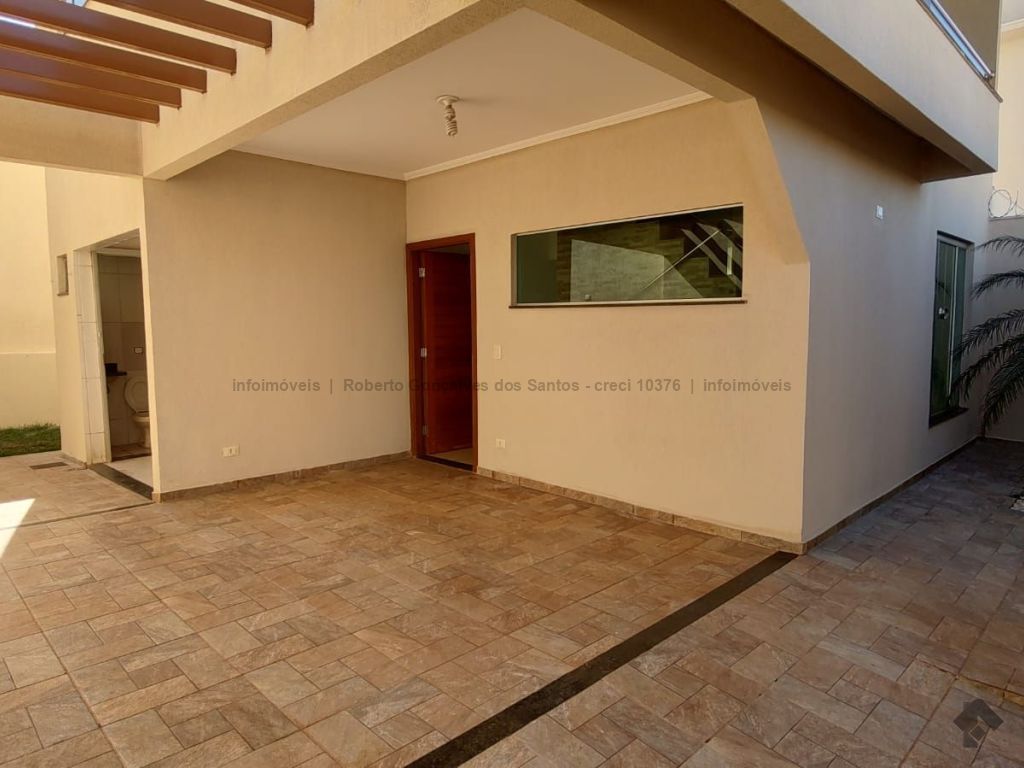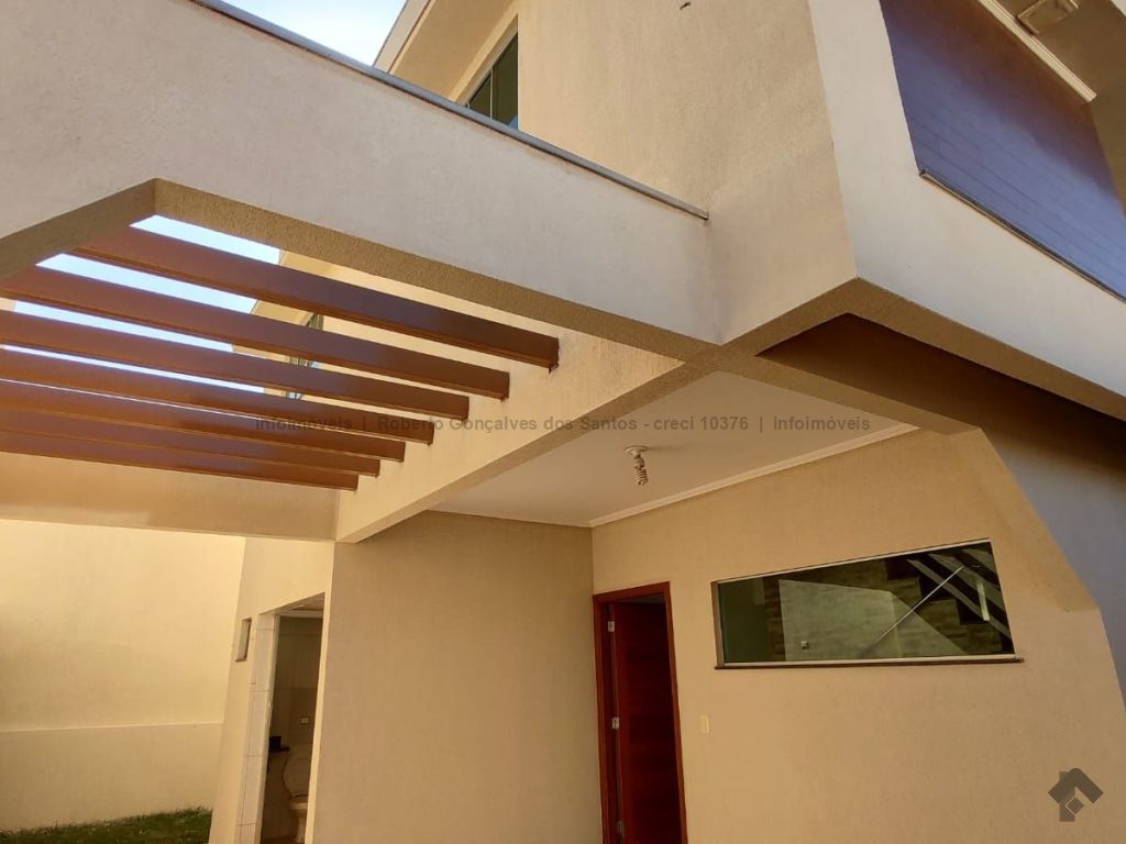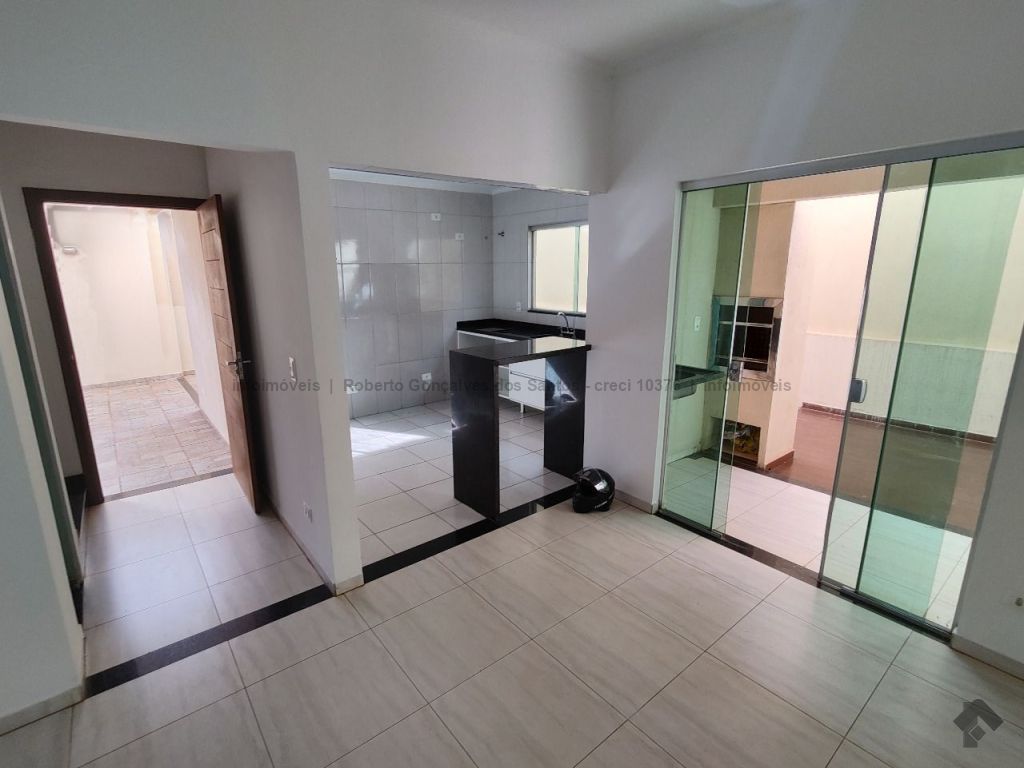 Possui três quartos, sendo que um deles é suíte (quarto + banheiro) e com sacada. A suíte já possui armário e o segundo quarto também já tem armário. Um banheiro social no piso superior. No térreo, uma sala de estar interligada com sala de jantar. Um lavabo embaixo da escada. Uma cozinha com bancada grande em granito e armários, uma área externa com churrasqueira e pia com bancada. Uma área de serviço com um lavabo. Espaço de quintal para até 3 carros, portão de elevação já com motor, cerca elétrica e concertina.