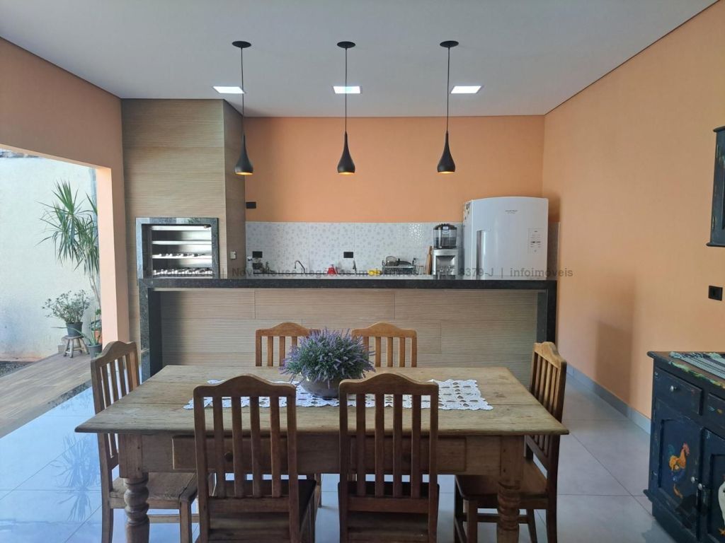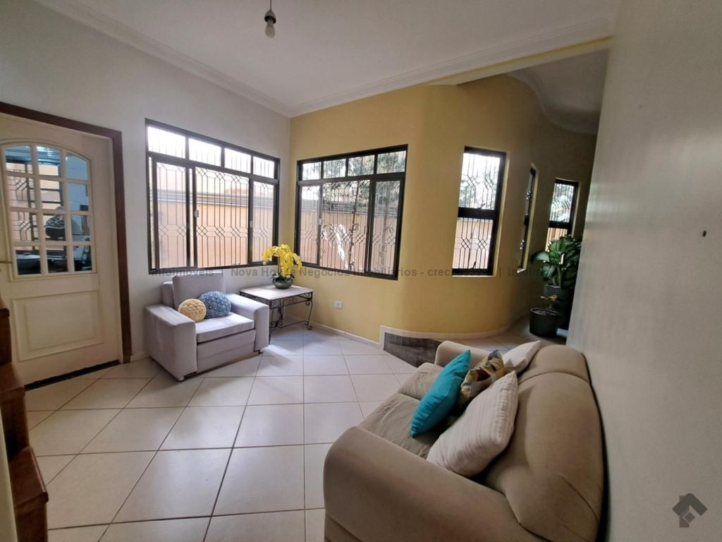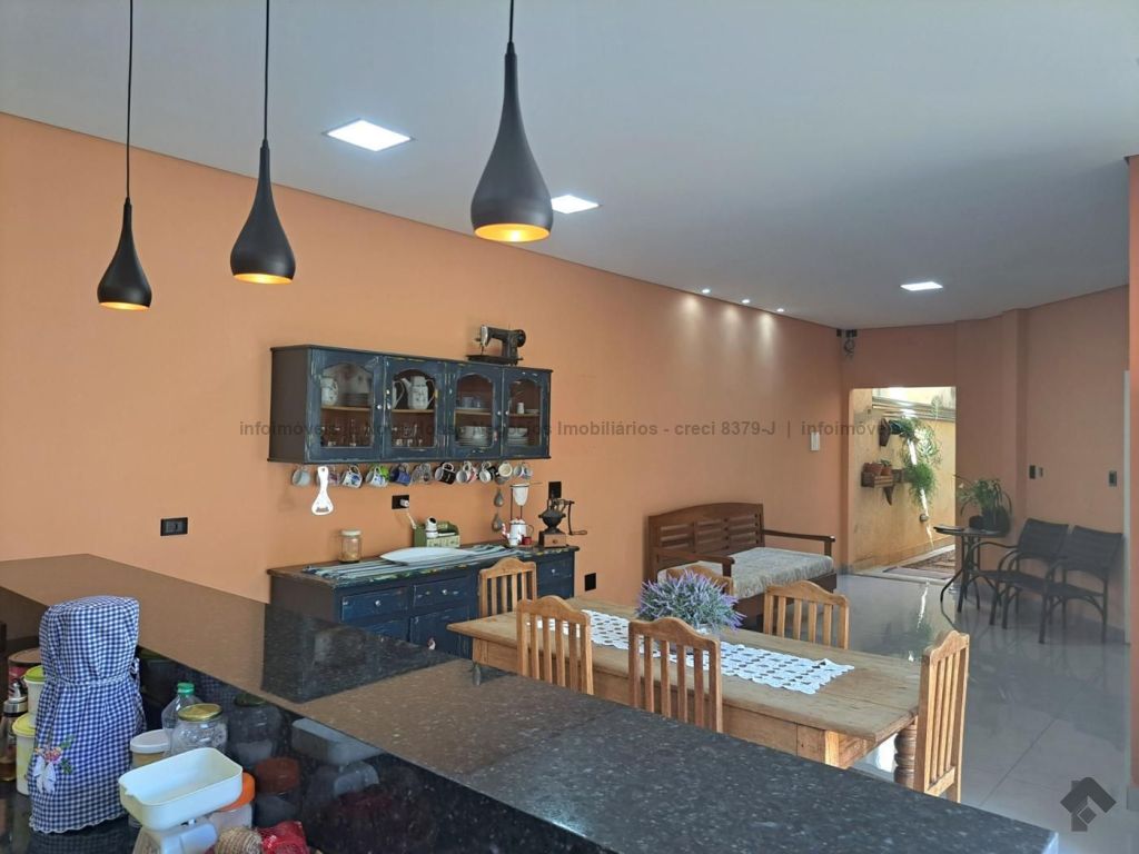 Piso superior: sala de TV, escritório e sacada. Piso Inferior: 1 suíte com armários planejados, com amplo banheiro e uma porta para o jardim, 02 quartos, cozinha fechada com armários, lavanderia com depósito e um lavabo, sala de Tv e sala de estar. Conta com um porão, em fase de acabamento, ideal para ser transformado em uma adega, uma excelente área gourmet com churrasqueira, com com acesso lateral, possui energia solar, 04 vagas de garagem (sendo 2 cobertas). Características: boa sobra de terreno nos fundos. Piso da cozinha, banheiro e garagem em porcelanato.